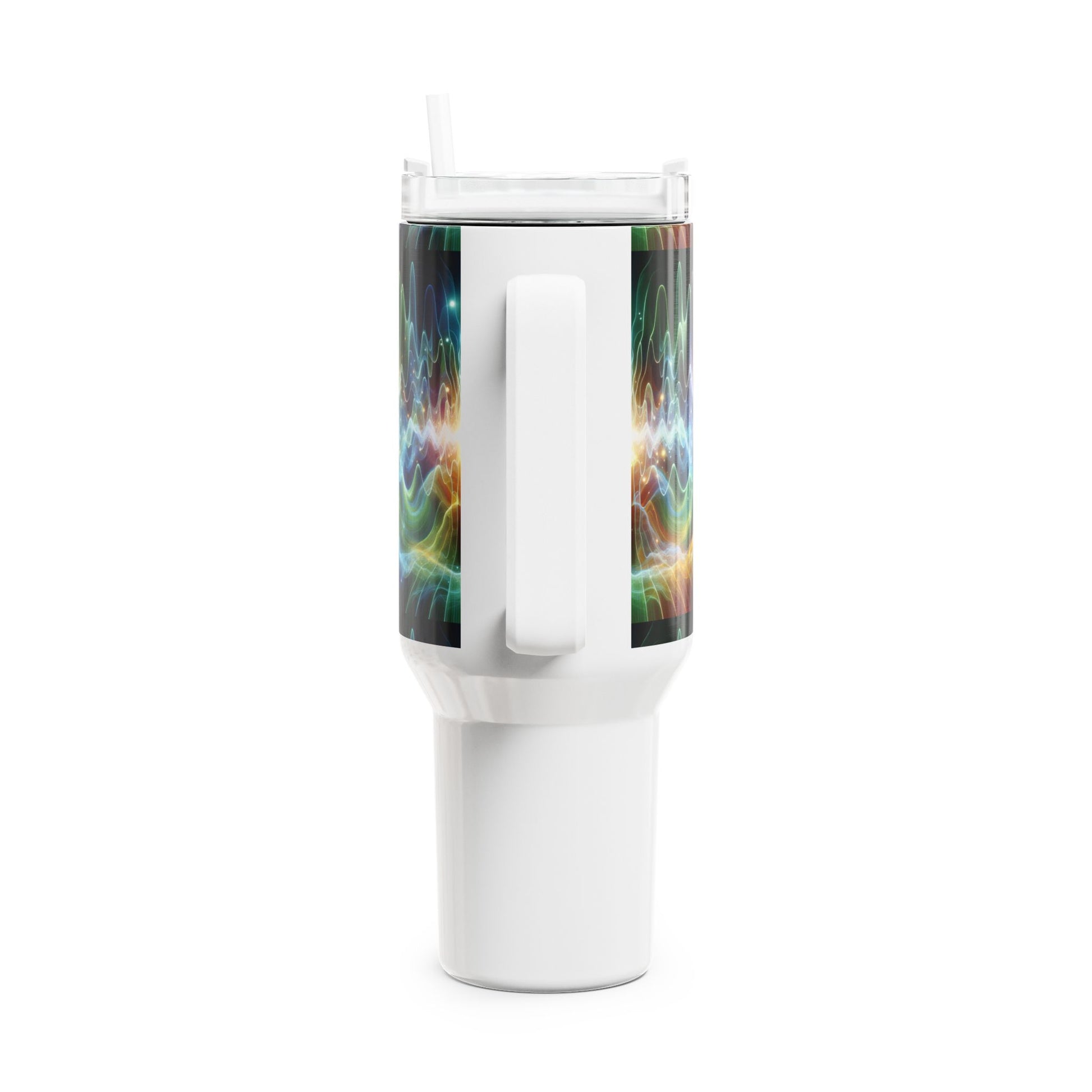 This tumbler features a design of healing frequency waves, giving off a calming and peaceful vibe. It is perfect for those who enjoy positive energy and mindfulness practices. Ideal for daily use or as a thoughtful gift for loved ones on special occasions like birthdays and holidays.