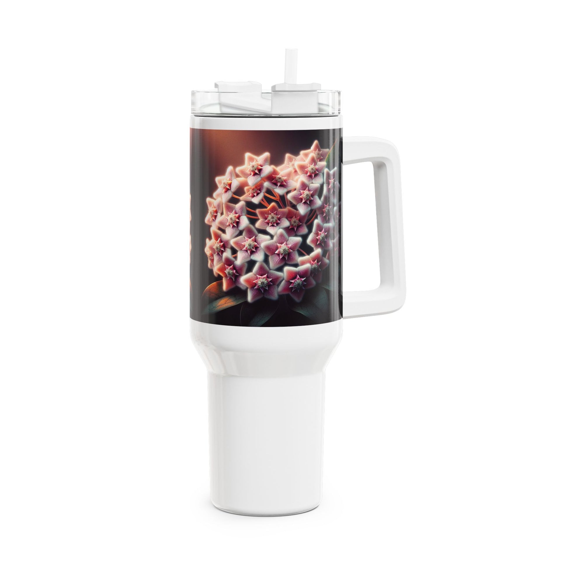This 40oz tumbler featuring vibrant hoya blooms is perfect for keeping your drinks hot or cold for hours. Ideal for those who love floral designs and need a reliable tumbler for daily use. Great for gifting on birthdays, Mother's Day, or as a thank you gift.