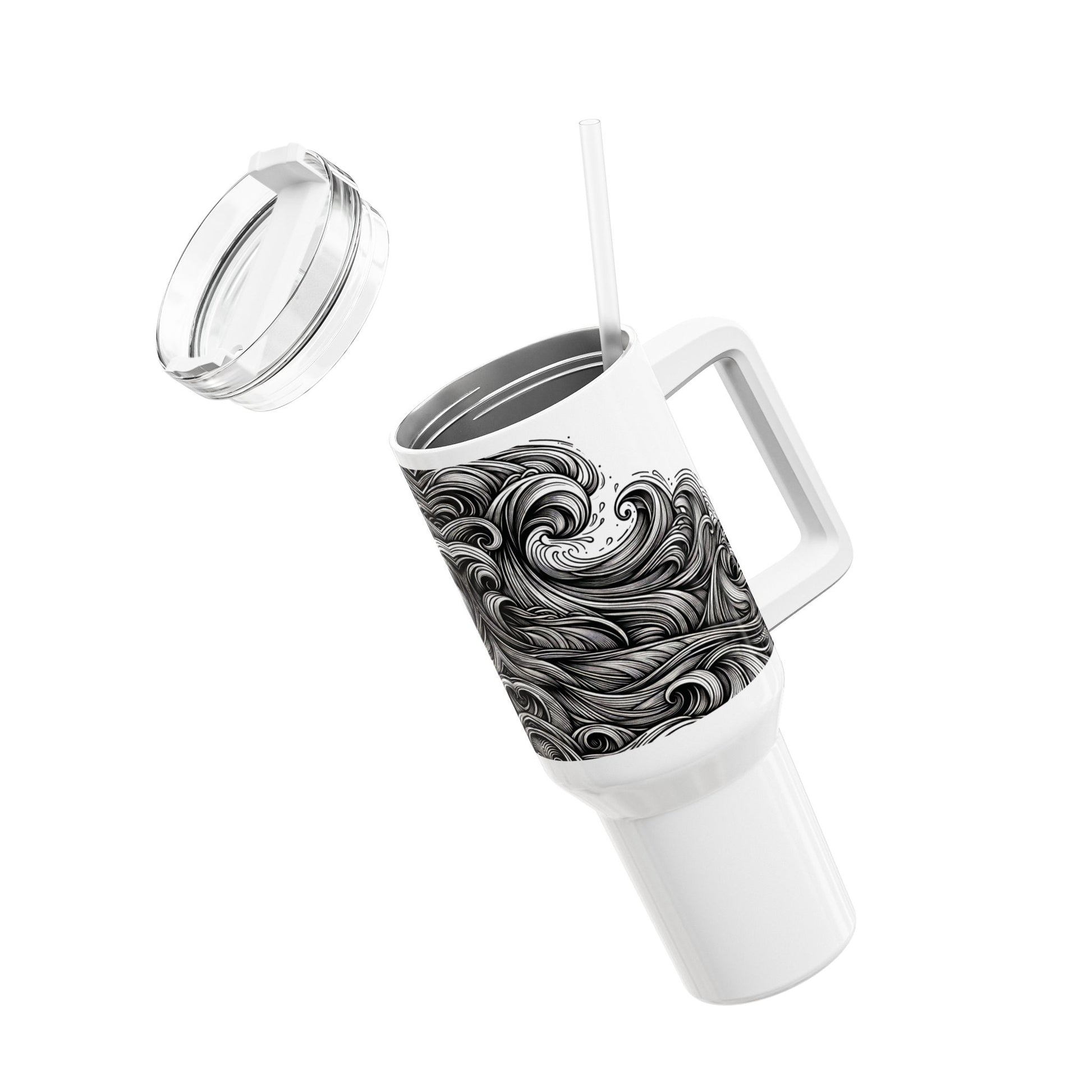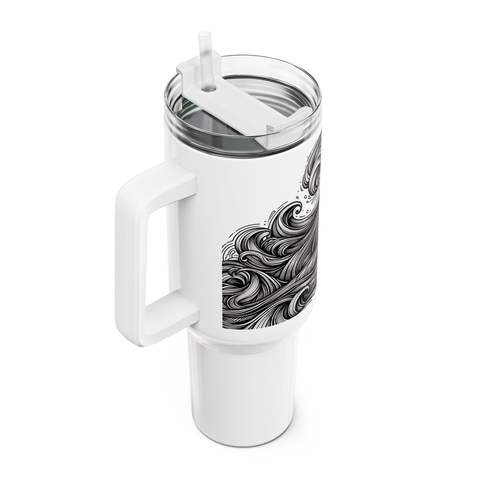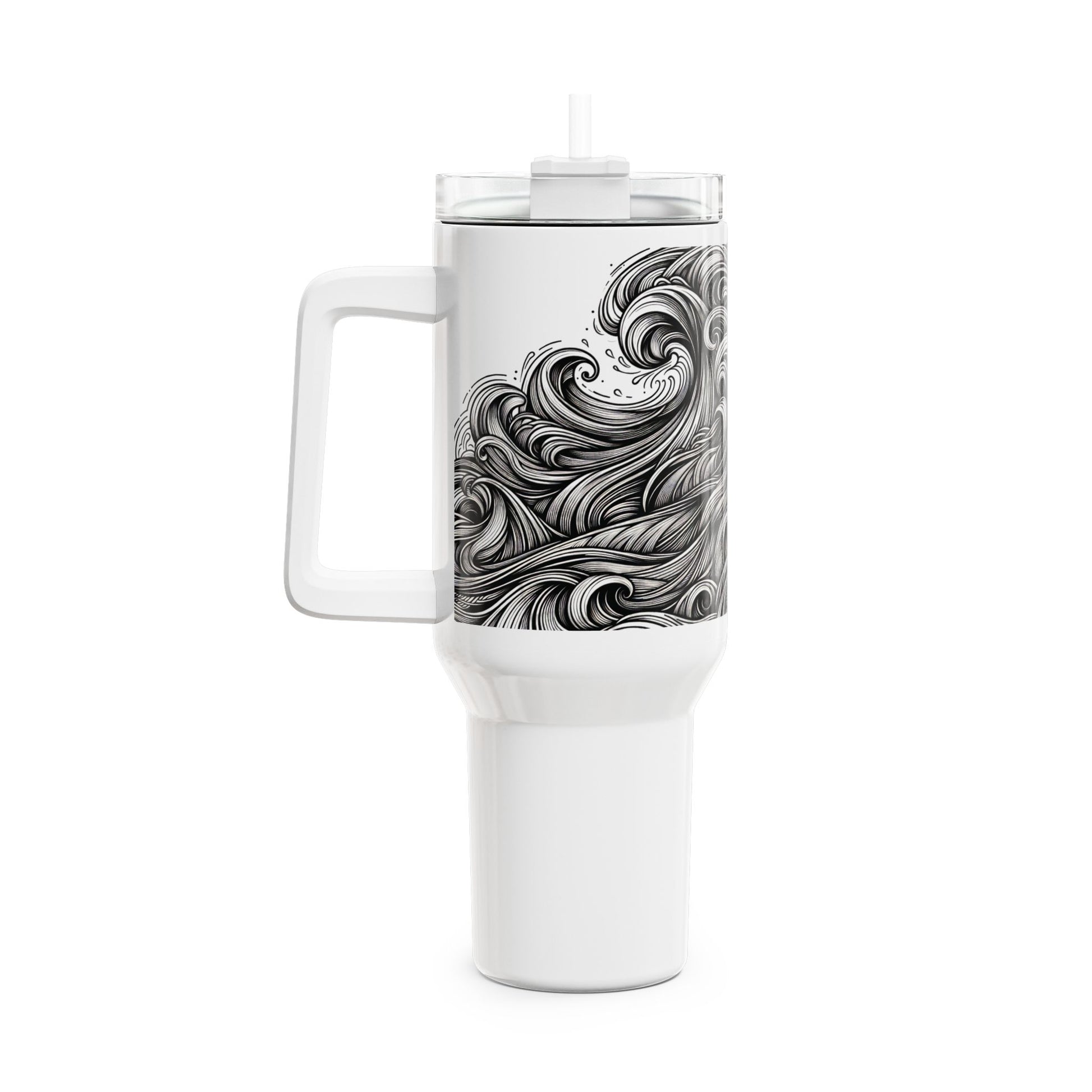 A sleek and modern tumbler featuring a monochrome energy wave design, perfect for those who enjoy a stylish and vibrant aesthetic in their everyday life. Ideal for on-the-go individuals looking to keep their drinks at the perfect temperature, this tumbler is a great accessory for daily commutes, work, or outdoor activities. Suitable for anyone looking to add a touch of personality to their drinkware collection, this tumbler is a great gift for birthdays, holidays, or any special occasion.
