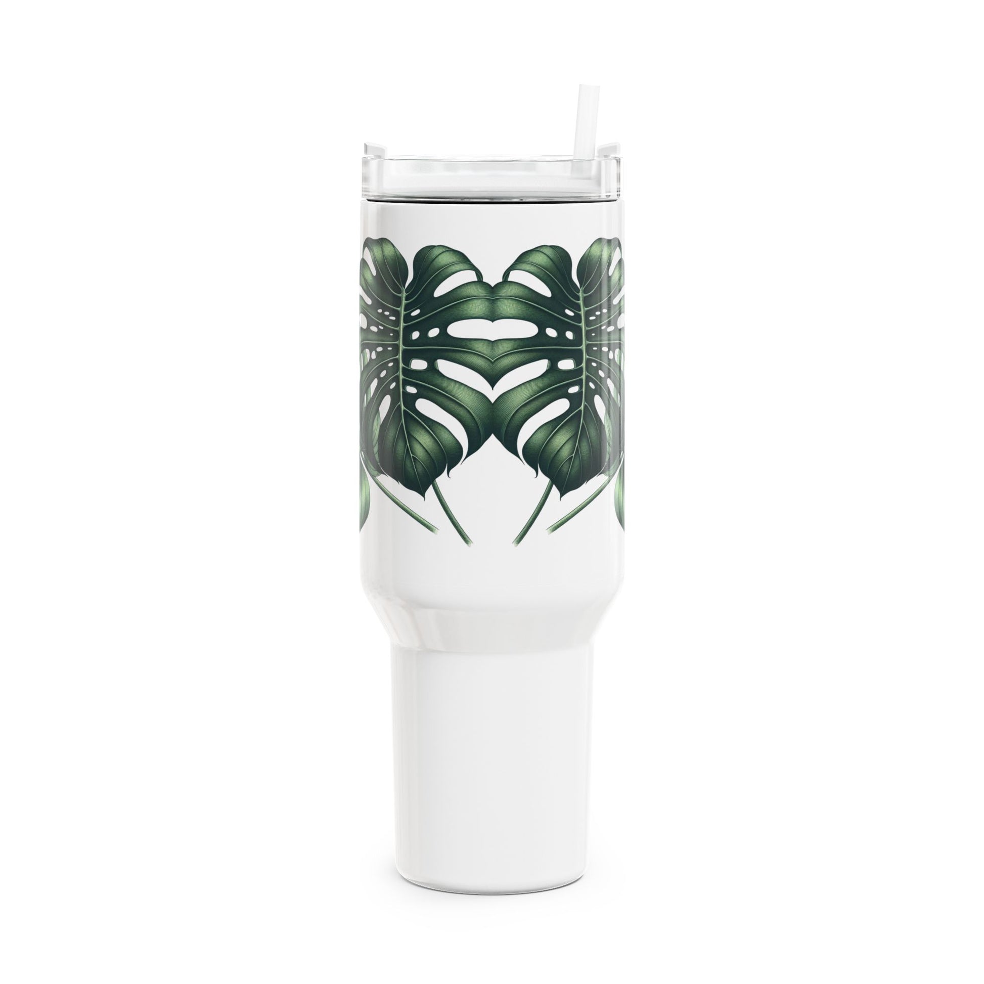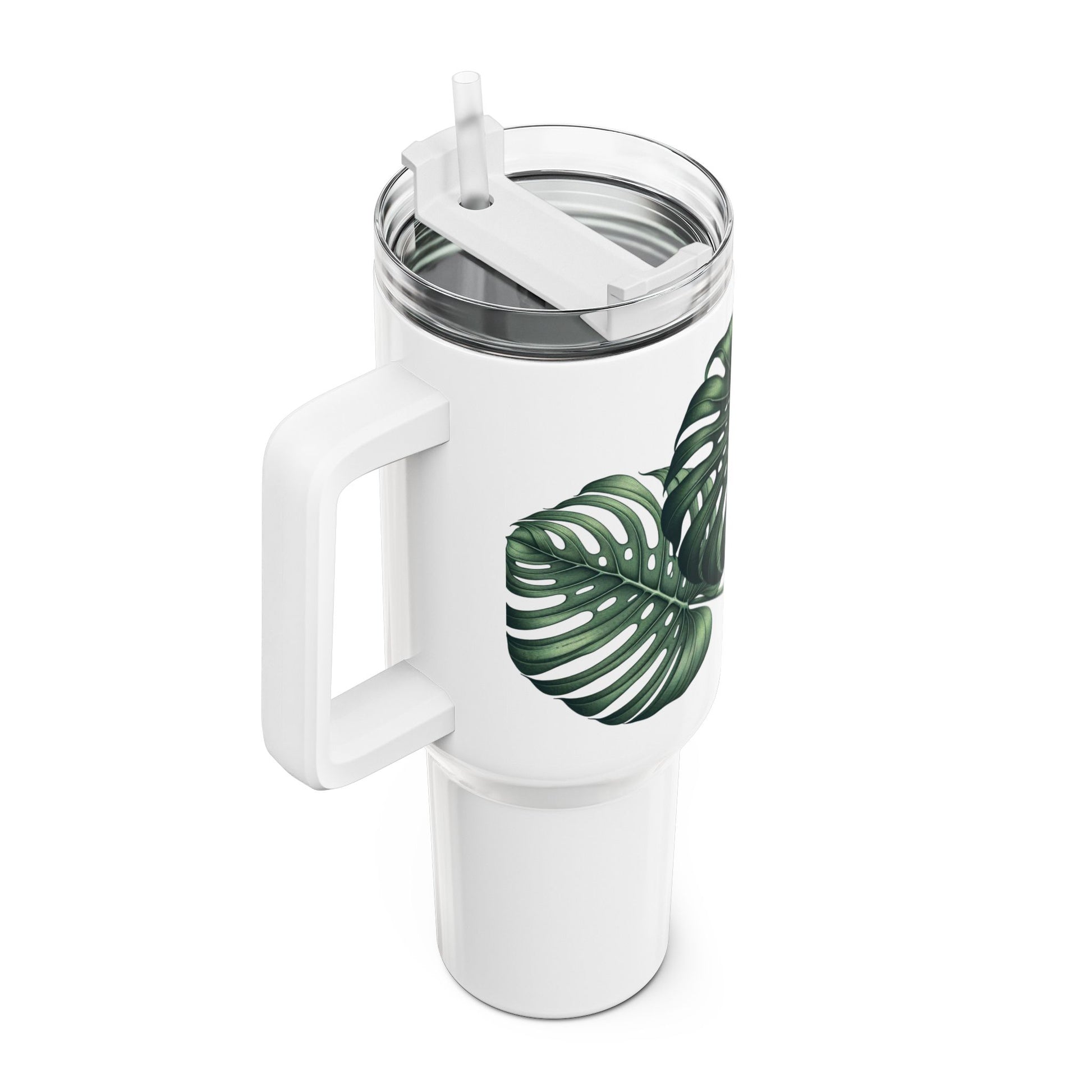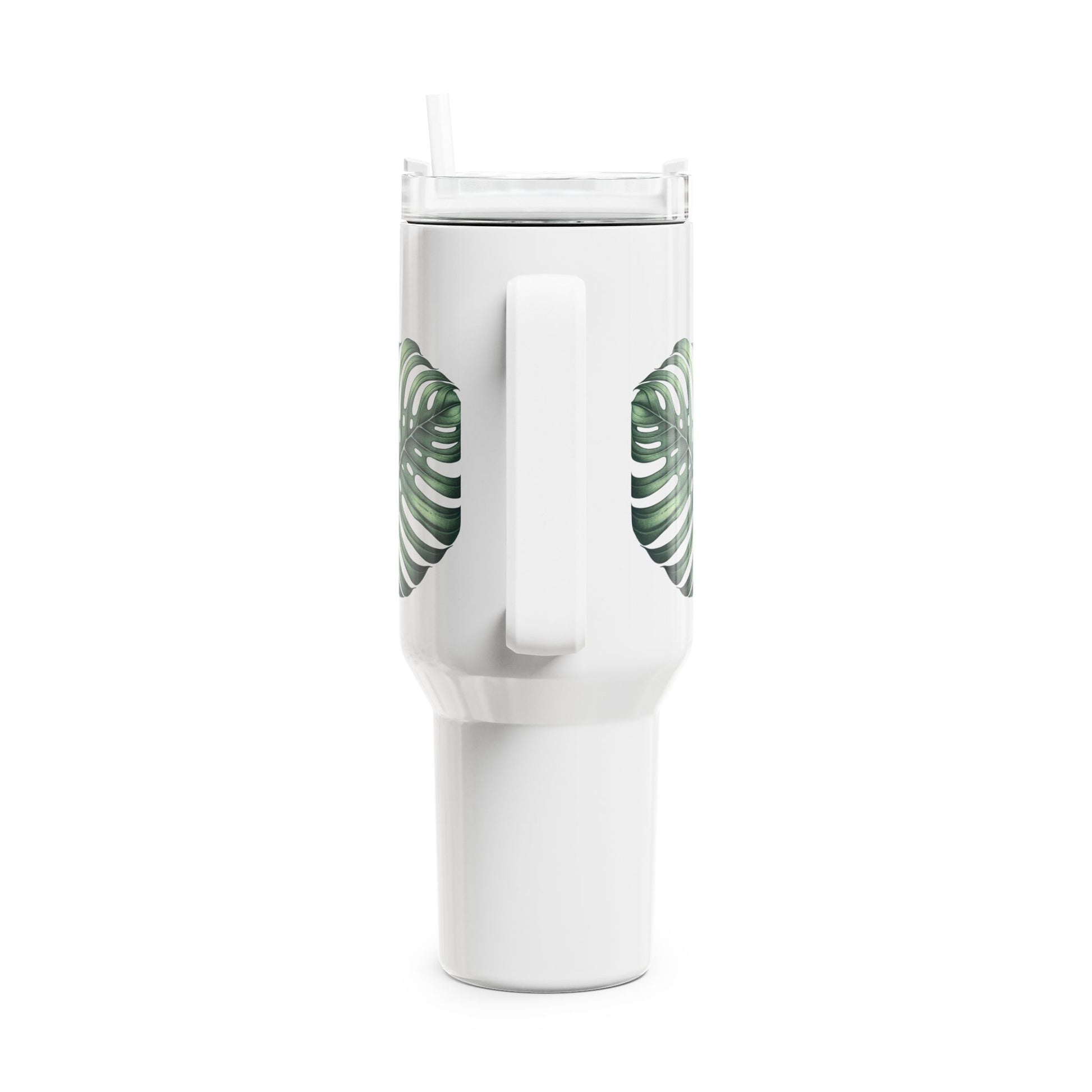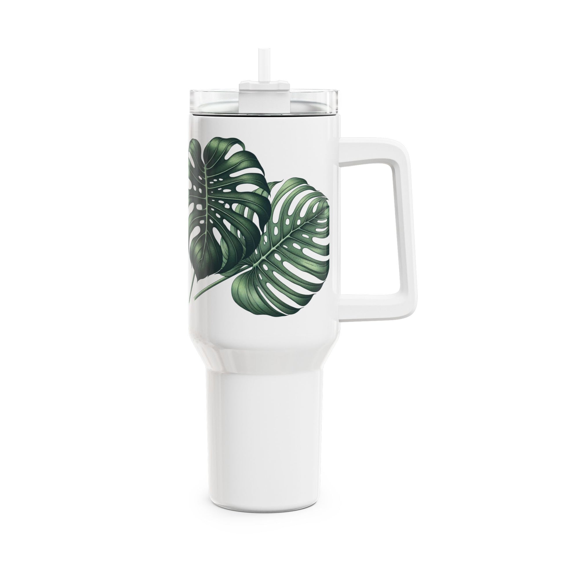 Stay hydrated in style with this 40oz tumbler featuring a trendy monstera leaf design. The vibrant colors and double-wall insulation make it perfect for keeping drinks hot or cold for hours. BPA-free and featuring an ORCA coating for a brighter color transfer, this tumbler comes with a clear push-down lid to avoid spills and leaks.