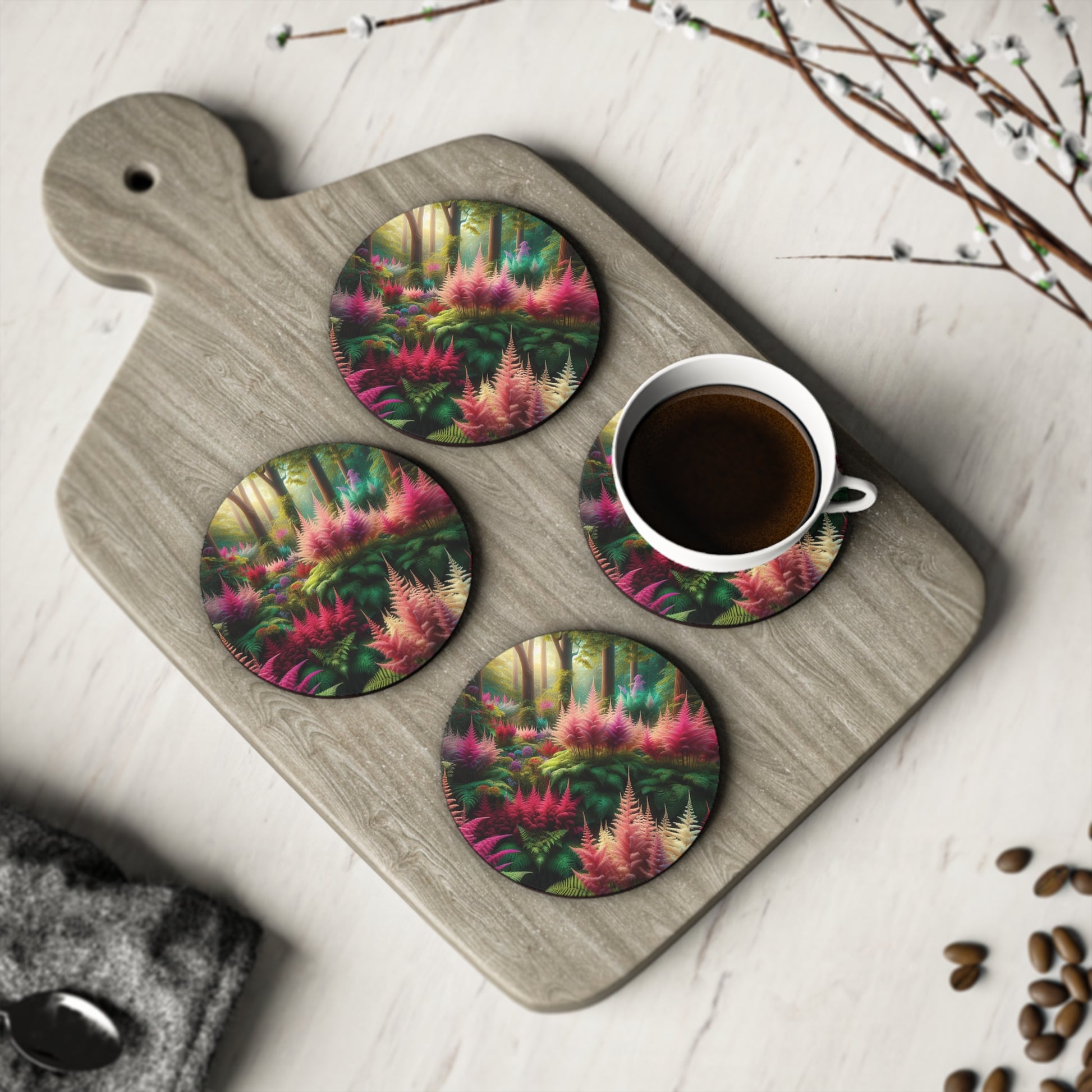 Astilbe Bloom Design Coasters, Floral Drink Coasters, Set of 4, Housewarming Gift, Home Decor
