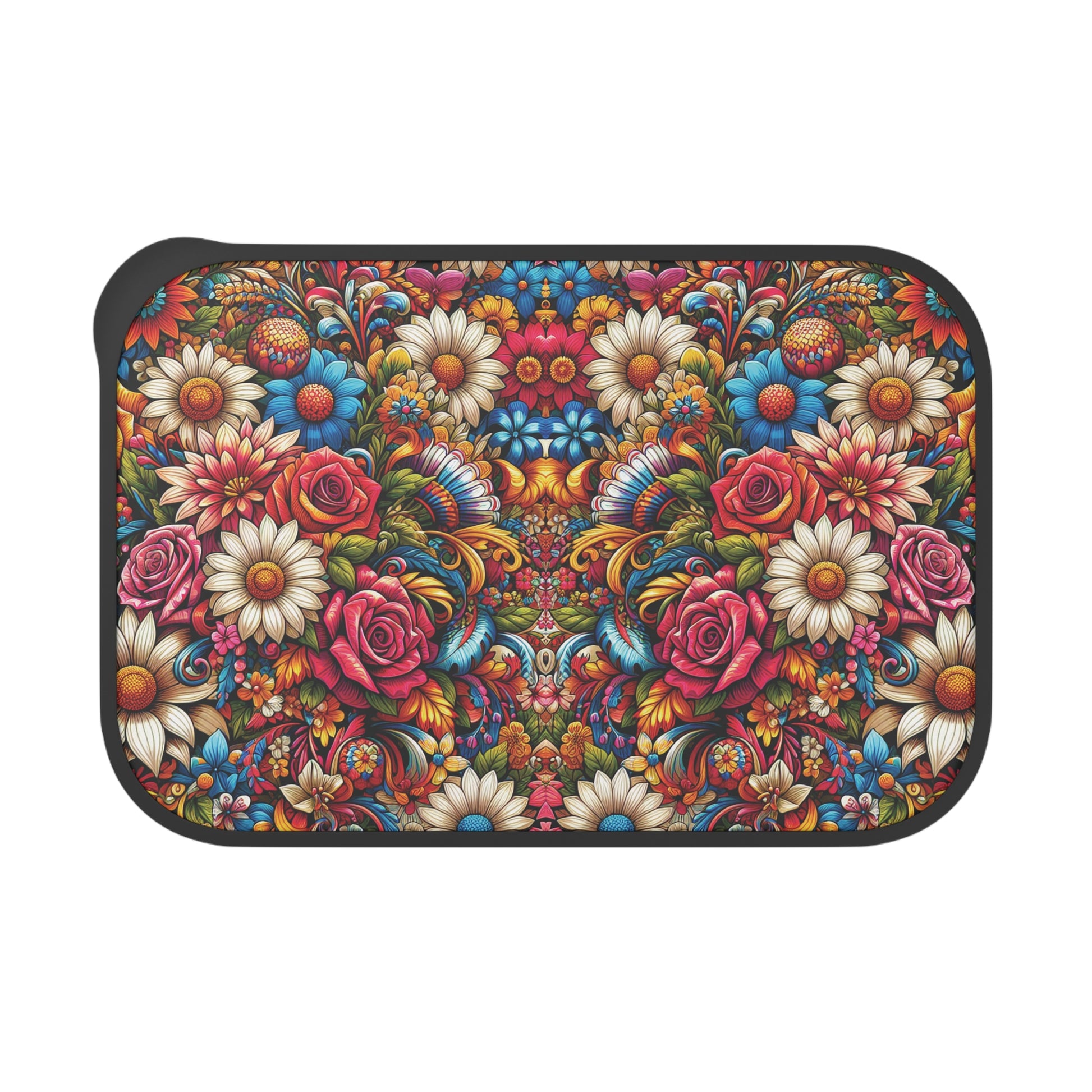 Bento Box - Colorful Flower Patterned Bento Box with Band and Utensils, Floral Design, Lunch Container, Food Storage Container, Eco-Friendly