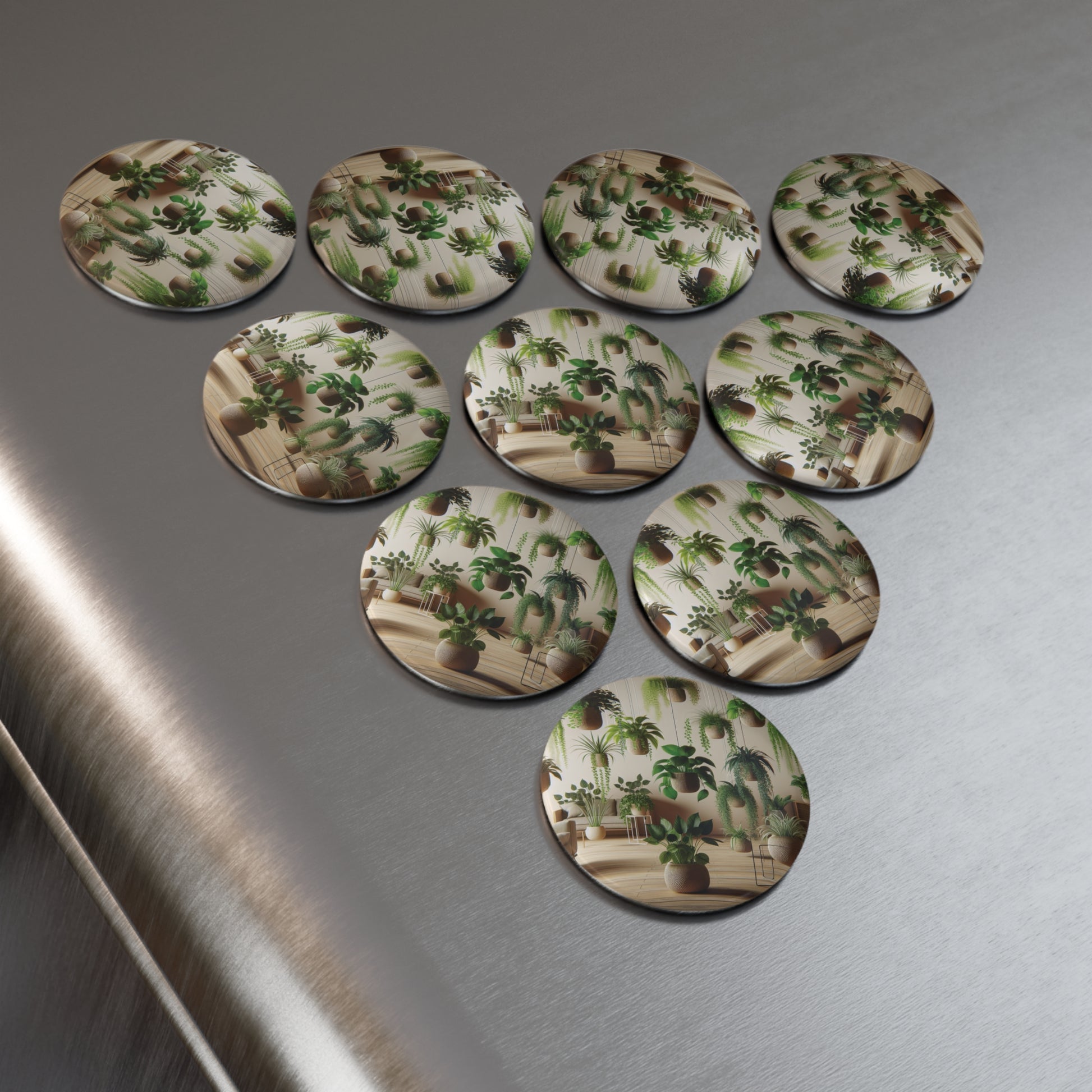 Botanical-Themed Round Button Magnet Set - Nature Home Decor (1 & 10 pcs)