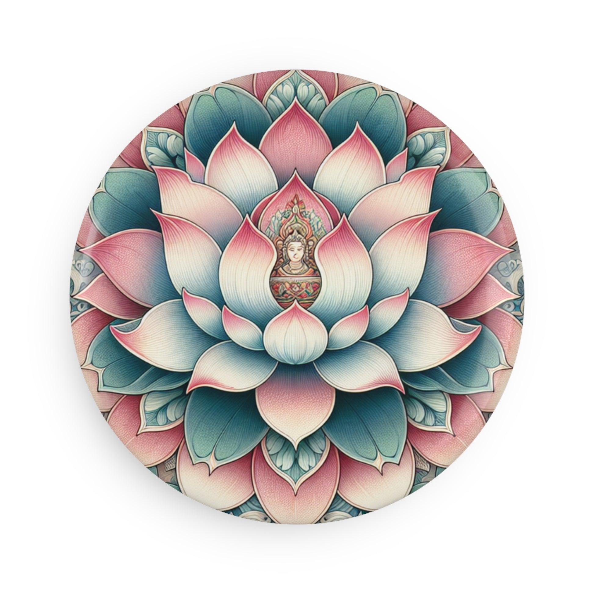 A round magnet featuring a vibrant lotus flower design. Perfect for adding a pop of color to your refrigerator or magnetic board. Ideal for nature lovers and those seeking a peaceful, zen atmosphere in their home decor. Great for gifting on occasions like Mother's Day, birthdays, or housewarmings.