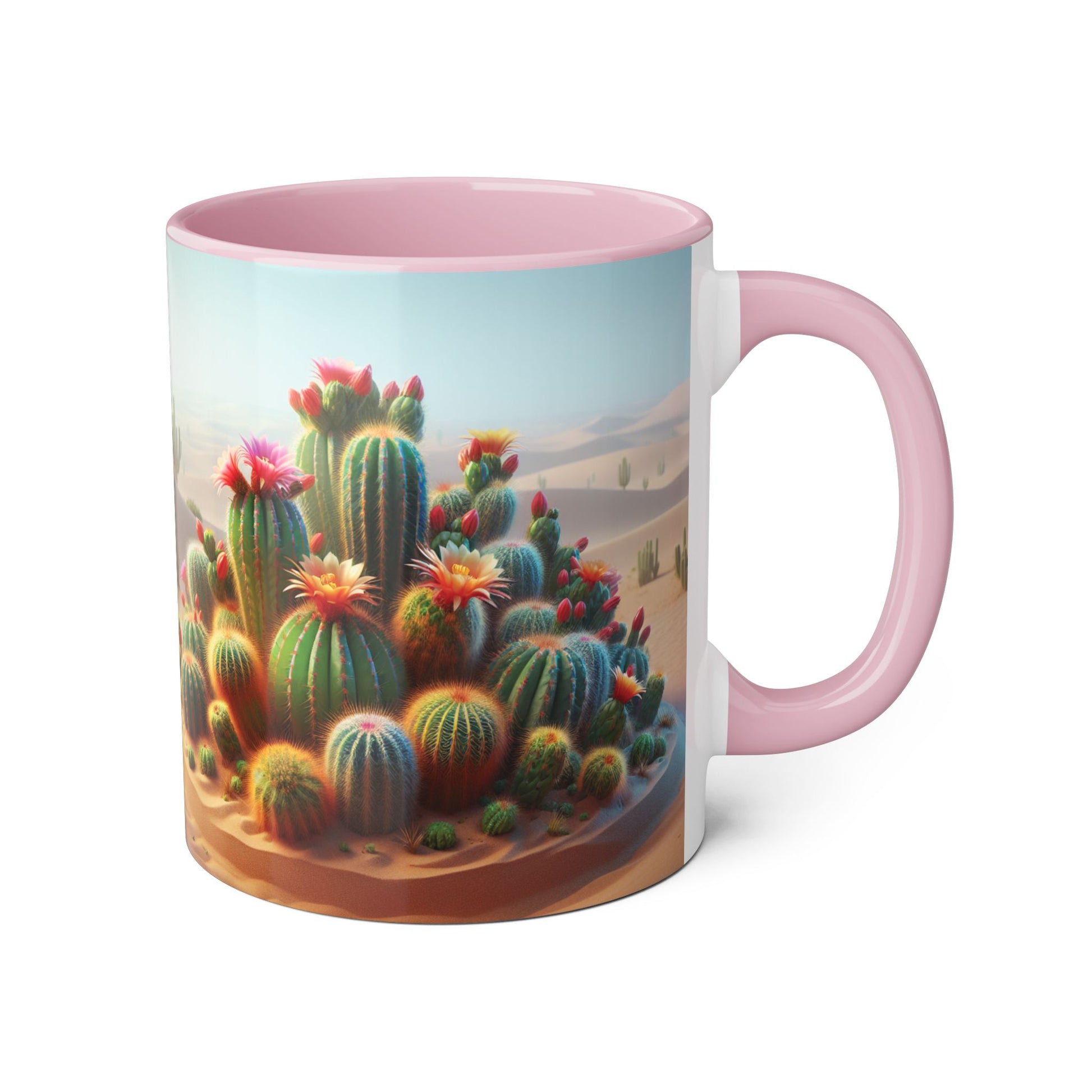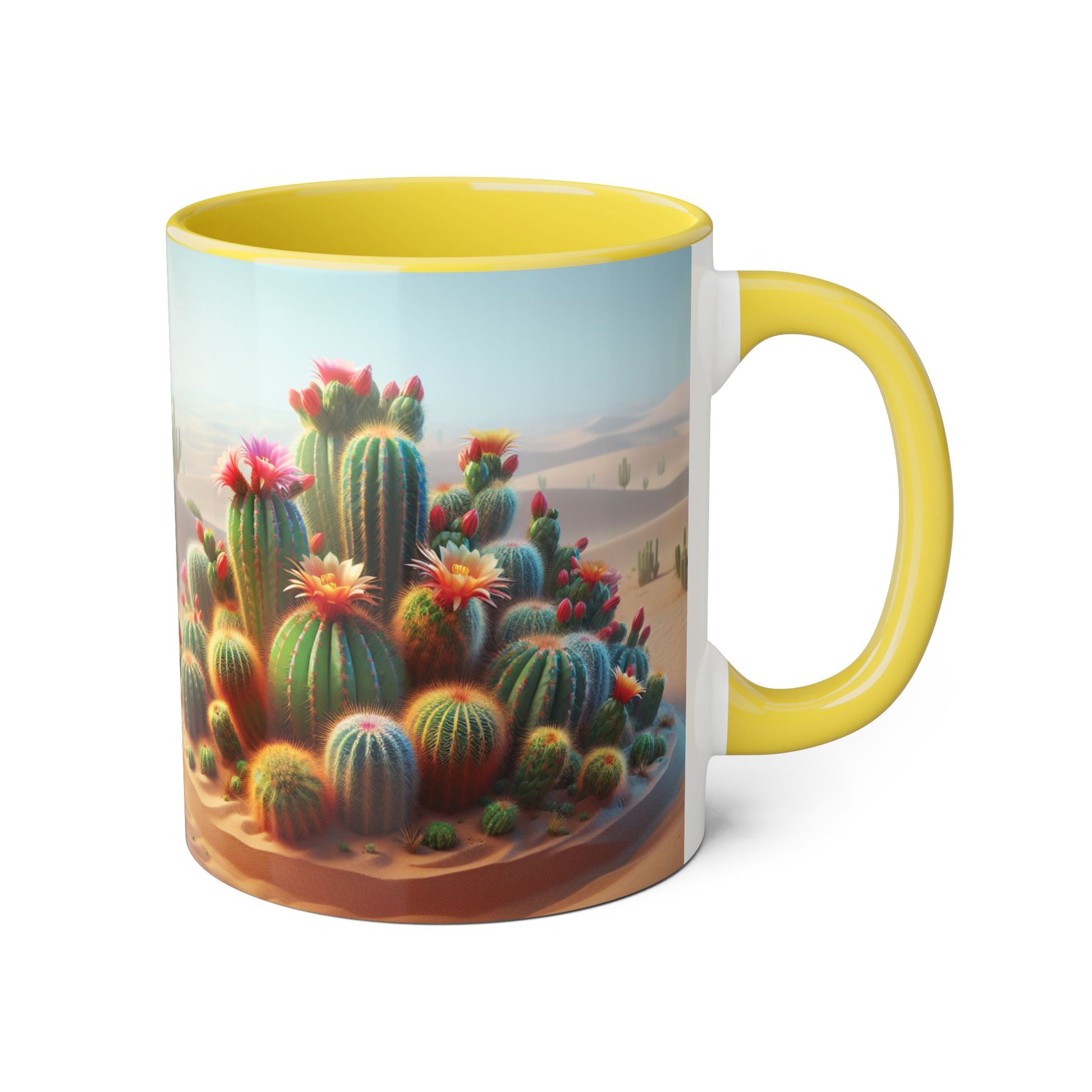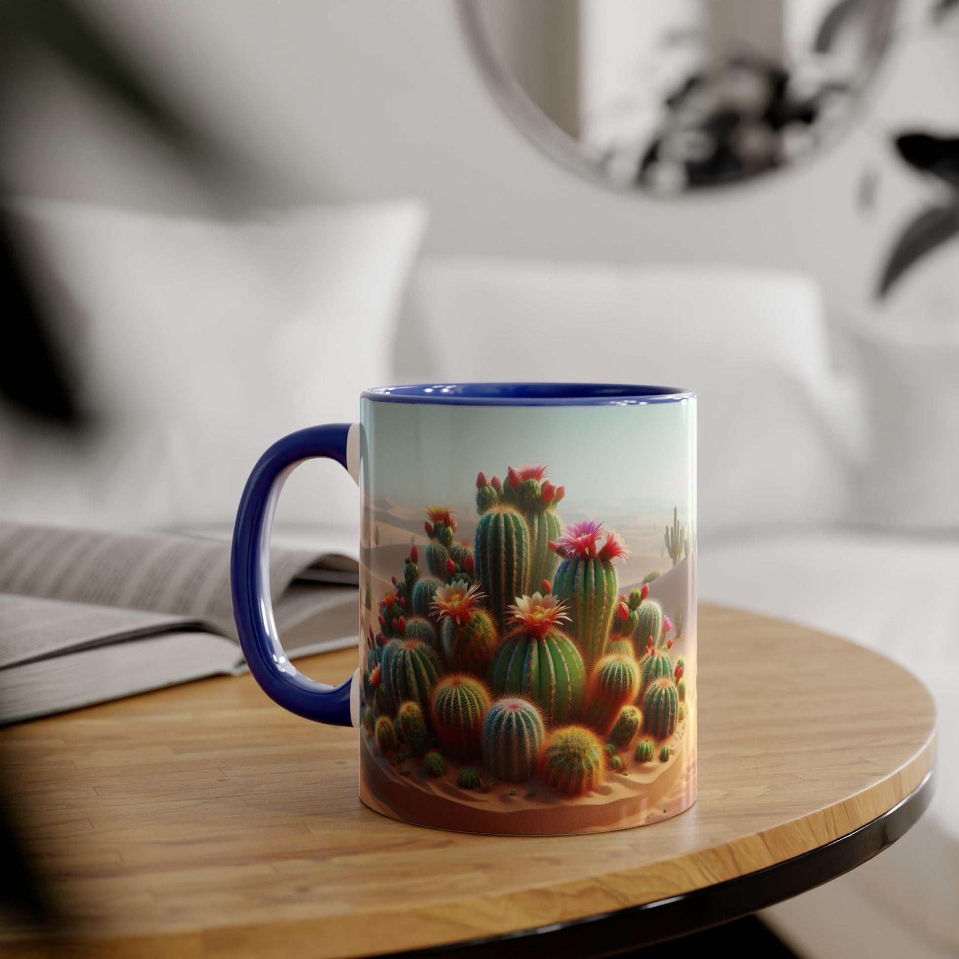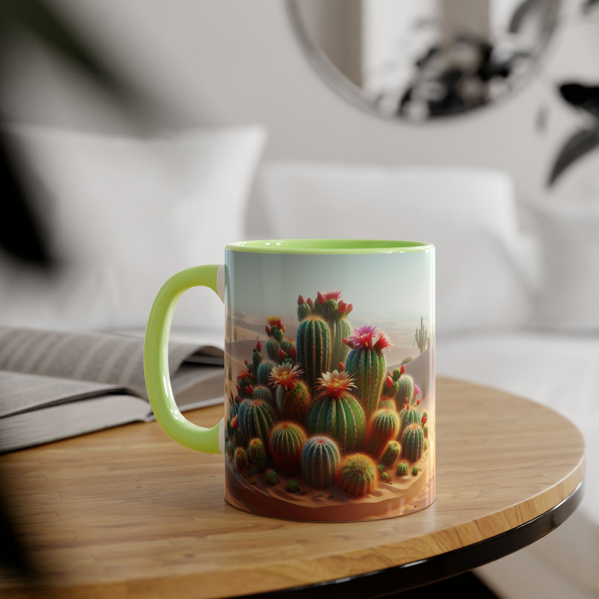 This desert cactus mug brings a touch of nature to your morning coffee or tea. Perfect for nature lovers and succulent enthusiasts, this mug is dishwasher and microwave safe, with vibrant colors and a scratch-resistant finish. The C-shaped easy-grip handle makes it comfortable to hold while enjoying your favorite beverage.