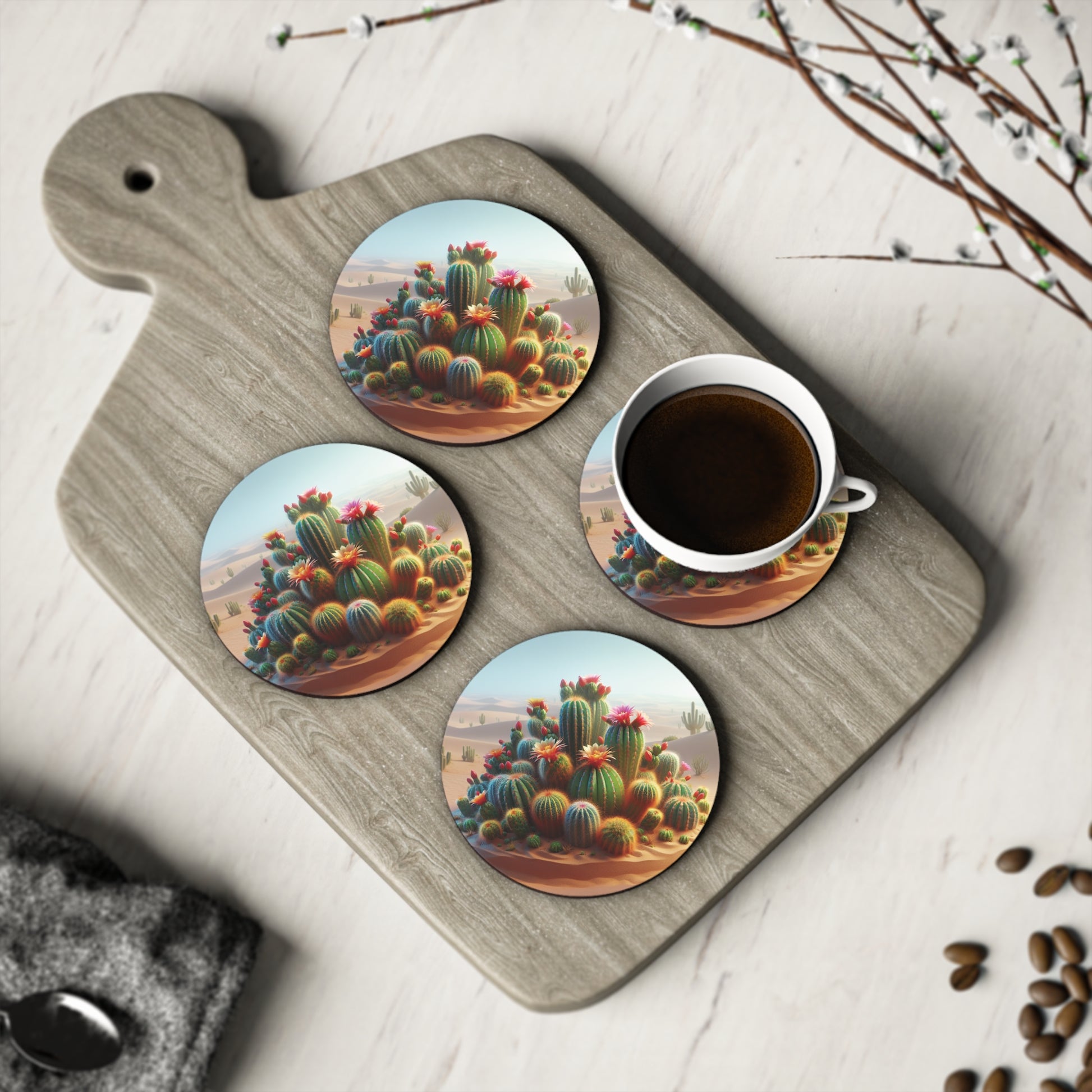 Add a touch of desert charm to your coffee table with these vibrant desert cactus coasters. Perfect for those who love a boho or southwestern vibe in their home decor. Ideal for housewarming gifts, birthdays, and summer parties.