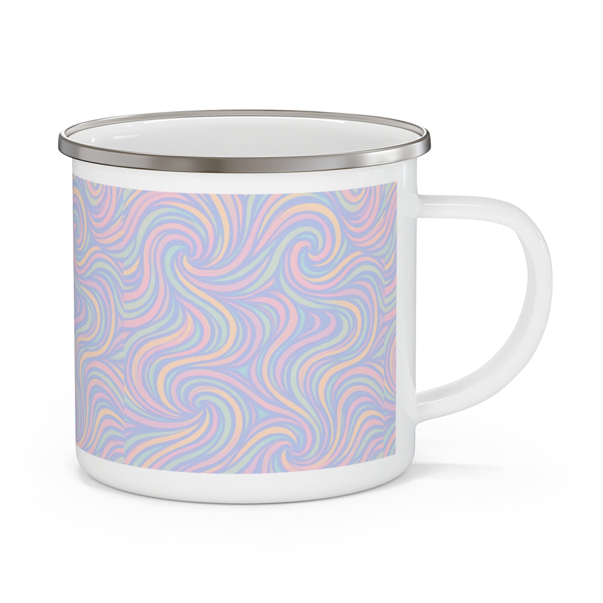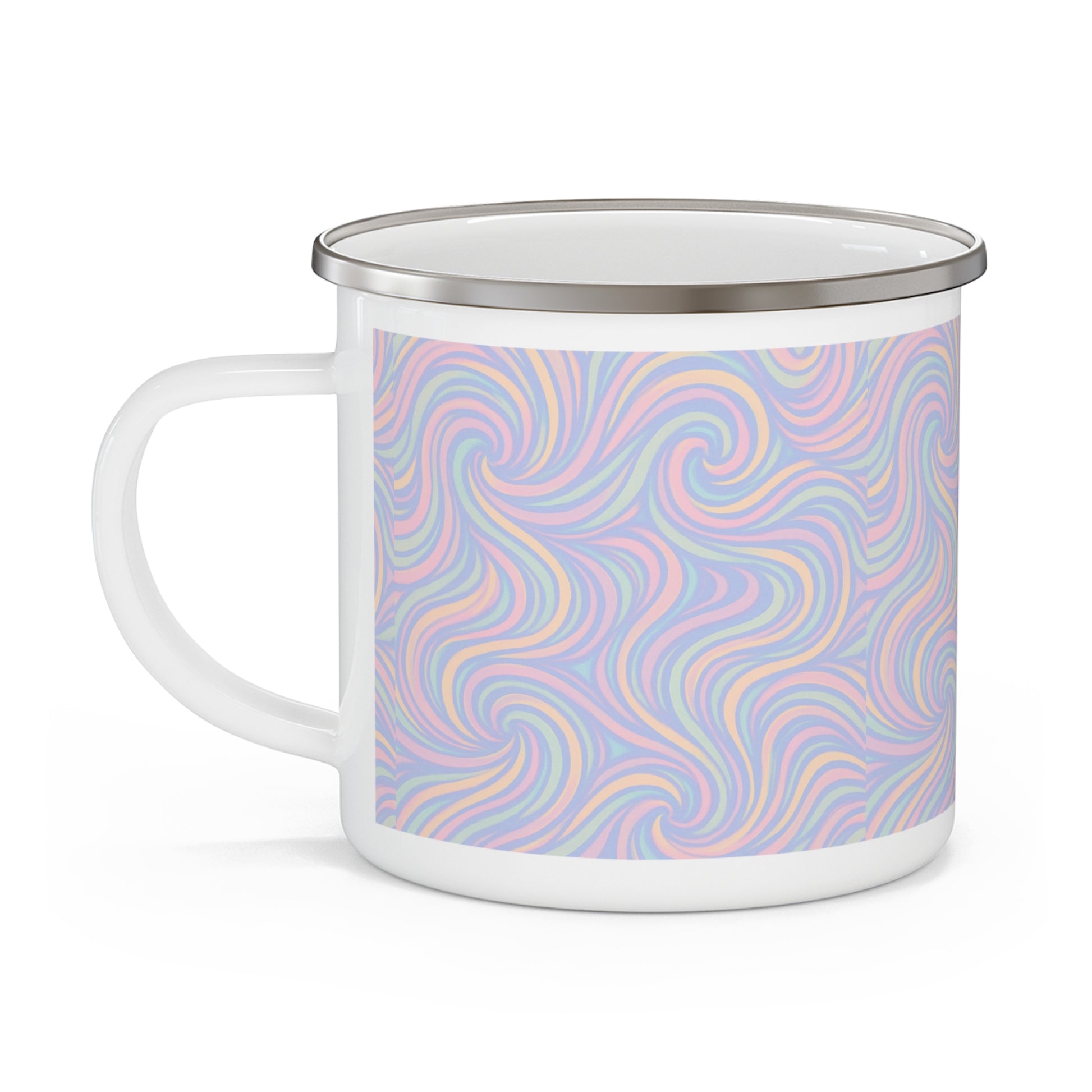 A colorful swirl enamel camping mug that brings a pop of fun to your outdoor adventures. Perfect for nature lovers and camping enthusiasts. Ideal for cozying up around a campfire during summer nights or sipping hot cocoa during the holidays.