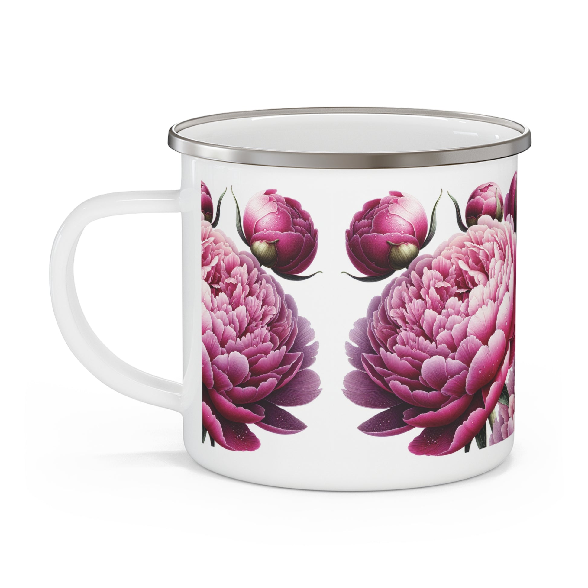 This pink peony enamel camping mug exudes a whimsical and charming vibe, perfect for nature lovers and outdoor enthusiasts. It can be a lovely addition to your camping gear or a cozy companion for sipping hot beverages at home. Ideal for gifting on Mother's Day, birthdays, or any occasion to bring a touch of beauty to your daily routine.