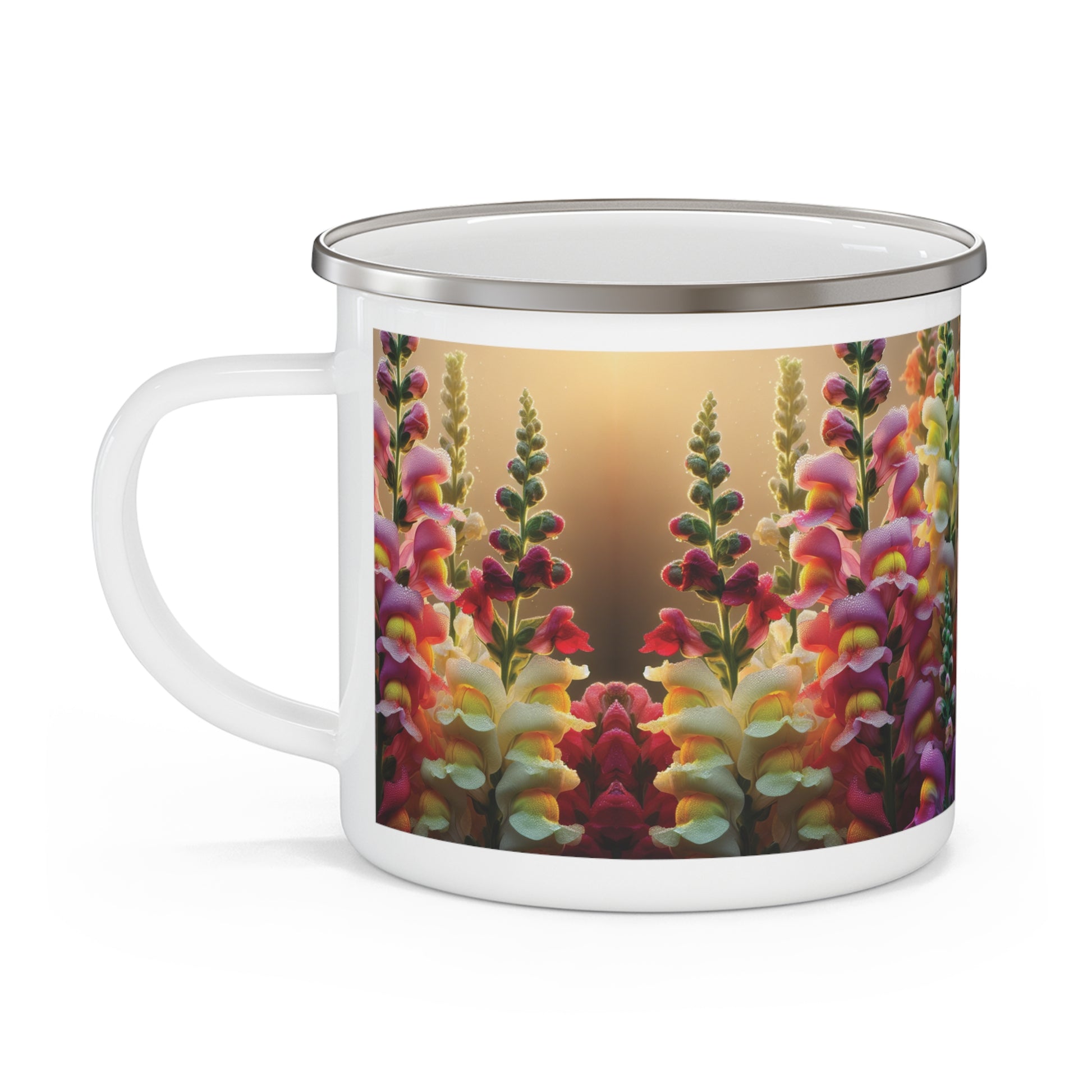 This vibrant mug featuring snapdragons is perfect for nature lovers and outdoor enthusiasts. Whether you're enjoying your morning coffee at home or sipping on hot cocoa by the campfire, this enamel camping mug adds a touch of color to your everyday routine. Ideal for camping trips, hiking adventures, or simply bringing a bit of the outdoors into your kitchen.