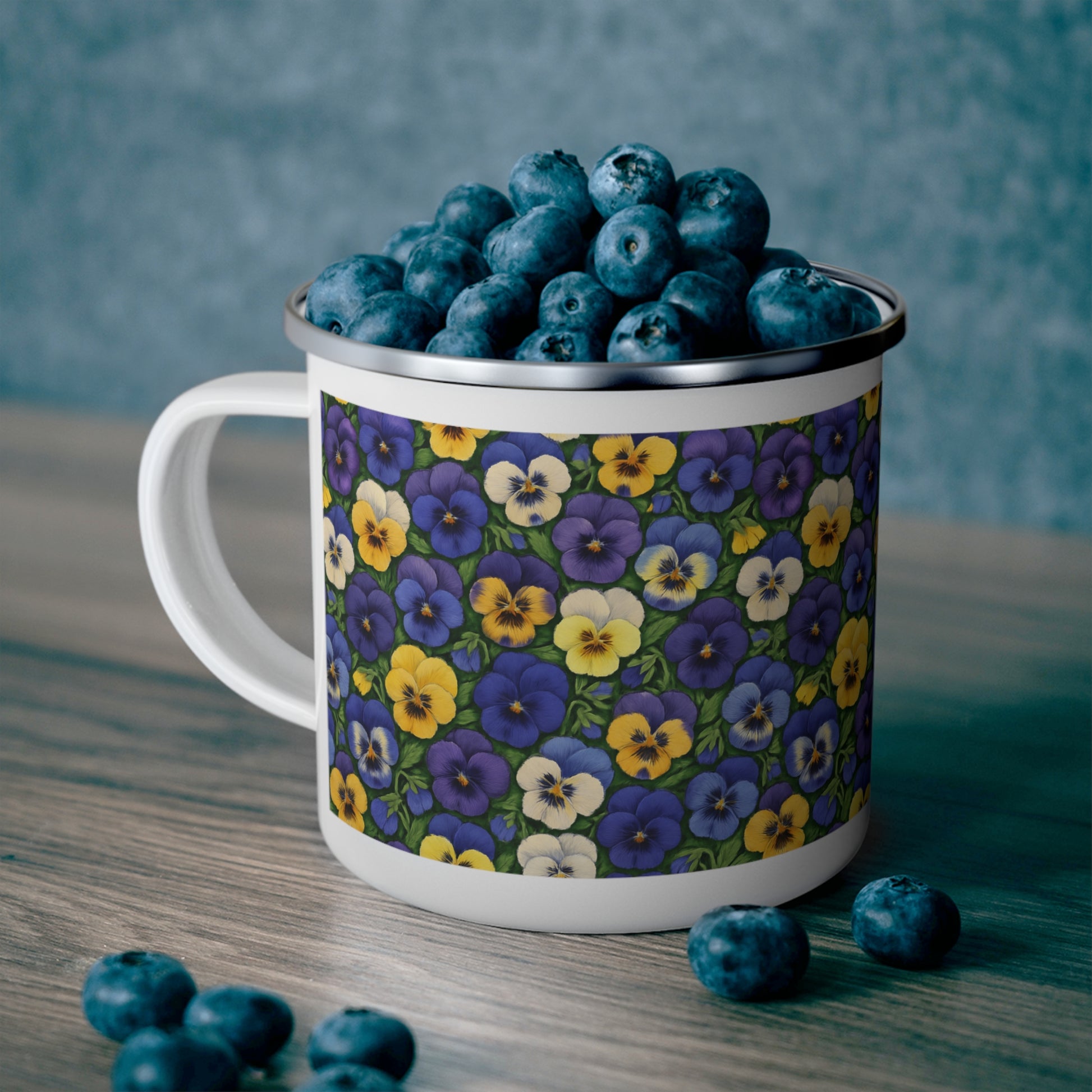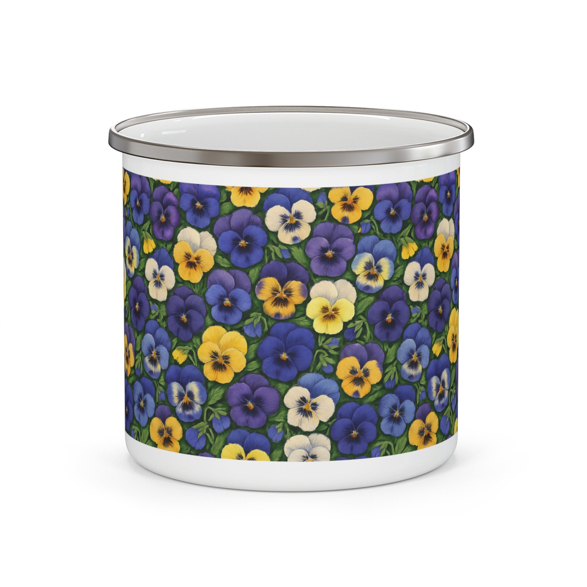 This vibrant pansy enamel camping mug is perfect for nature lovers and outdoor enthusiasts. It brings a touch of colorful beauty to your morning coffee or tea, providing a cozy and cheerful vibe. Ideal for camping trips, hiking adventures, or simply enjoying a hot beverage in your backyard. Makes a great gift for birthdays, Mother's Day, or as a thoughtful token of appreciation.