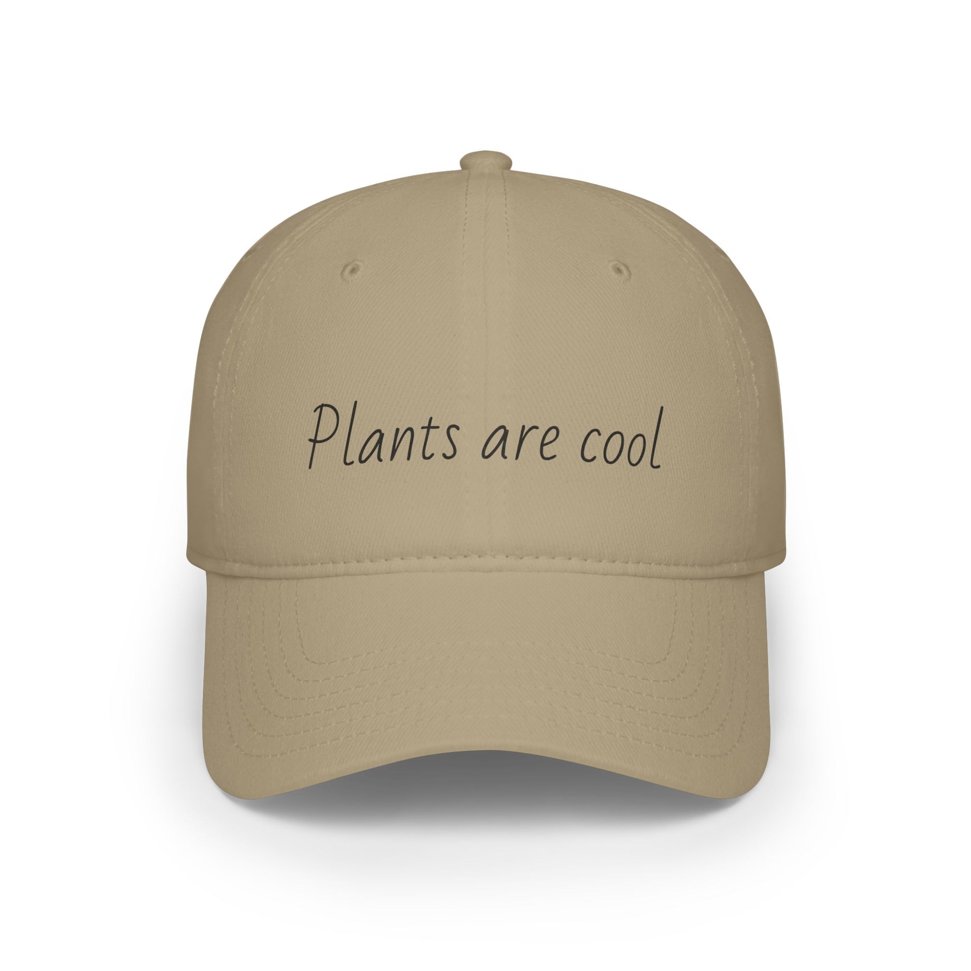 Elevate your casual style with this comfortable Low Profile Baseball Cap. Made from soft, high-quality cotton, this cap offers a relaxed fit that is perfect for a sunny day out or a laid-back gathering with friends. Its vibrant color and fun phrase, 'Plants are cool,' add a playful touch to your outfit, making it an excellent accessory for nature lovers and plant enthusiasts alike. Ideal for outdoor events, festivals, or just lounging in the park, this cap is perfect for anyone who values comfort without sacrificing style. Great for casual birthday gifts, Earth Day celebrations, or just to brighten someone's day!