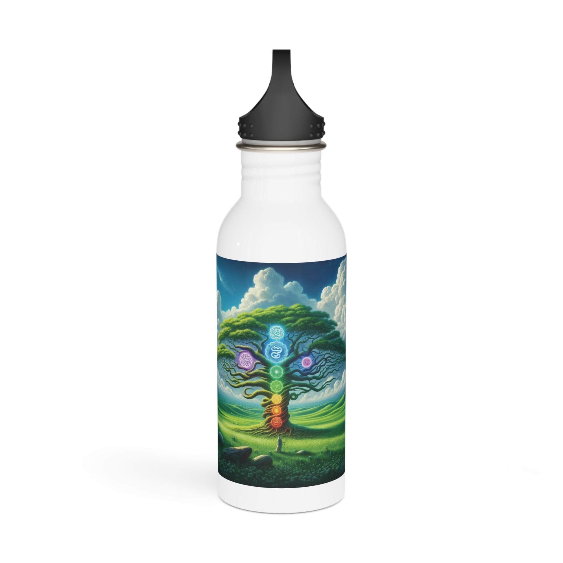 Chakra Tree Water Bottle, Yoga Water Bottle, Stainless Steel Water Bottle, Tree of Life Drinkware, Mindfulness Gift, Reiki Energy Bottle
