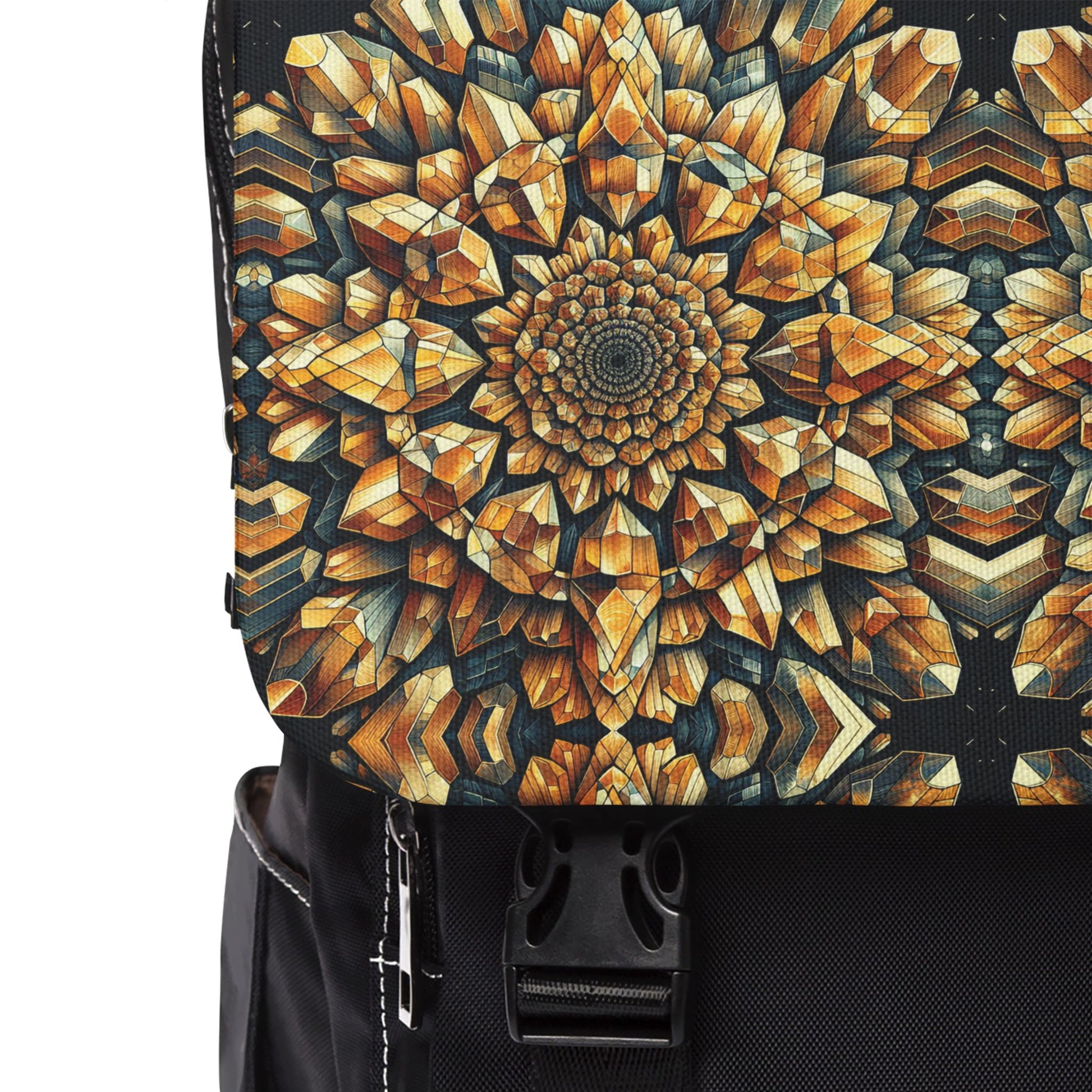 A trendy citrine geometric backpack made of premium lightweight tear resistant Oxford fabric. This backpack features multiple compartments for easy organization, padded back panel and straps for extra comfort, and adjustable shoulder straps. Perfect for students, travelers, and anyone with an on-the-go lifestyle. Ideal for back-to-school, travel, and daily use.