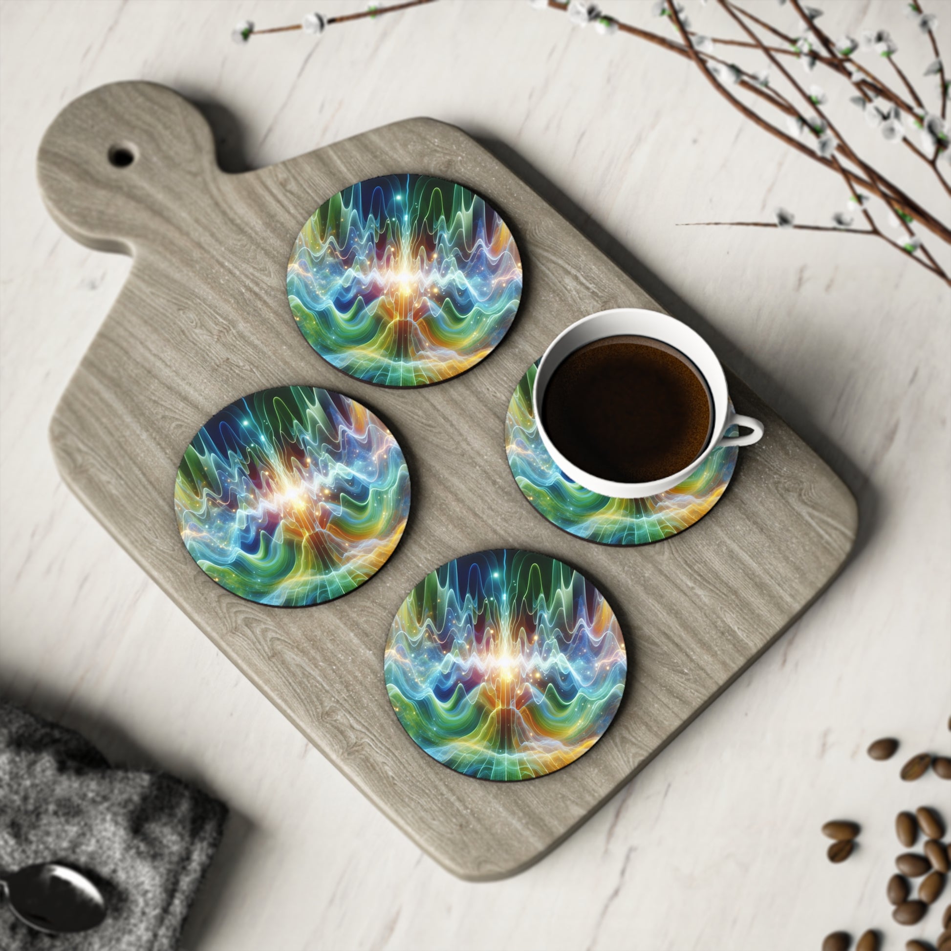 These coasters feature a design of frequency waves, giving off a modern and stylish vibe. Perfect for those who love trendy and unique home decor items. Ideal for gifting during housewarmings, birthdays, or as a stocking stuffer.