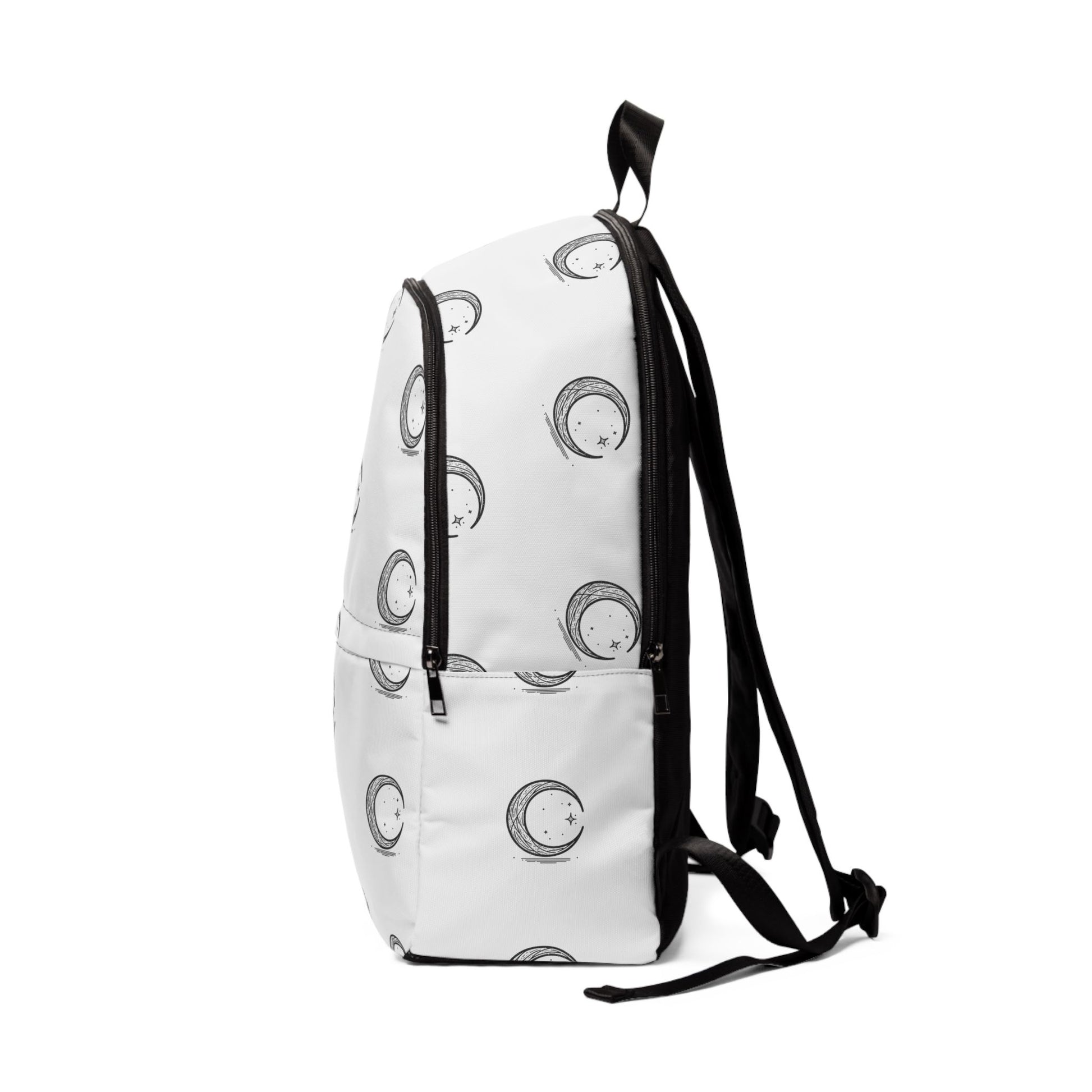 A crescent moon minimalist backpack made of 100% soft nylon canvas, perfect for everyday use. The padded back and adjustable shoulder straps provide comfort and breathability. Ideal for those who appreciate minimalist design and functionality. Suitable for students, travelers, and anyone looking for a stylish and durable backpack. Great for back to school, travel, and everyday use.