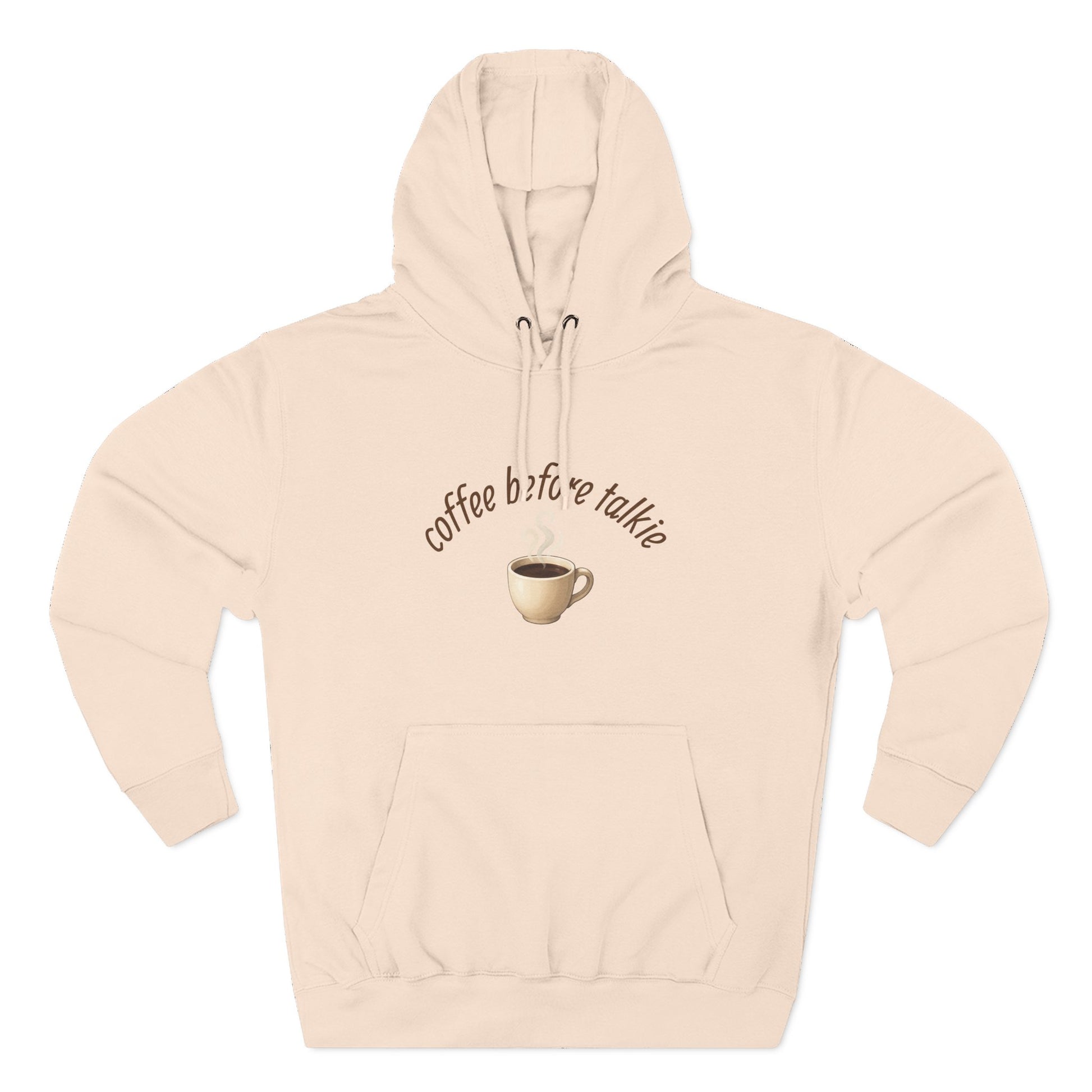 Fleece Hoodie: Coffee Before Talkie, Caffeine Lover Sweatshirt, Three-Panel Pullover, Unisex Hooded Top