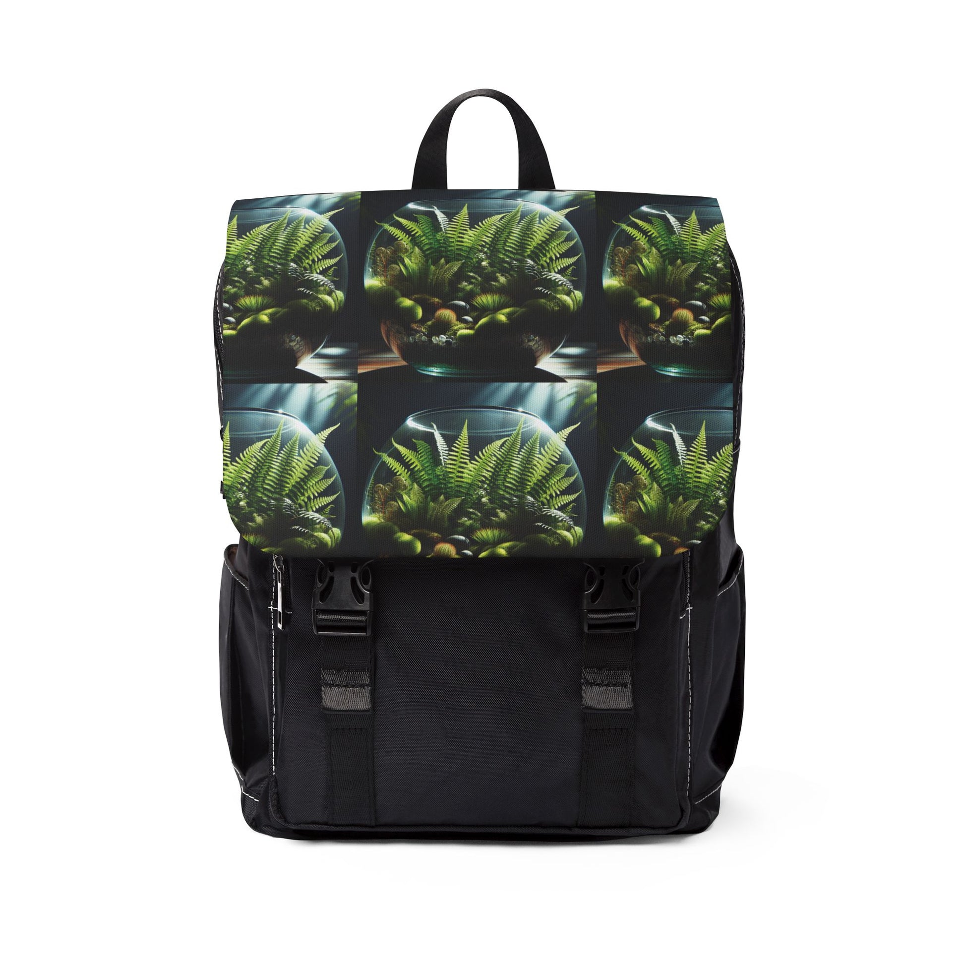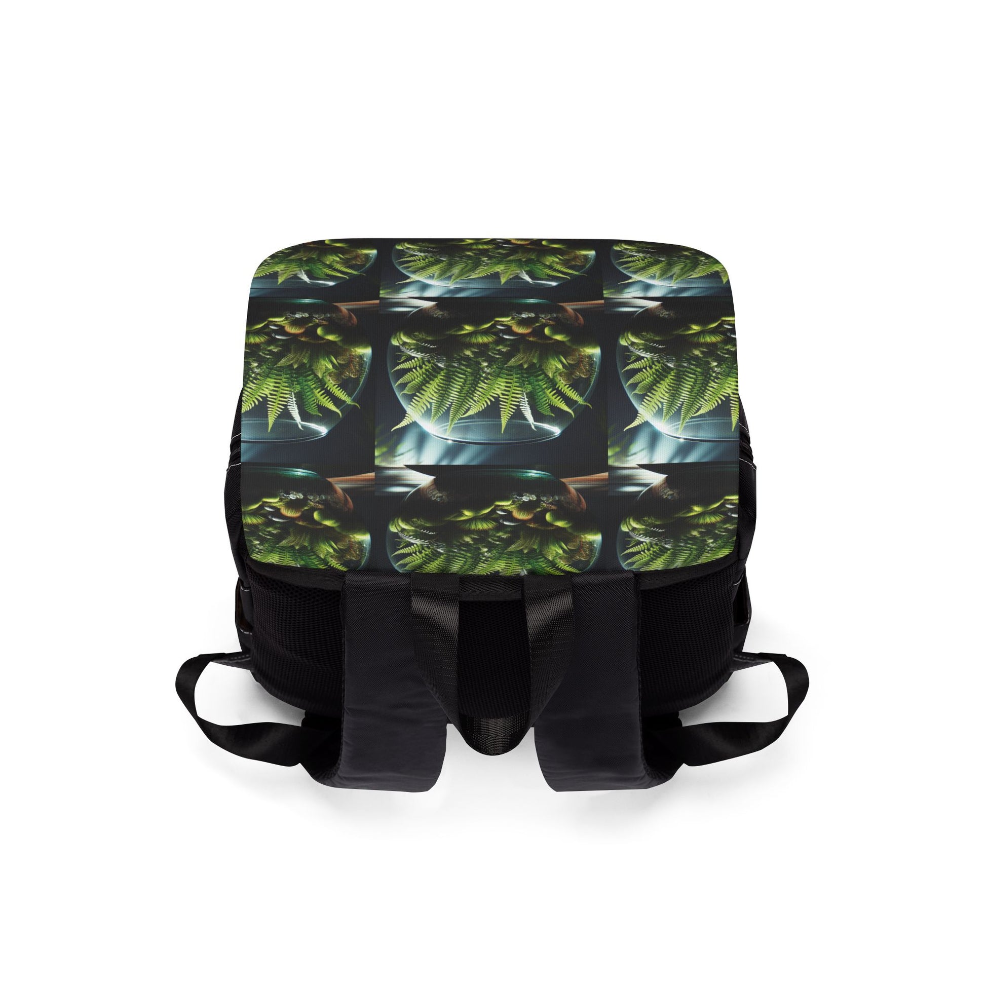 This fern terrarium backpack exudes a natural and serene vibe, perfect for nature lovers and outdoor enthusiasts. It is ideal for casual everyday use or for hiking and exploring the outdoors. The backpack is relevant for Earth Day, nature-inspired events, and outdoor adventures.