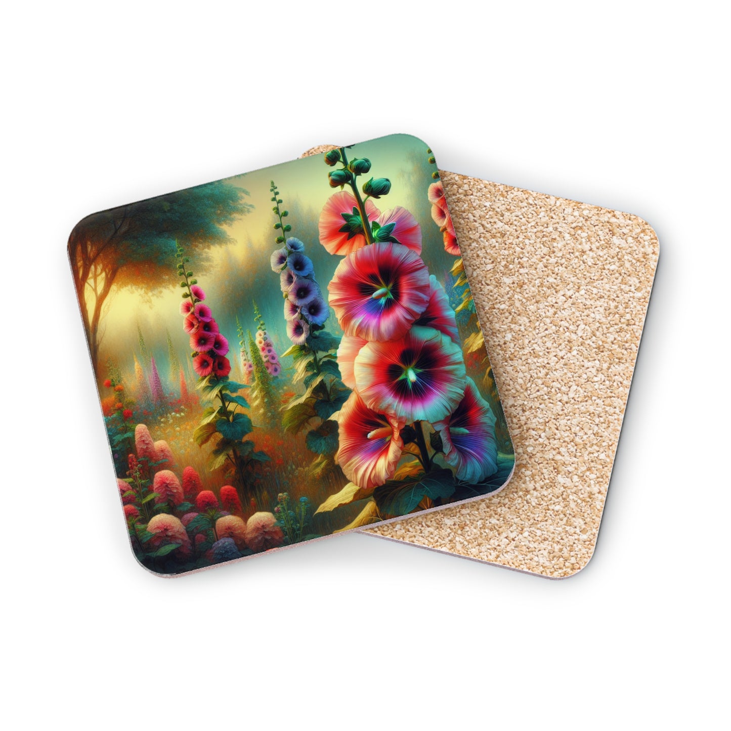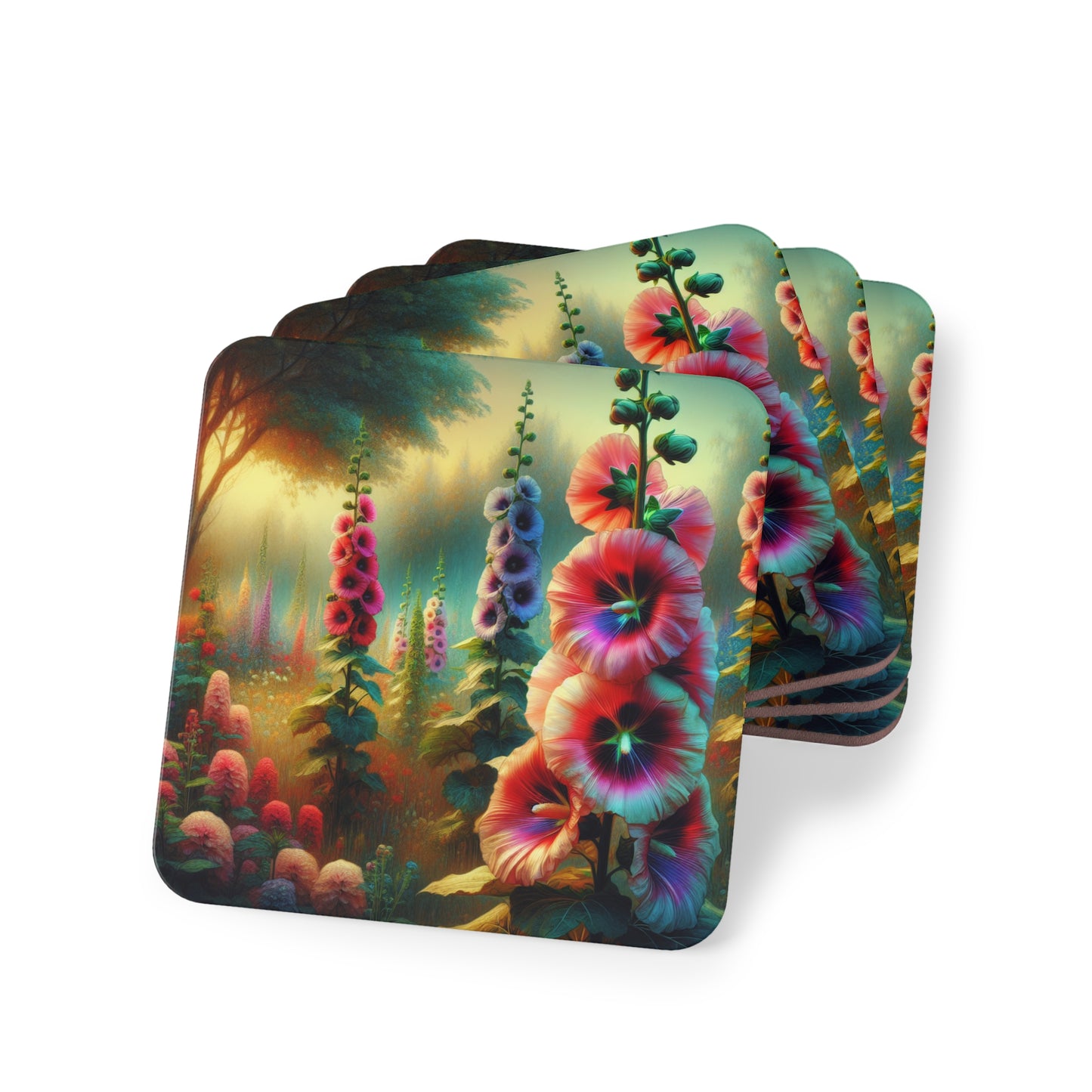 These coasters feature vibrant hollyhock blooms, adding a touch of nature to your home decor. Perfect for those who love floral designs and want to protect their surfaces from scratches and spills. Ideal for gifting on birthdays, housewarmings, or garden-themed parties.