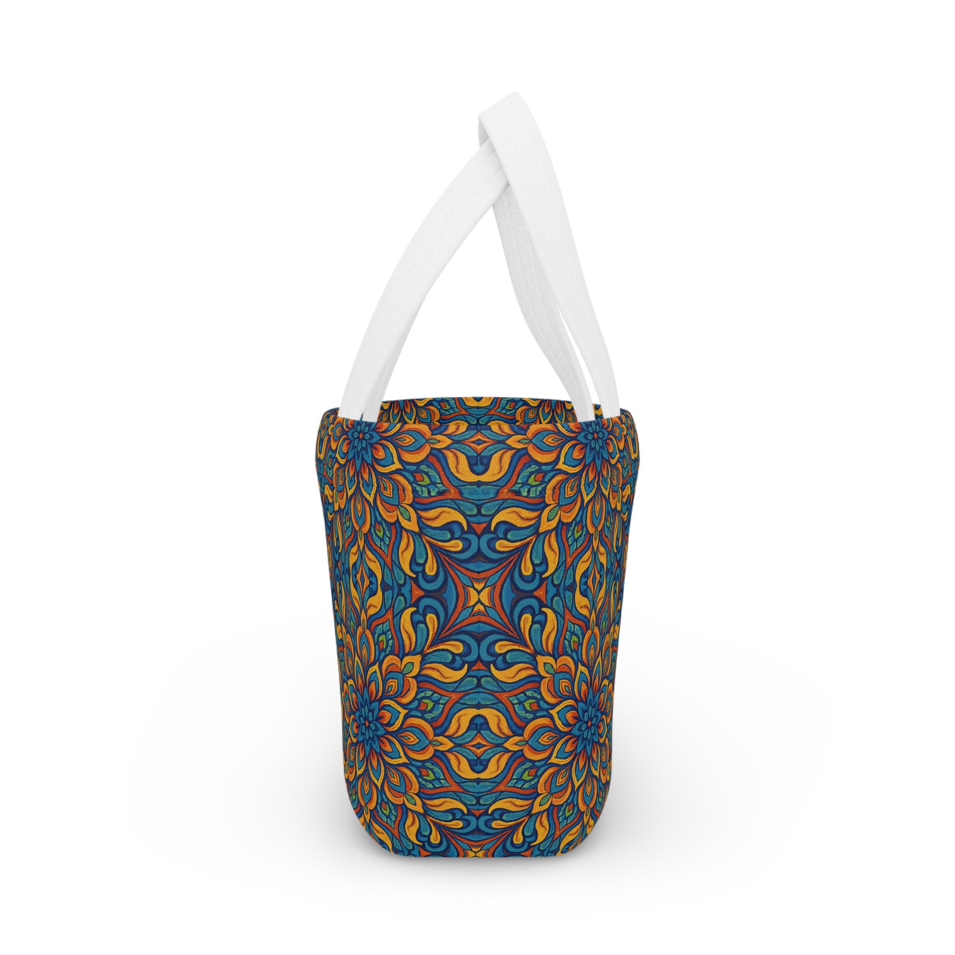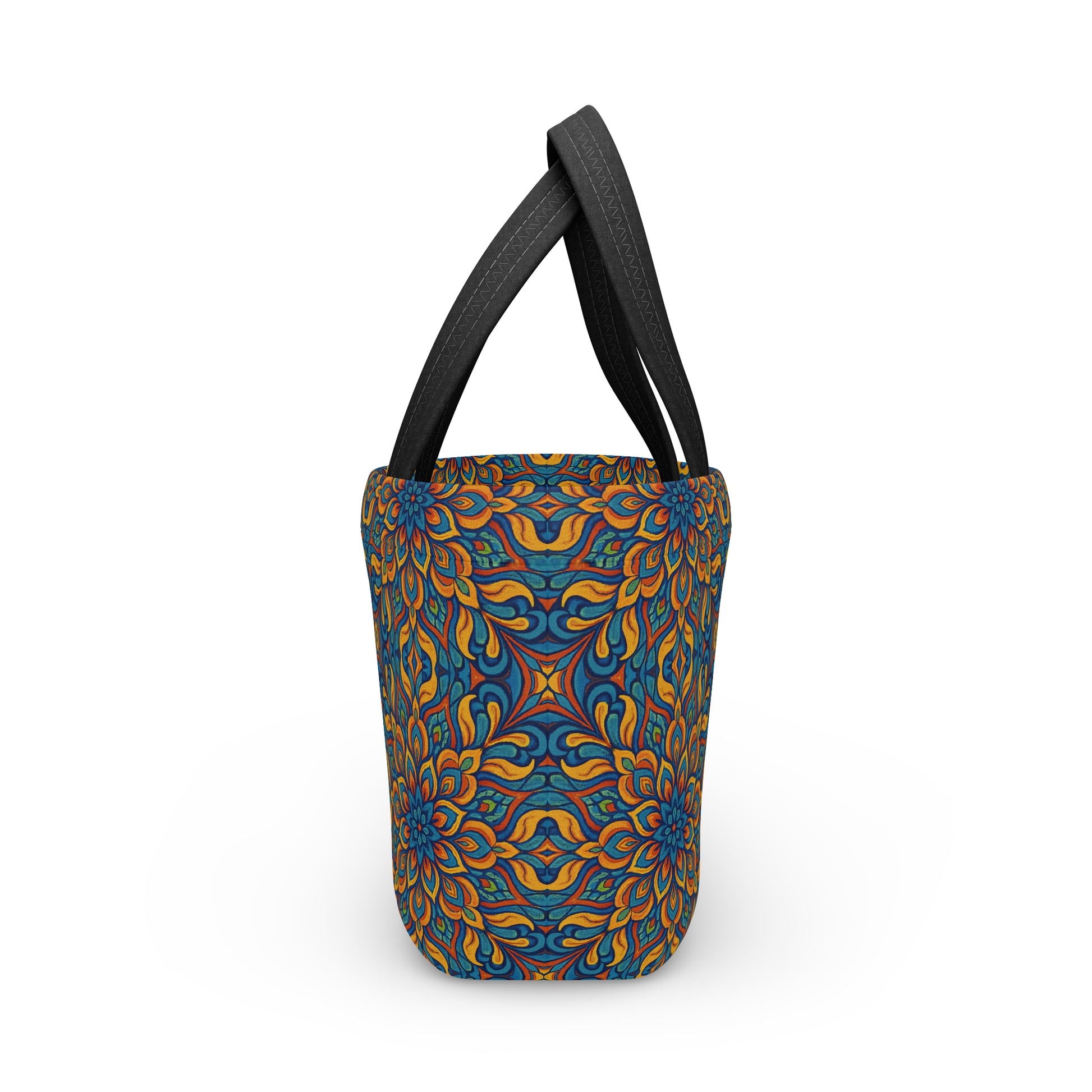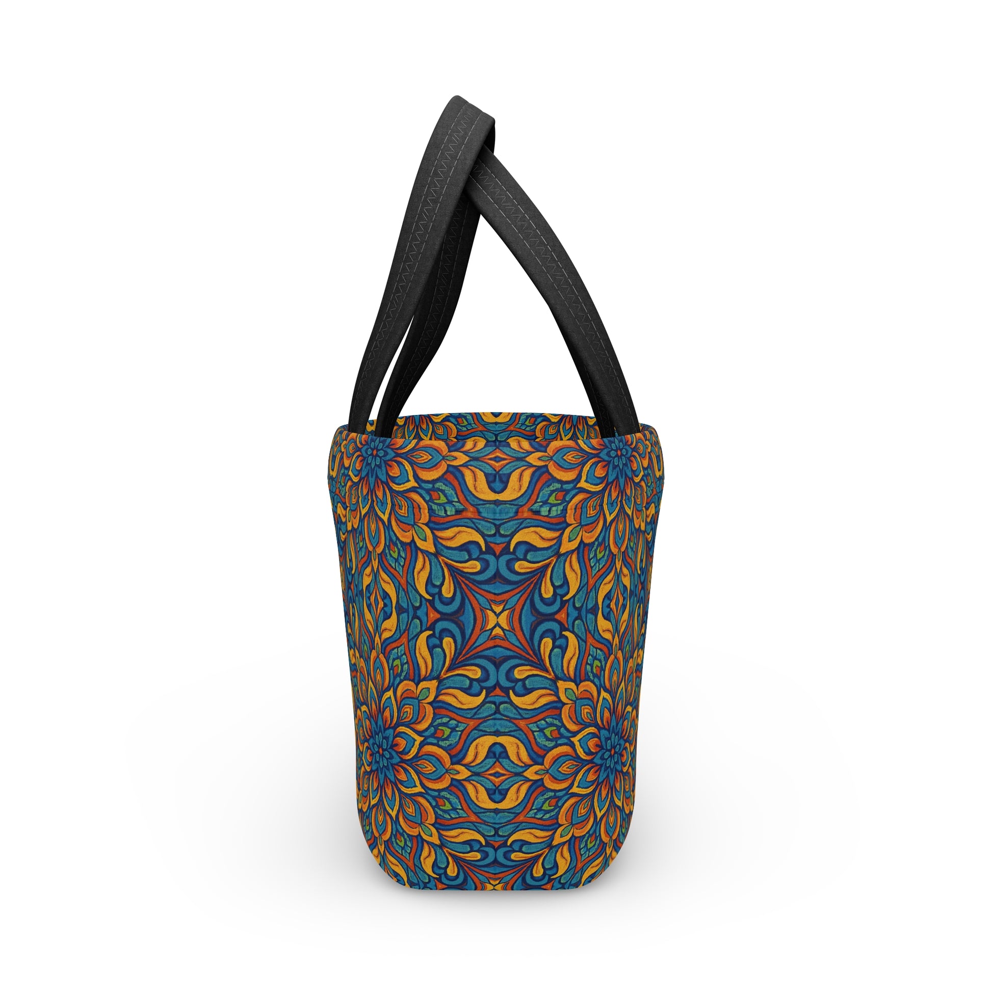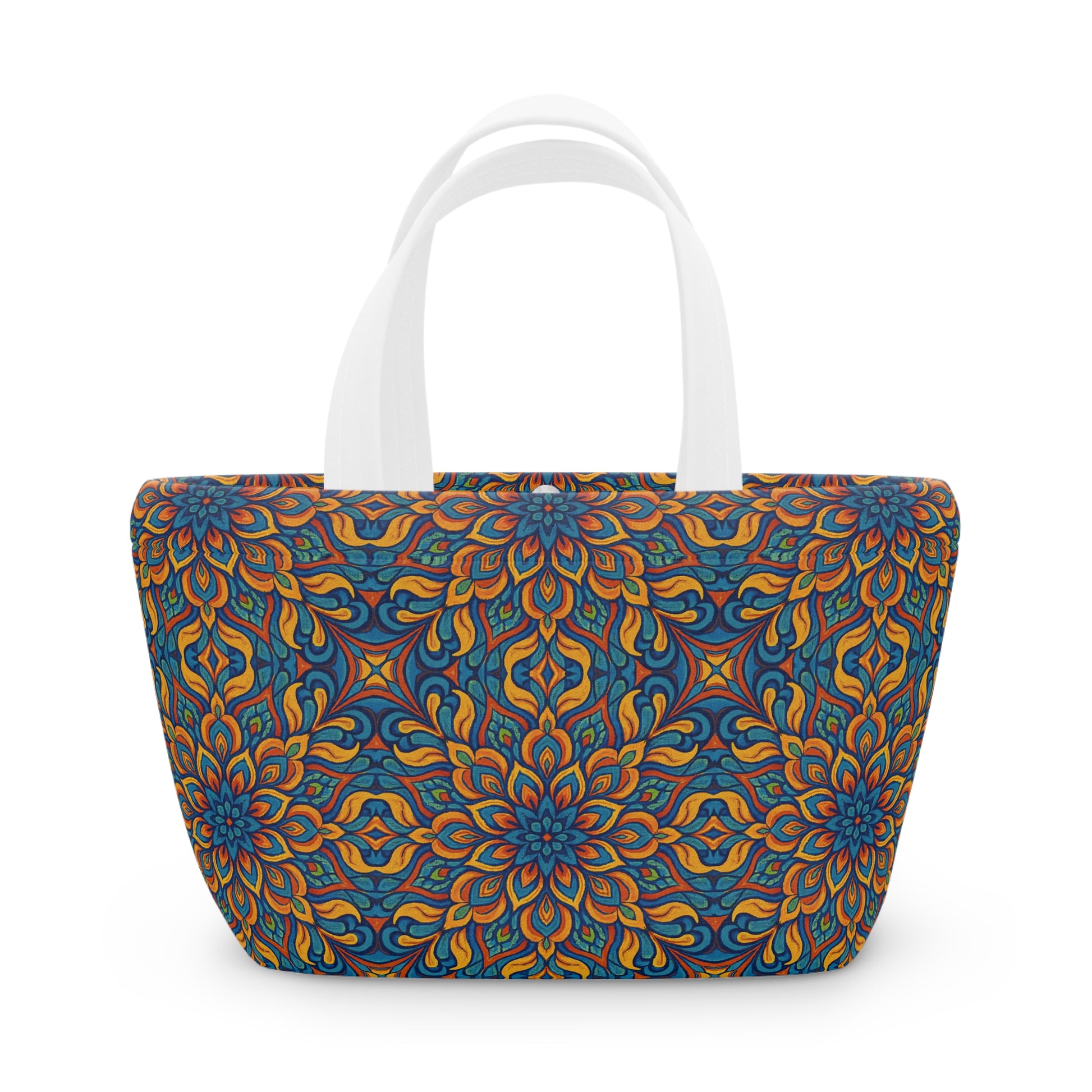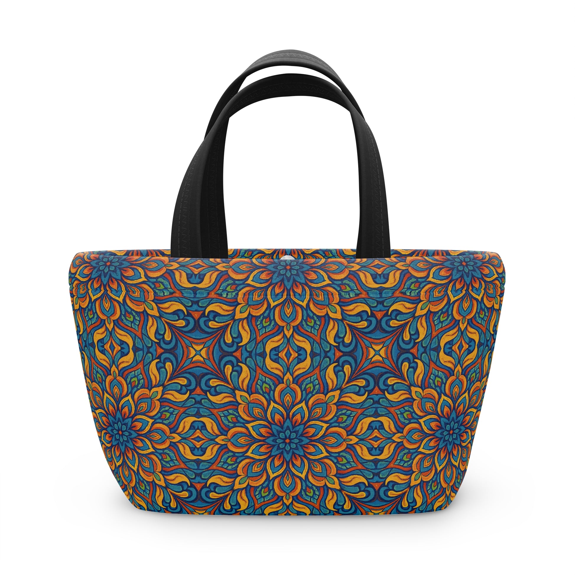 This kaleidoscope lunch bag features vibrant colors and a spacious interior, perfect for carrying your meals and snacks on the go. The magnetic button closure and durable carrying handles make it convenient for daily use. Ideal for students, working professionals, and anyone who loves to bring their own food. Great for back to school, office lunches, picnics, and outdoor adventures.