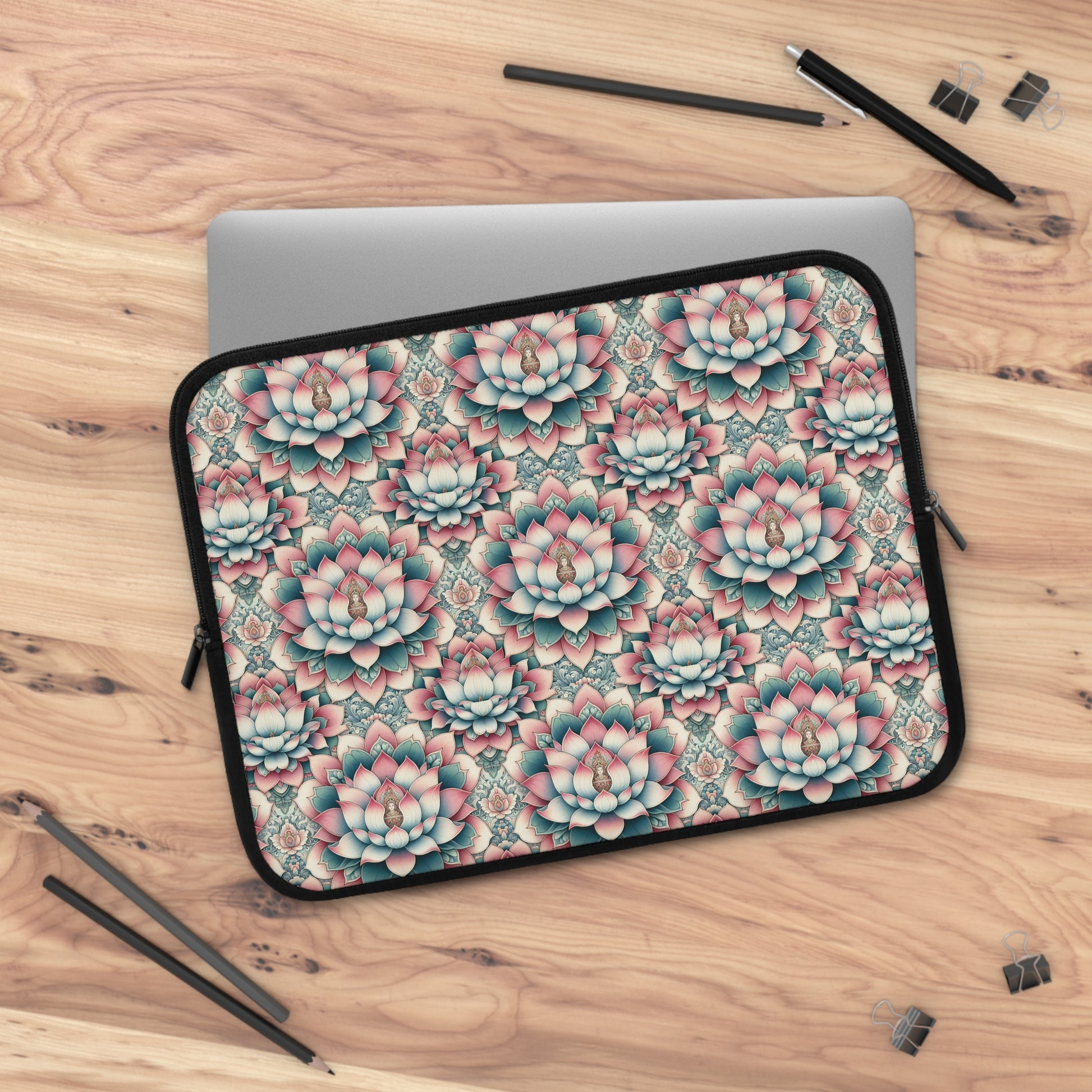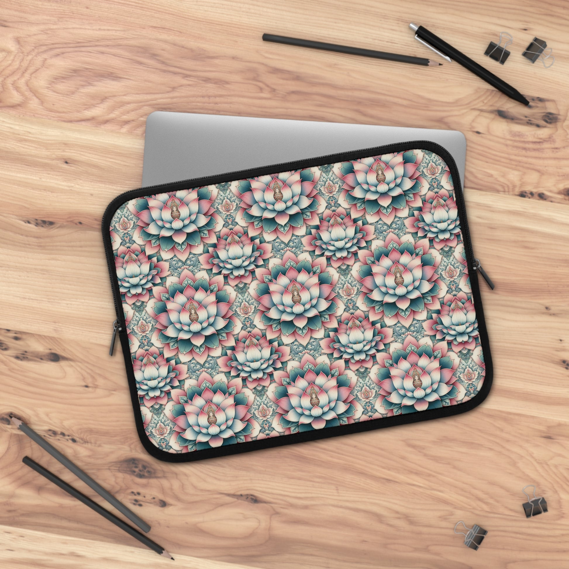 This lotus blossom laptop sleeve combines style and protection for your device. The design exudes a serene and calming vibe, perfect for those who appreciate nature and mindfulness. Ideal for students, professionals, and anyone who enjoys a touch of tranquility in their daily life. Great for gifts during Mother's Day, birthdays, and back-to-school season.