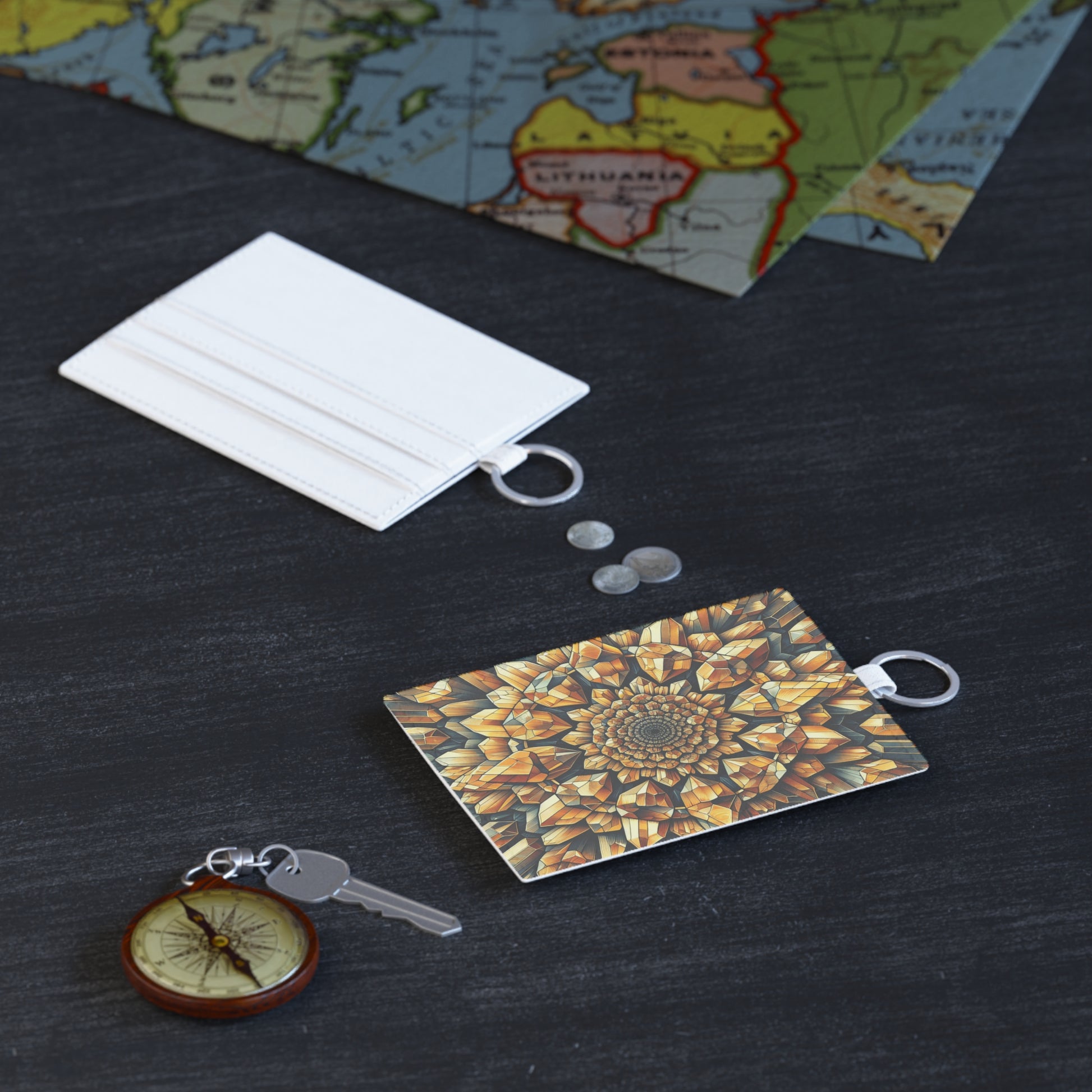Leather Card Holder: Citrine Geometric Design, Sleek Wallet for Business Cards, Minimalist Credit Card Case, Card Organizer