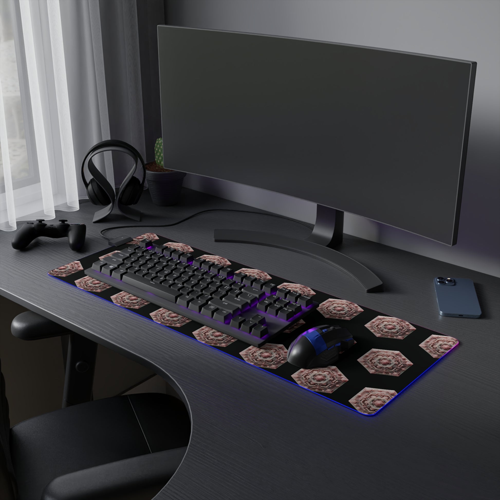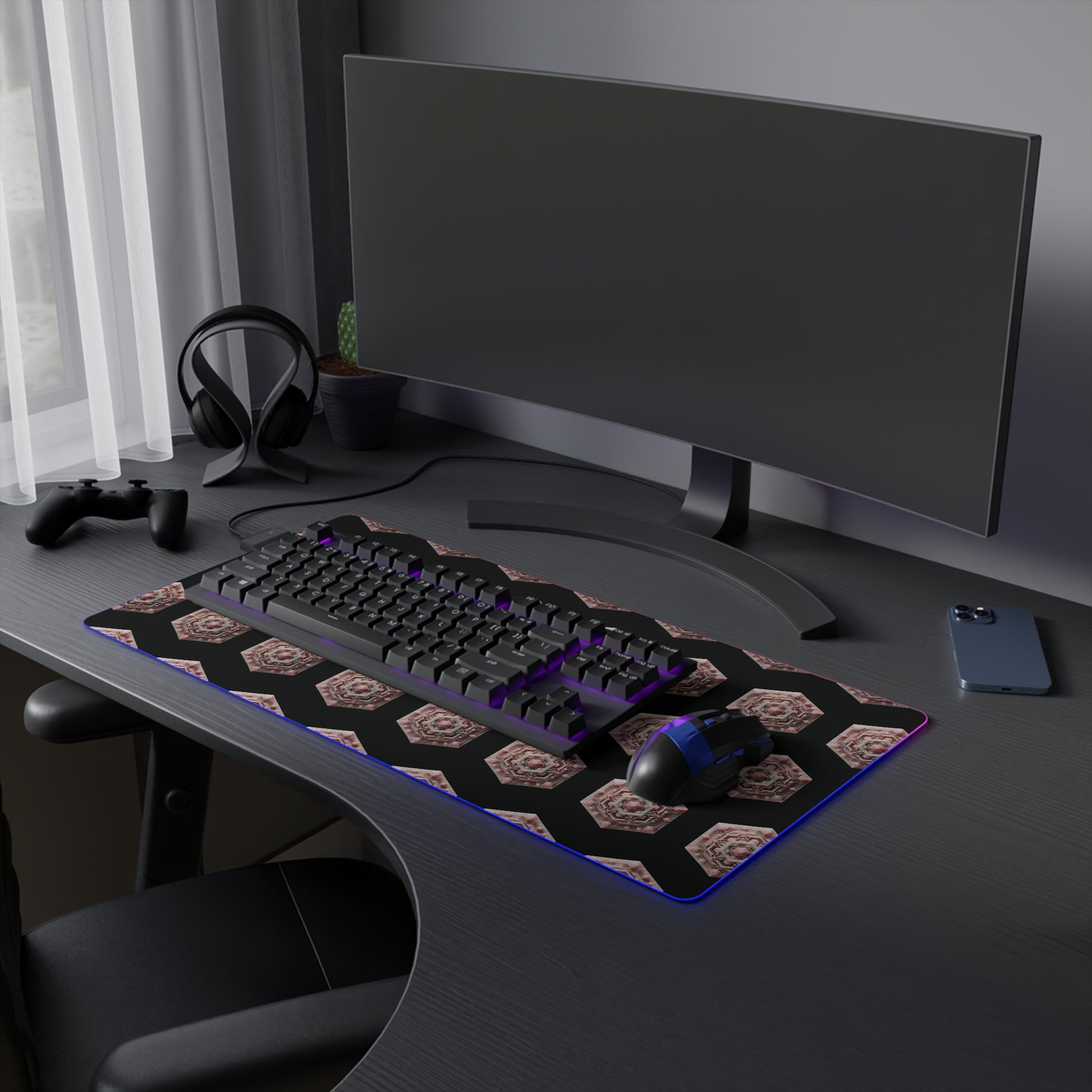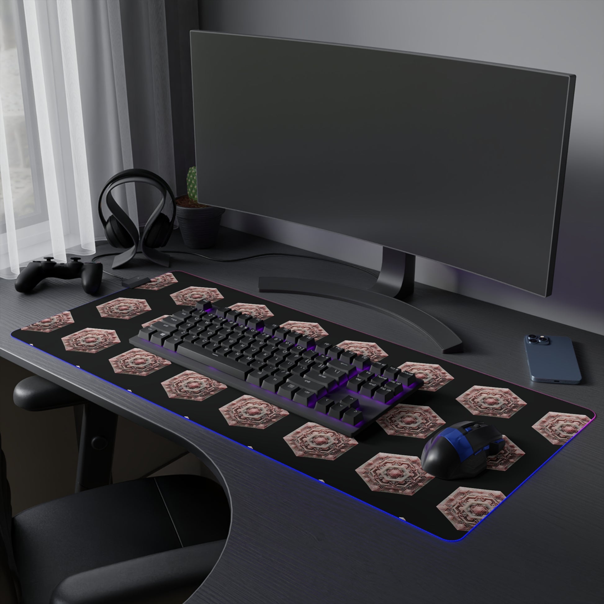 LED Gaming Mouse Pad - Geometric Rose Quartz Design