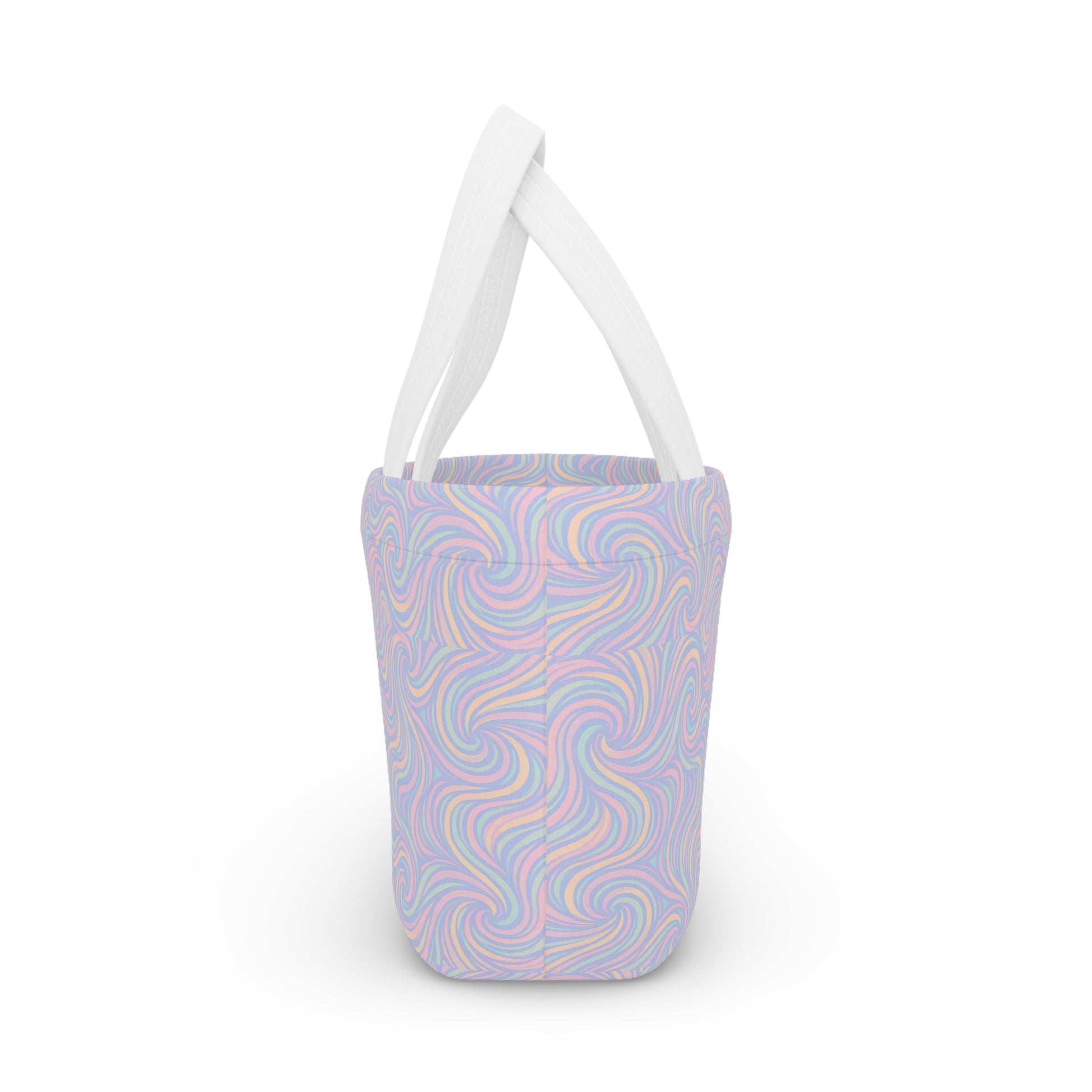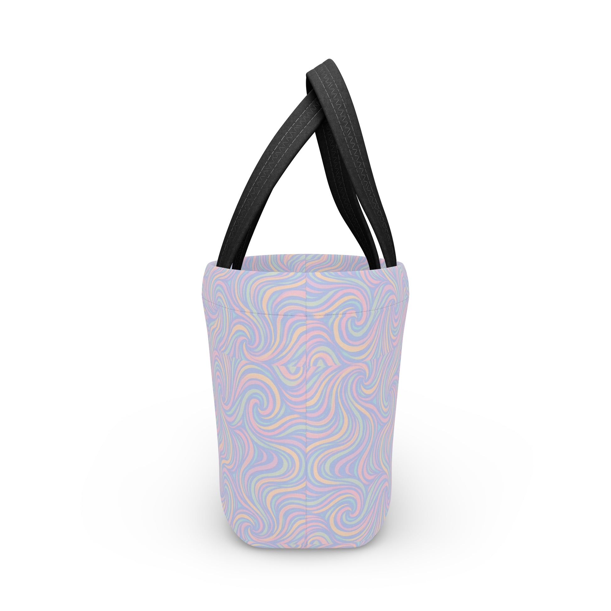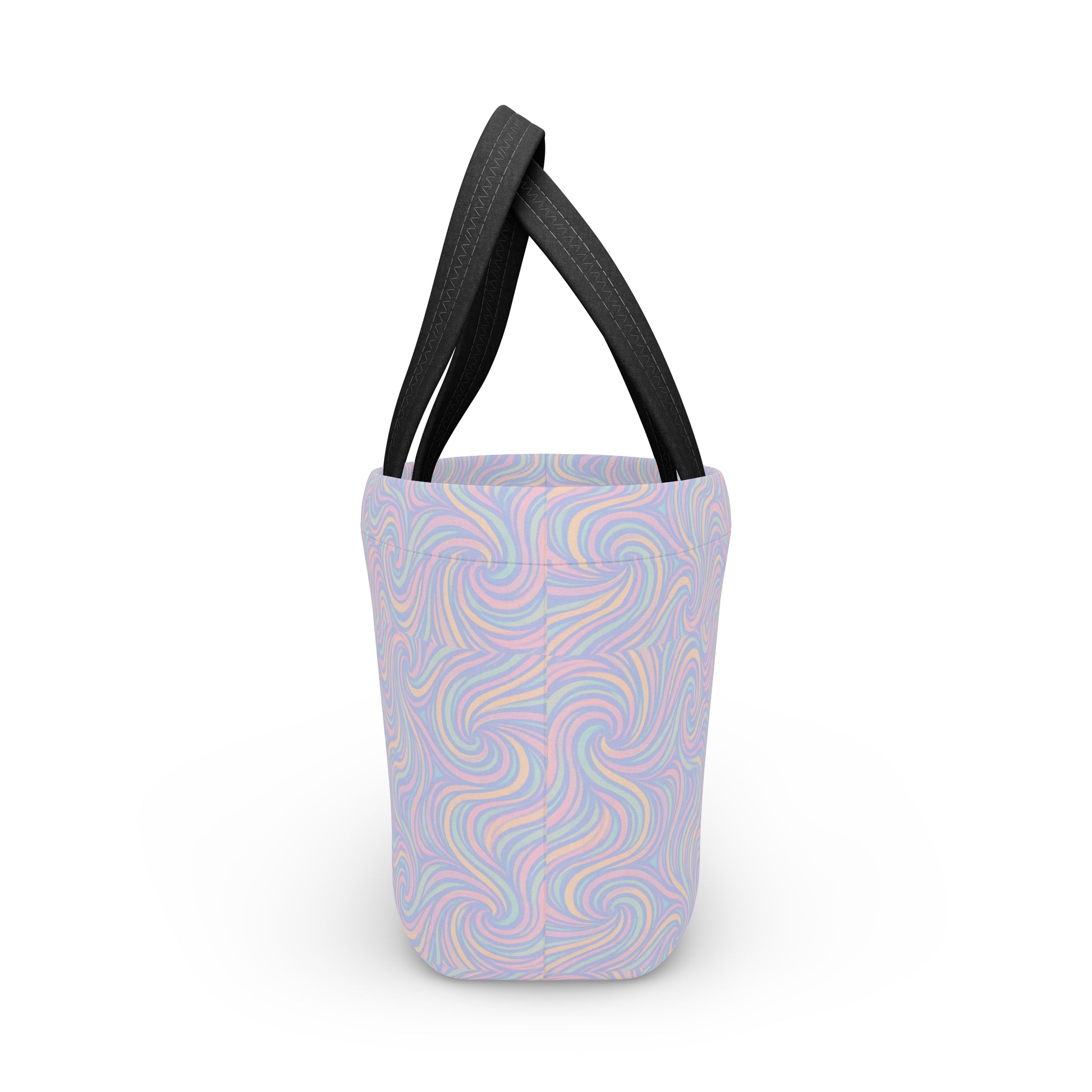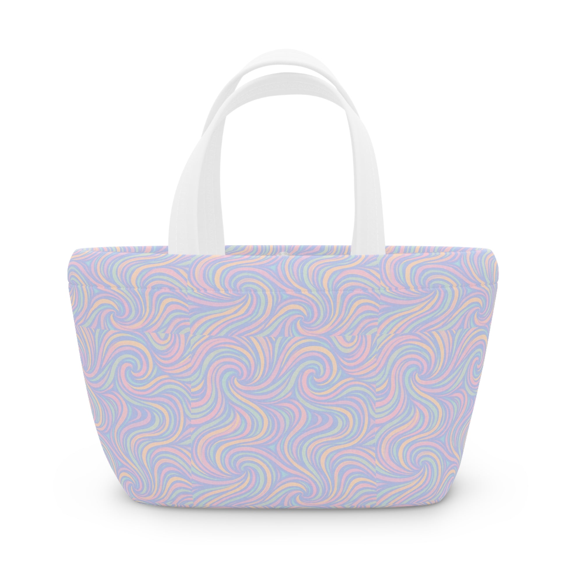 A pastel swirl lunch bag that brings a whimsical and cheerful vibe to your daily routine. Perfect for school, work, picnics, or any on-the-go meal. Ideal for those who love colorful and unique accessories. Great for back-to-school, birthdays, and everyday use.