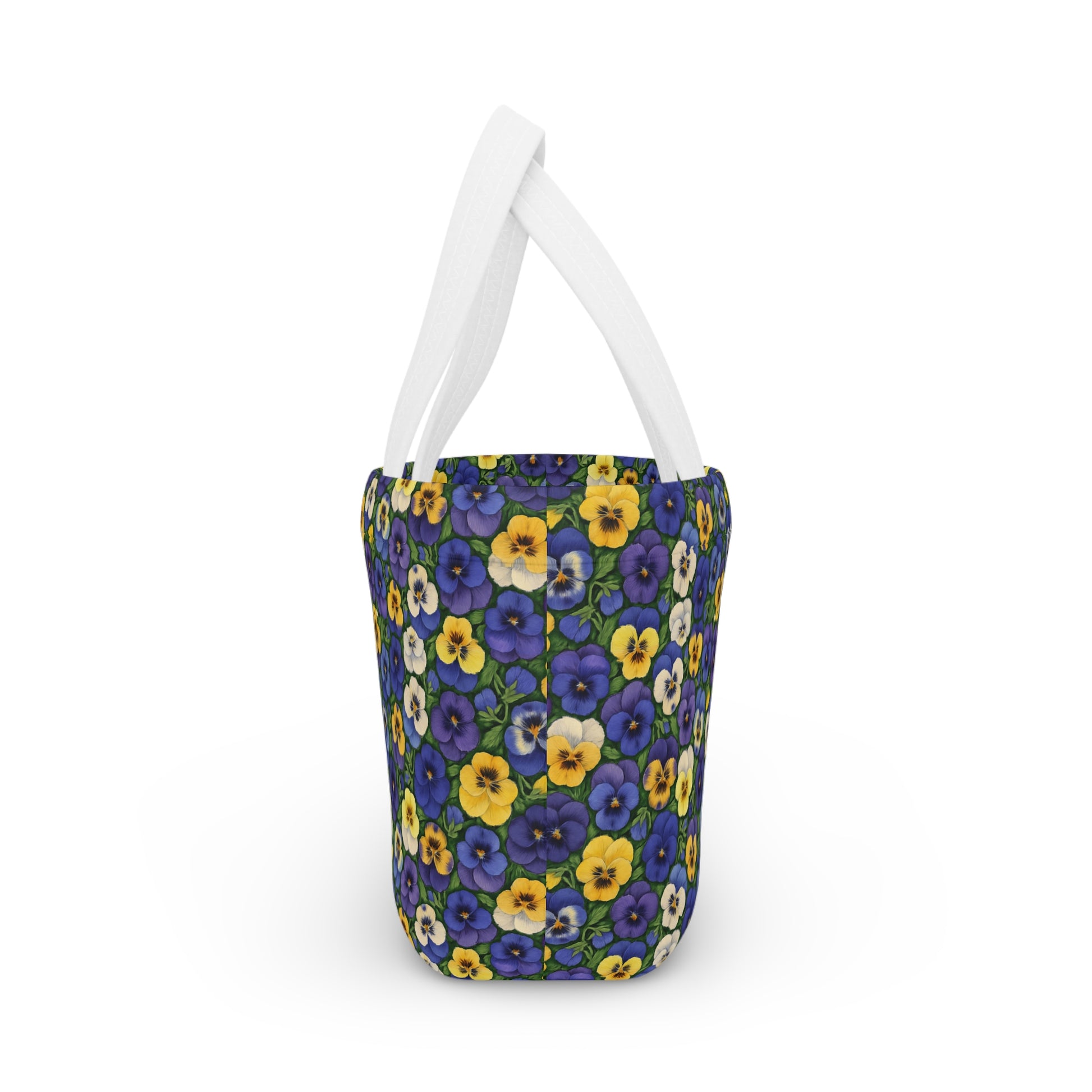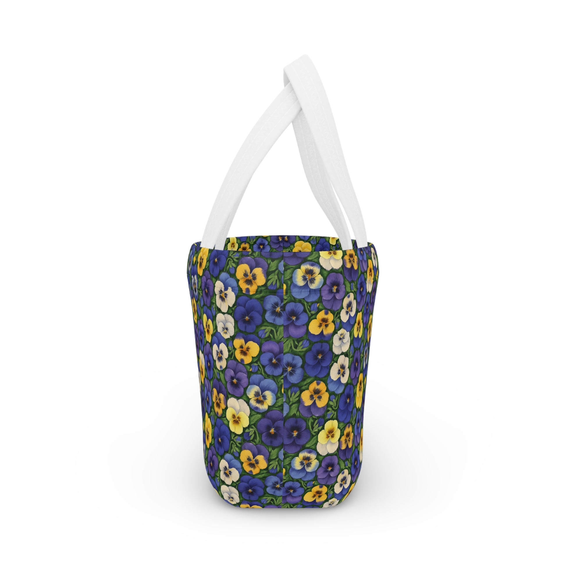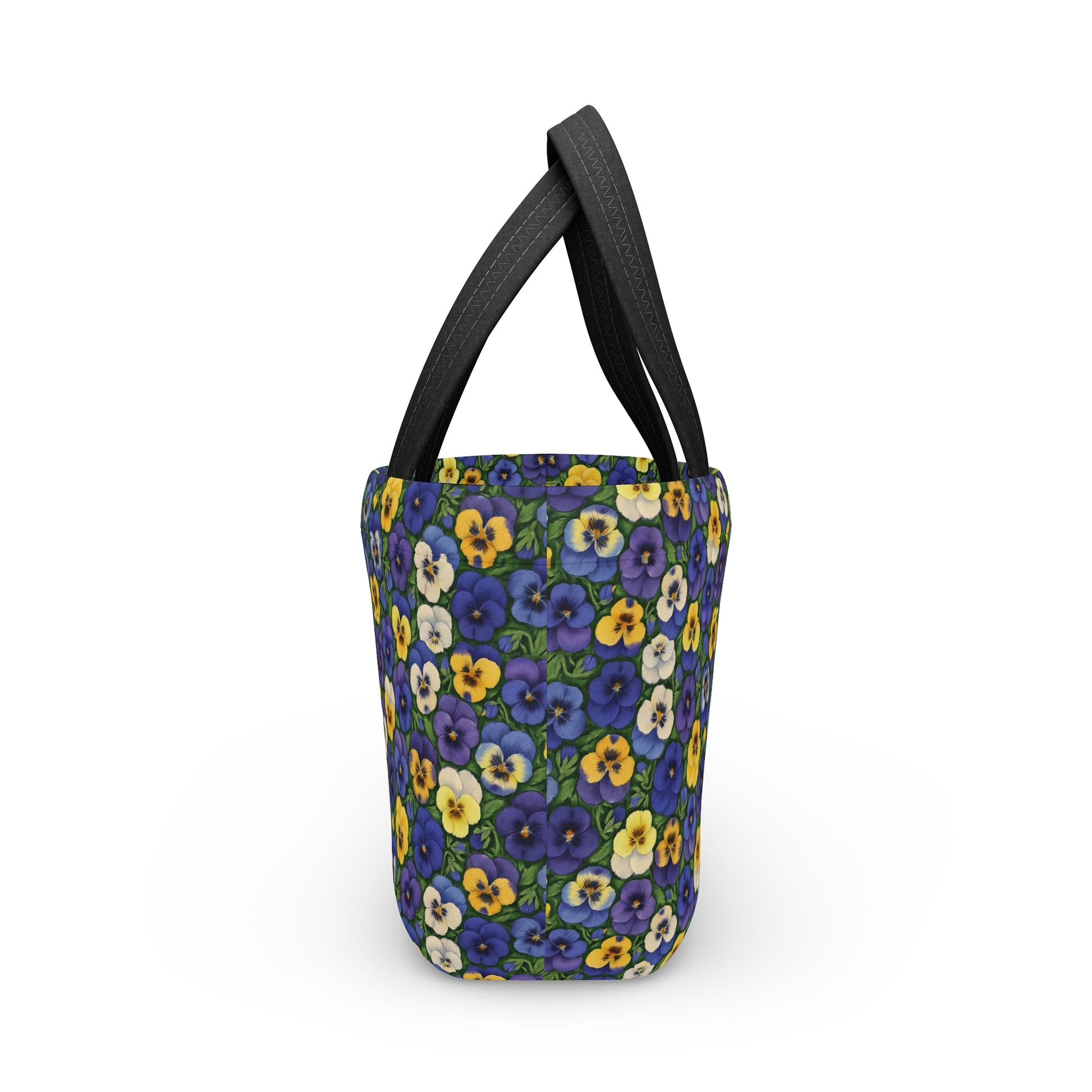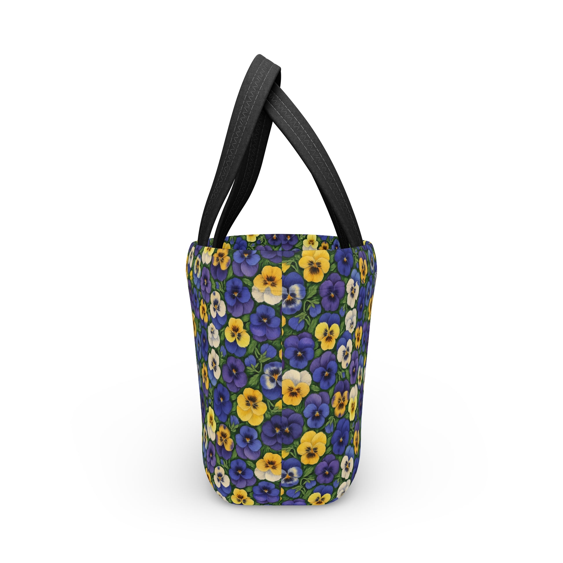 Stay stylish and organized with this vibrant and colorful pansy pattern lunch bag. Perfect for those who love floral designs and want to stand out during lunchtime. Great for students, office workers, and anyone who wants to add a pop of color to their daily routine. Ideal for back to school, office lunches, picnics, and everyday use.