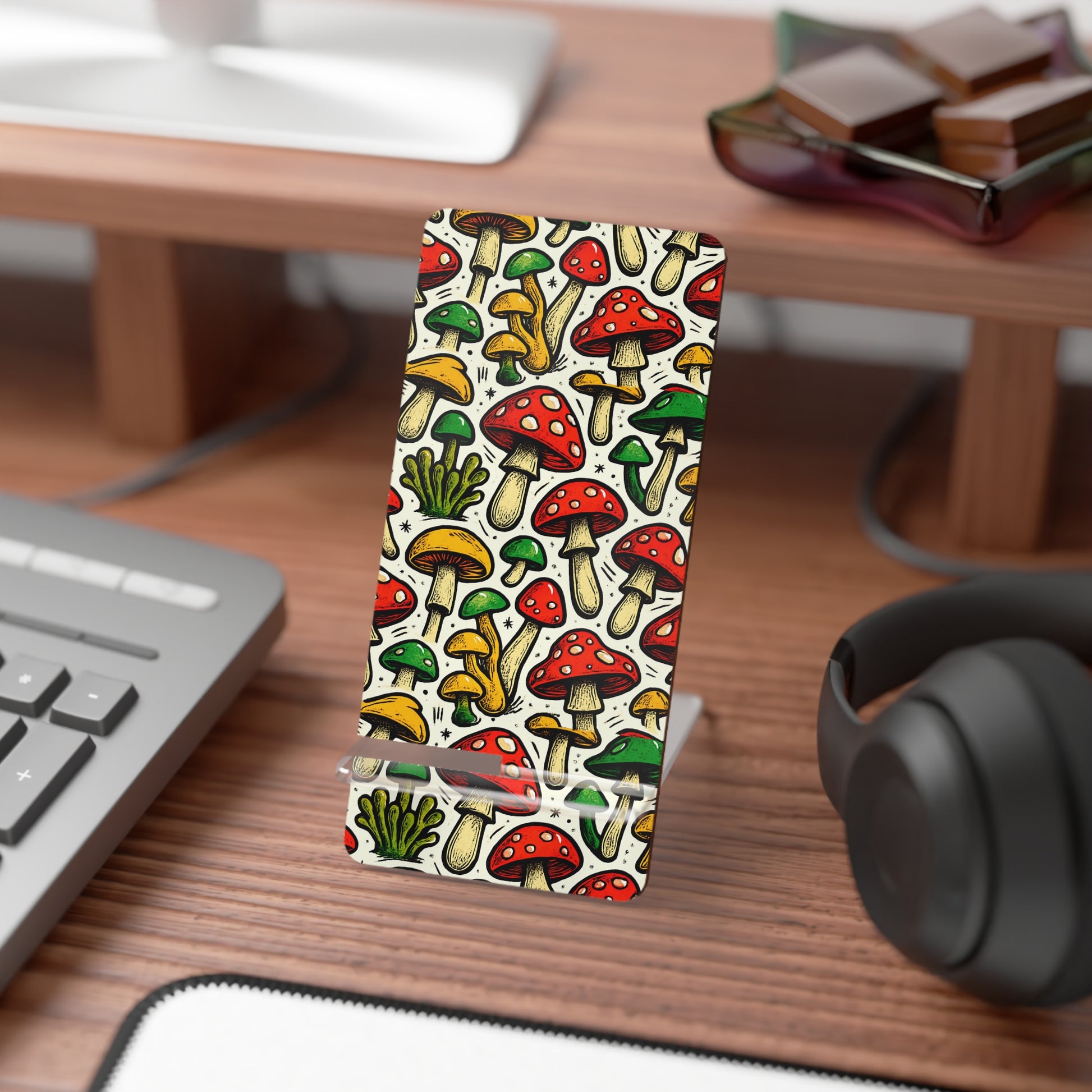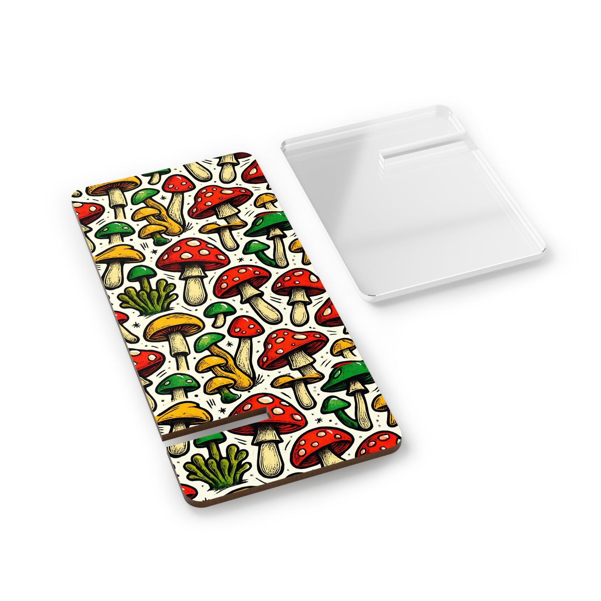 This stand features a design of mushrooms, giving off a whimsical and nature-inspired vibe. Perfect for those who love unique and colorful accessories for their desk or nightstand. Ideal for nature lovers and those who appreciate quirky designs. Relevant for Earth Day, nature-themed events, and those who want to add a touch of fun to their workspace.