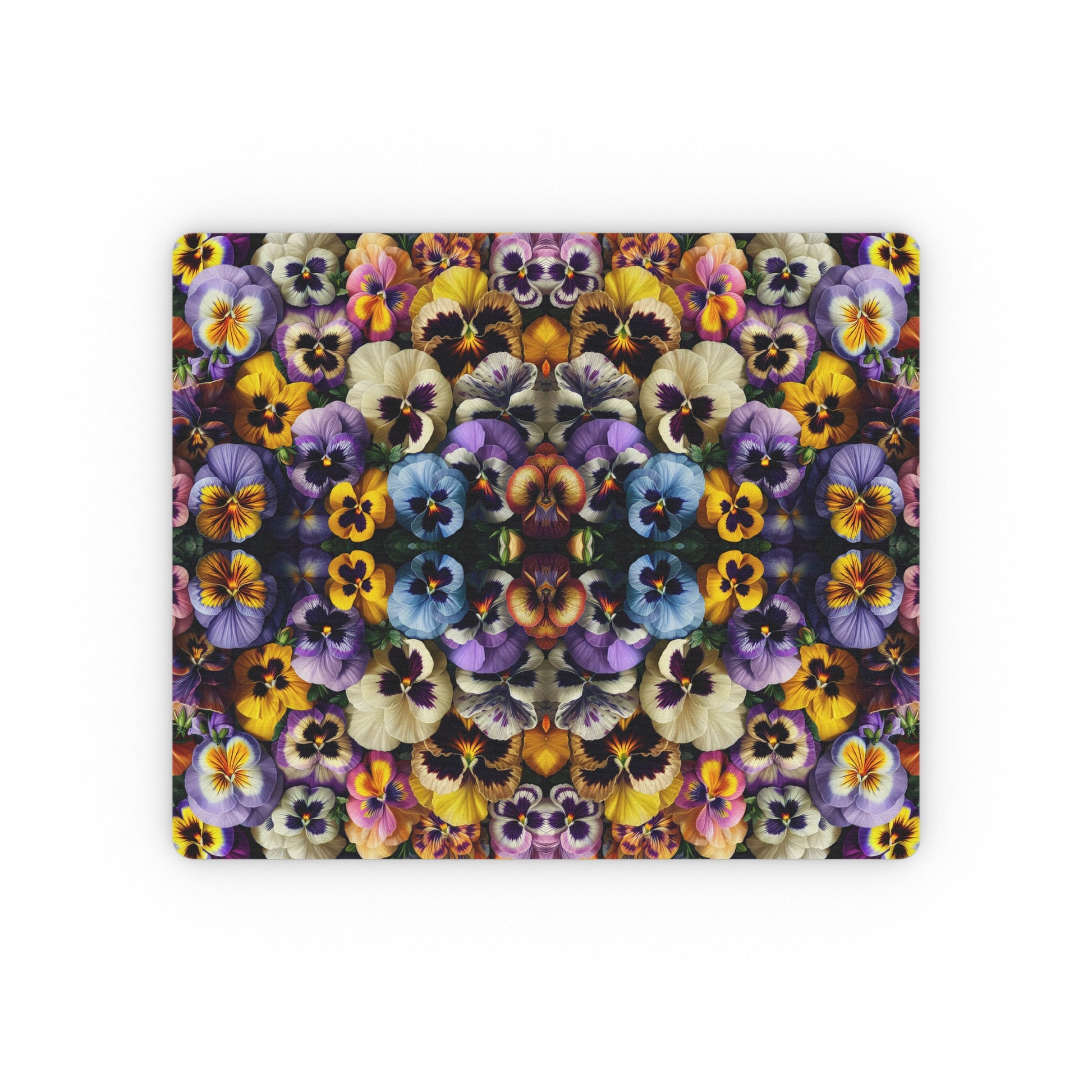 A vibrant rectangular mouse pad featuring beautiful pansy blooms, adding a touch of nature and color to your workspace. Perfect for flower enthusiasts and nature lovers, this mouse pad is ideal for brightening up your desk during the spring season.