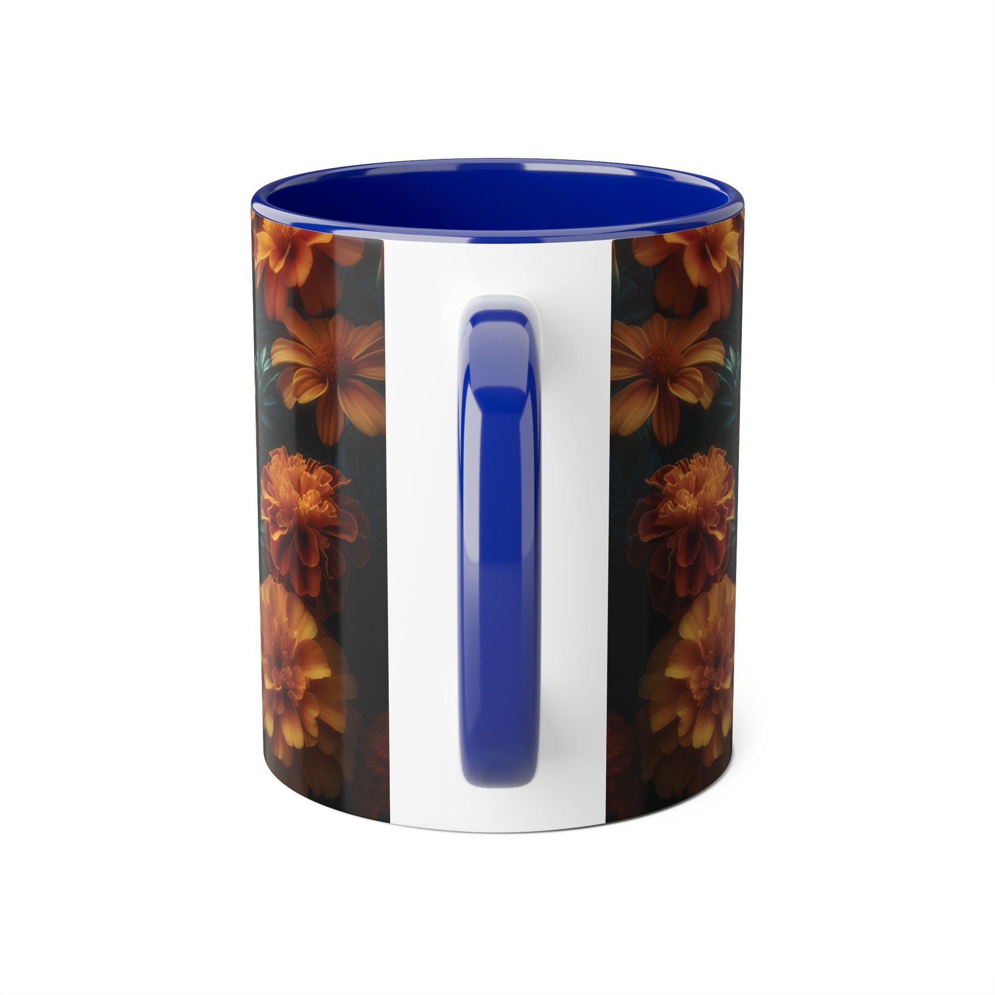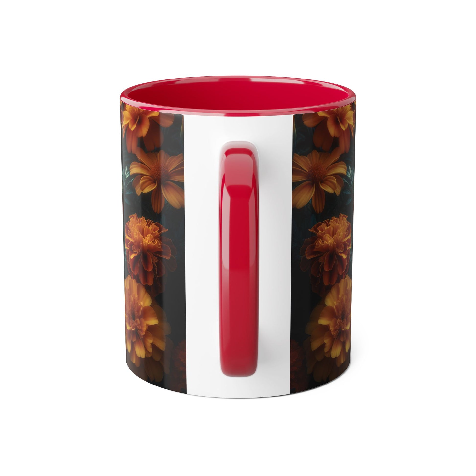 Orange Marigolds Accent Mug, Floral Coffee Cup, Botanical Tea Mug, Nature Lover Gift, Garden Theme Kitchen Decor