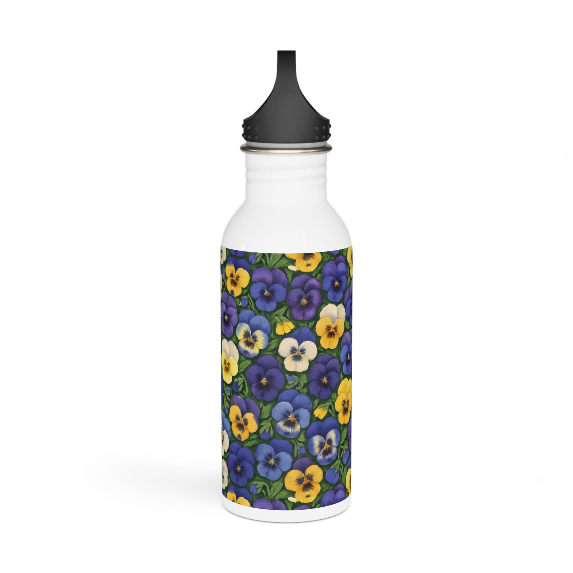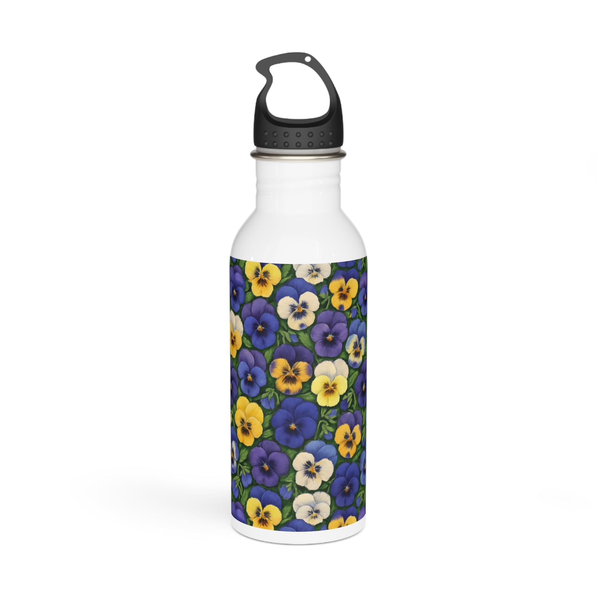 Pansy Stainless Steel Water Bottle, Floral Reusable Drinkware, Flower Patterned Thermos, Nature Lover Gift