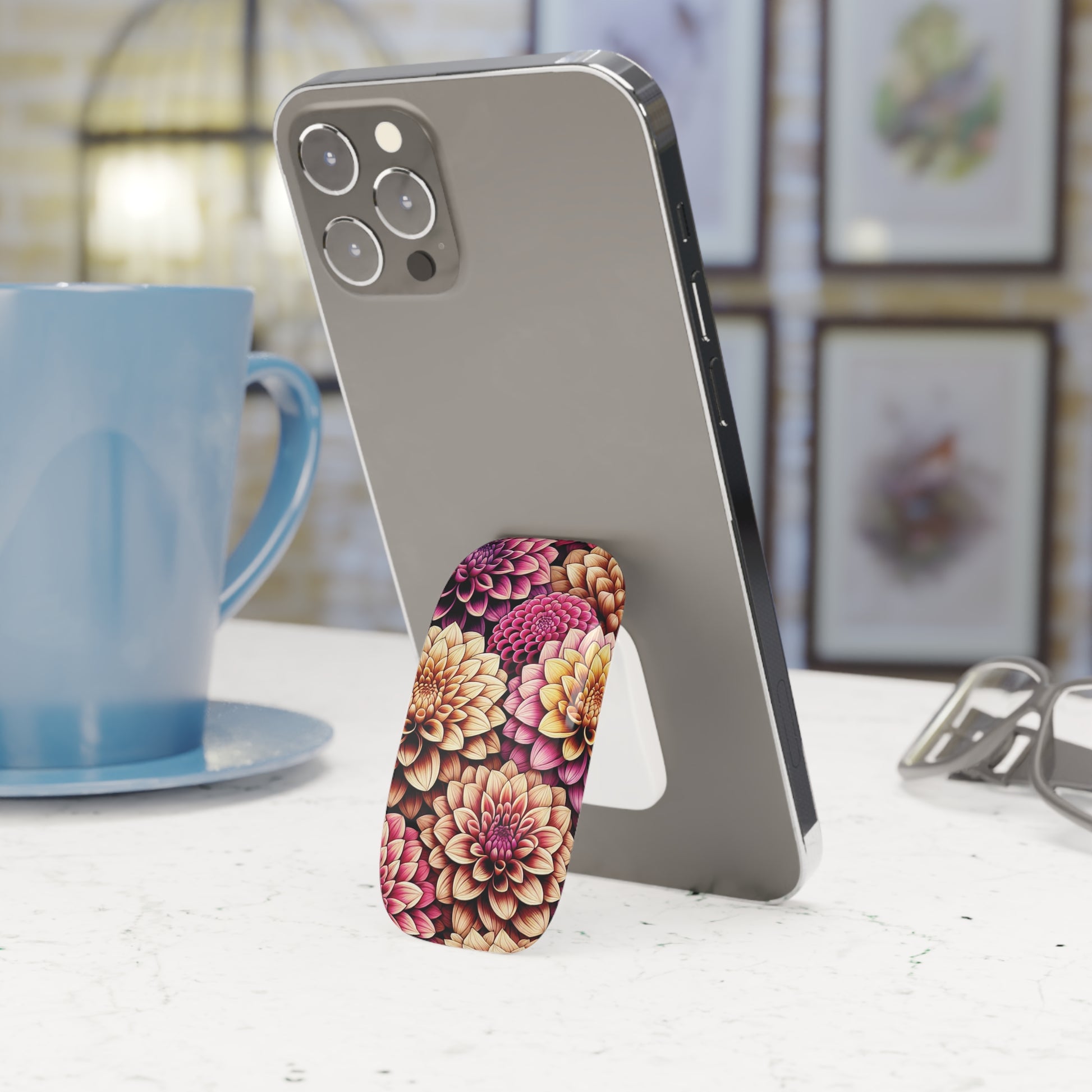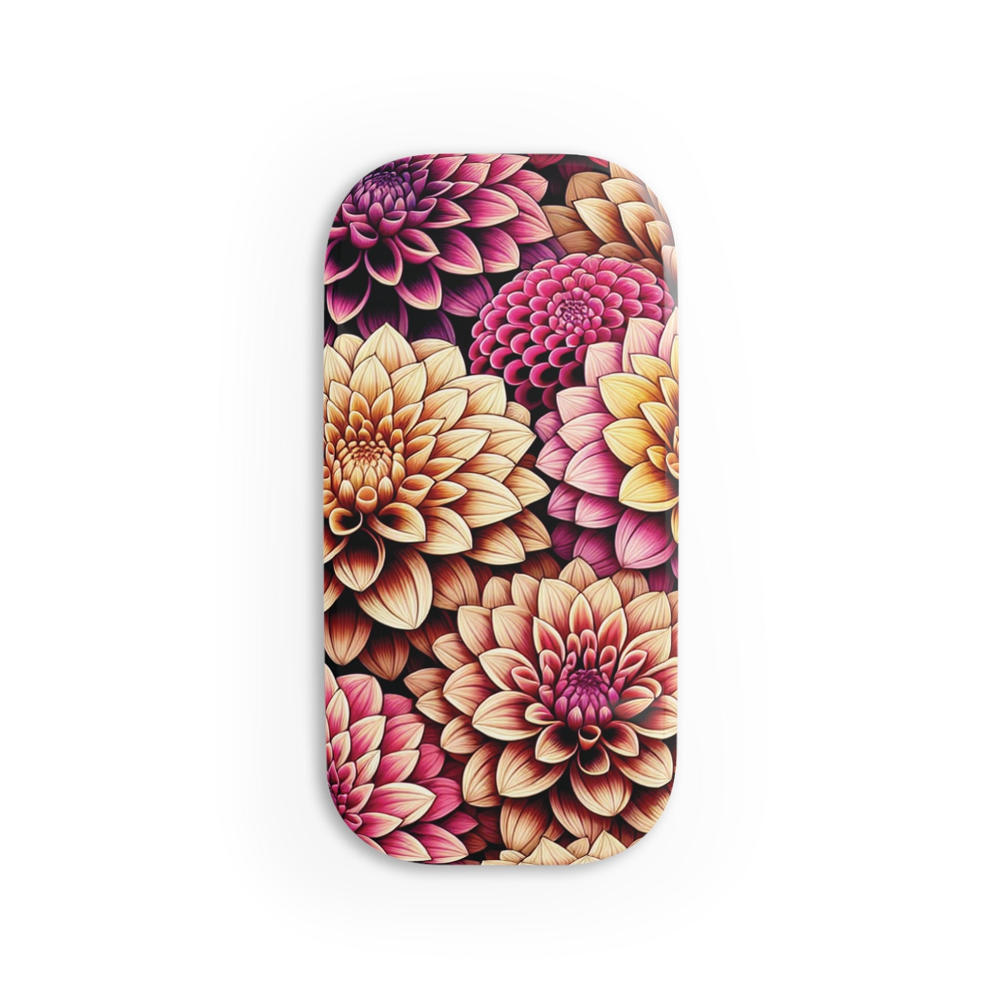 This Grip features a design of vibrant dahlia blooms, adding a touch of nature to your phone. It is stylish, comfortable, and versatile, serving as a mobile holder, kickstand, or phone rest. Perfect for adults looking to add a pop of color and functionality to their phone.