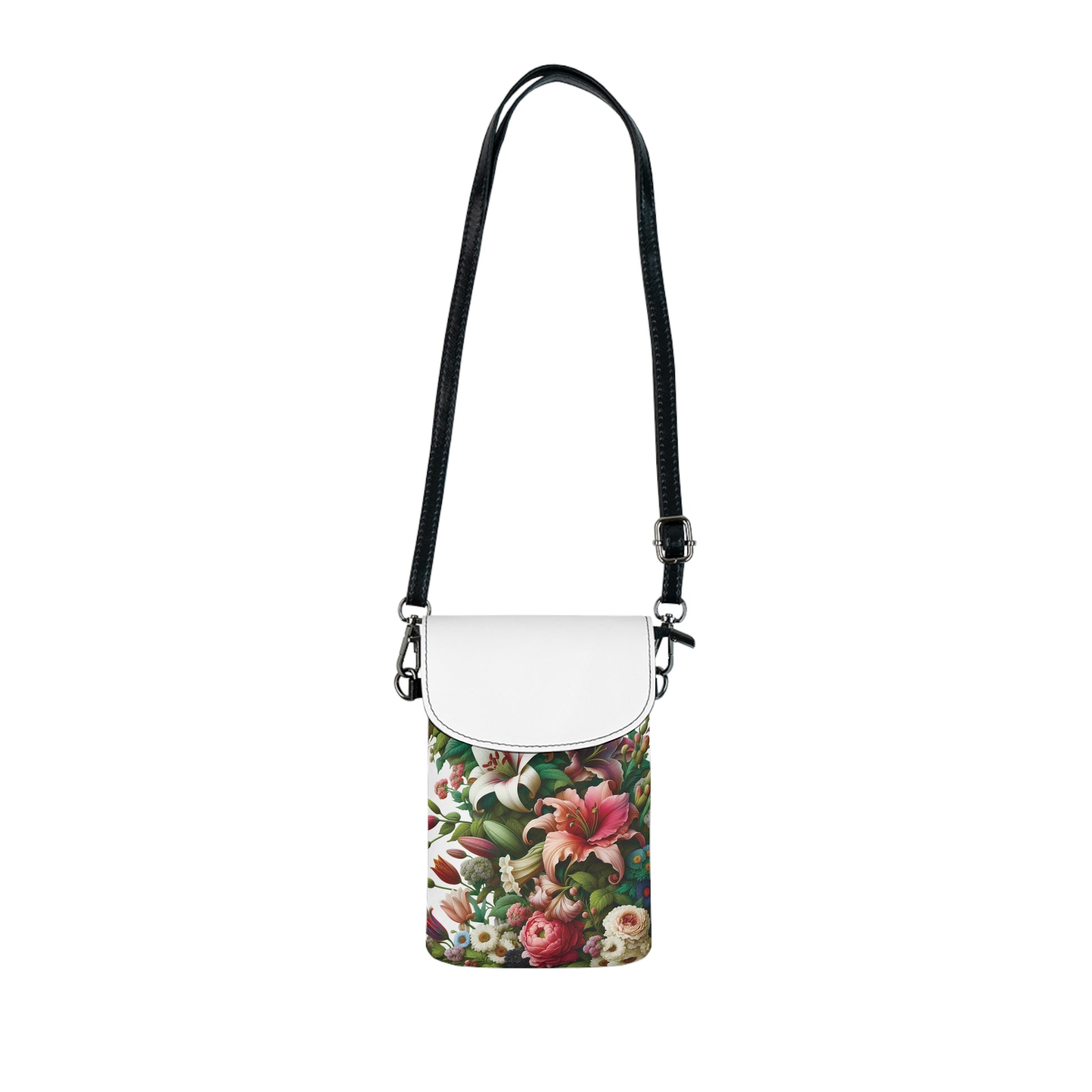 This small cell phone wallet features a lovely lilac floral pattern, making it perfect for the fashion-forward individual who loves a touch of nature in their accessories. The compact and lightweight design is ideal for carrying your phone and essentials on-the-go. It is relevant for spring and summer seasons, and can be a great gift for a trendy friend or family member.