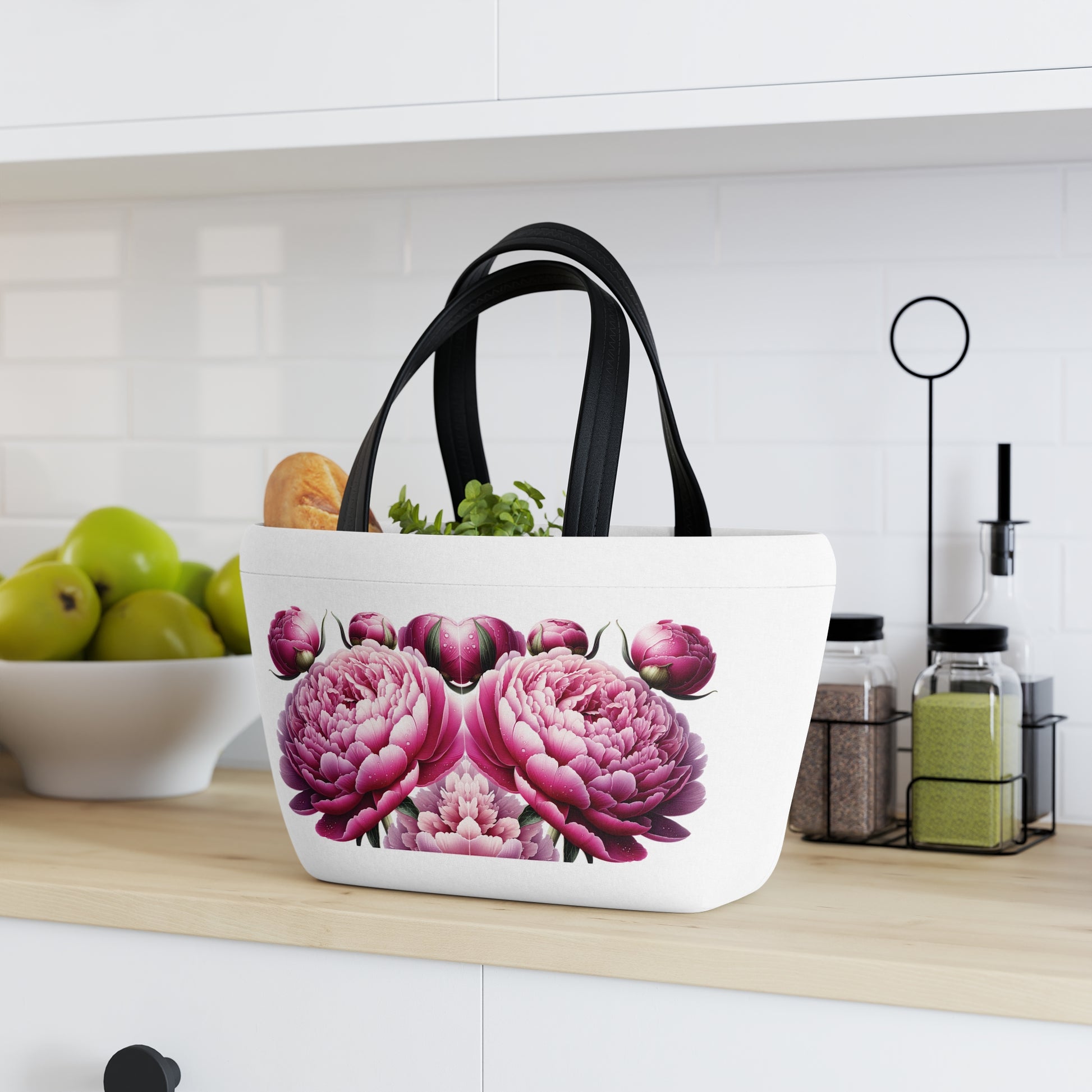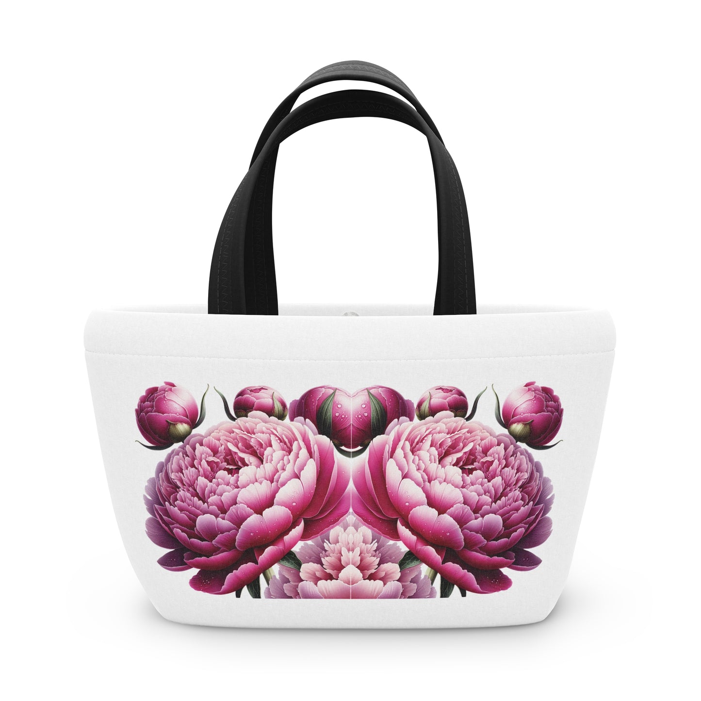 This vibrant Lunch Bag with pink peonies design is the perfect accessory for those who love floral patterns. The spacious interior allows you to pack all your favorite snacks and meals for a day out. The magnetic button closure ensures your items stay secure, and the durable carrying handles make it easy to take with you wherever you go. Ideal for flower lovers and nature enthusiasts, this Lunch Bag is a great addition to picnics, work lunches, and everyday outings.
