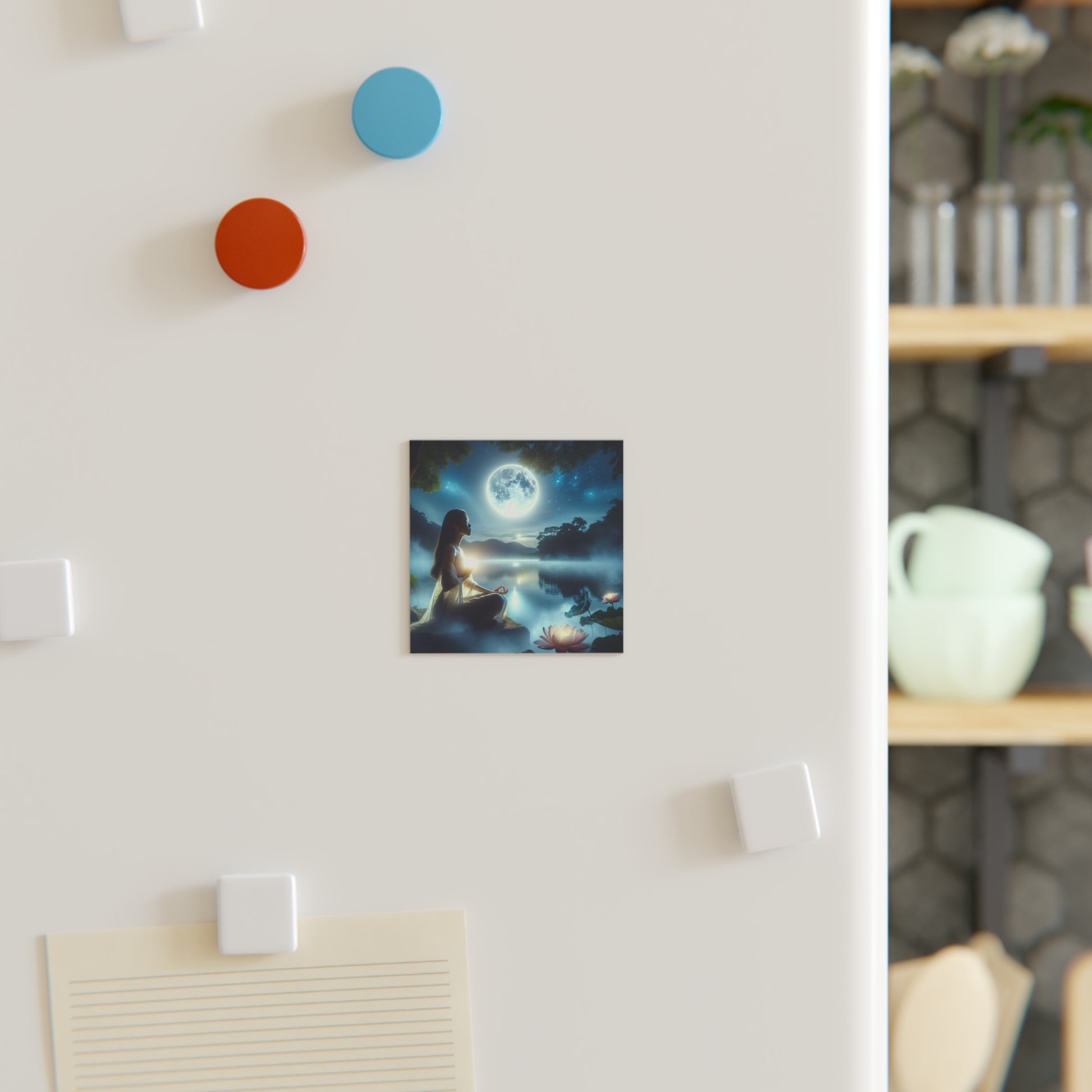 A serene moonlight square magnet that adds a touch of tranquility to your fridge or car. Perfect for nature lovers and those who enjoy peaceful vibes. Ideal for gifting during Christmas or as a birthday present.