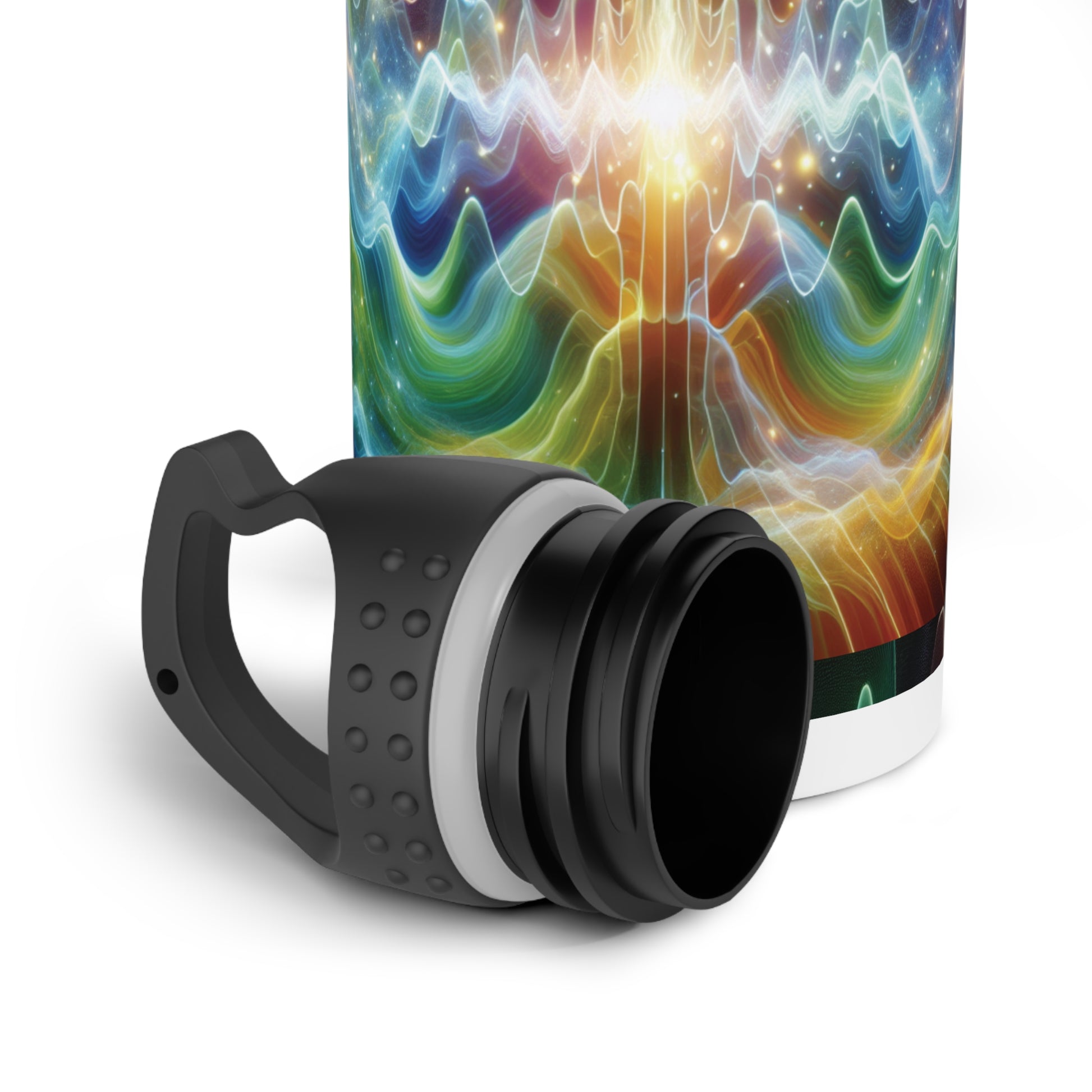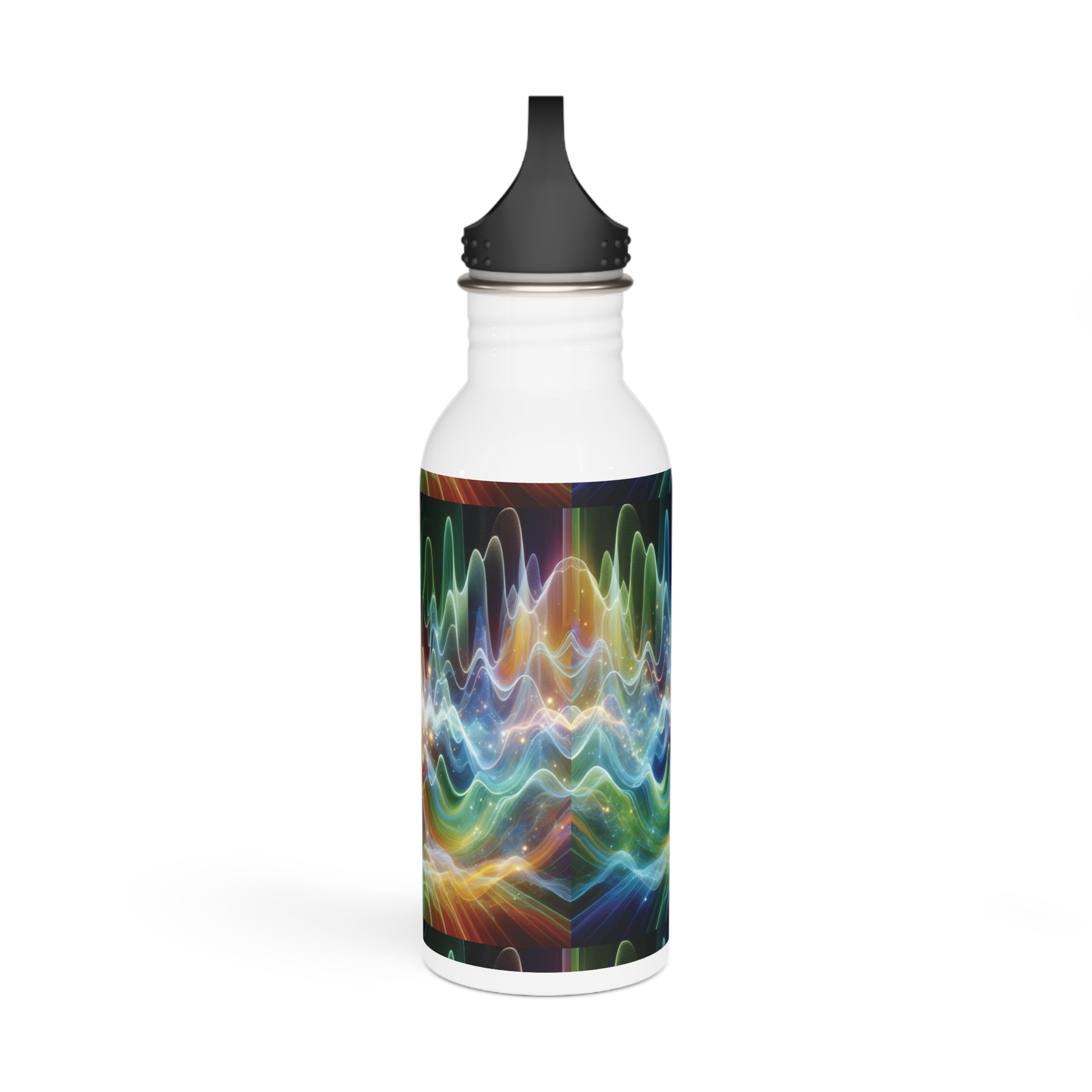 This stainless steel water bottle features a design of frequency waves, giving off a modern and energetic vibe. Perfect for those who enjoy vibrant and colorful accessories, this water bottle is great for staying hydrated on the go. Ideal for anyone looking for a unique and stylish water bottle to use during workouts, hikes, or daily activities. Relevant for Earth Day, fitness enthusiasts, and nature lovers.