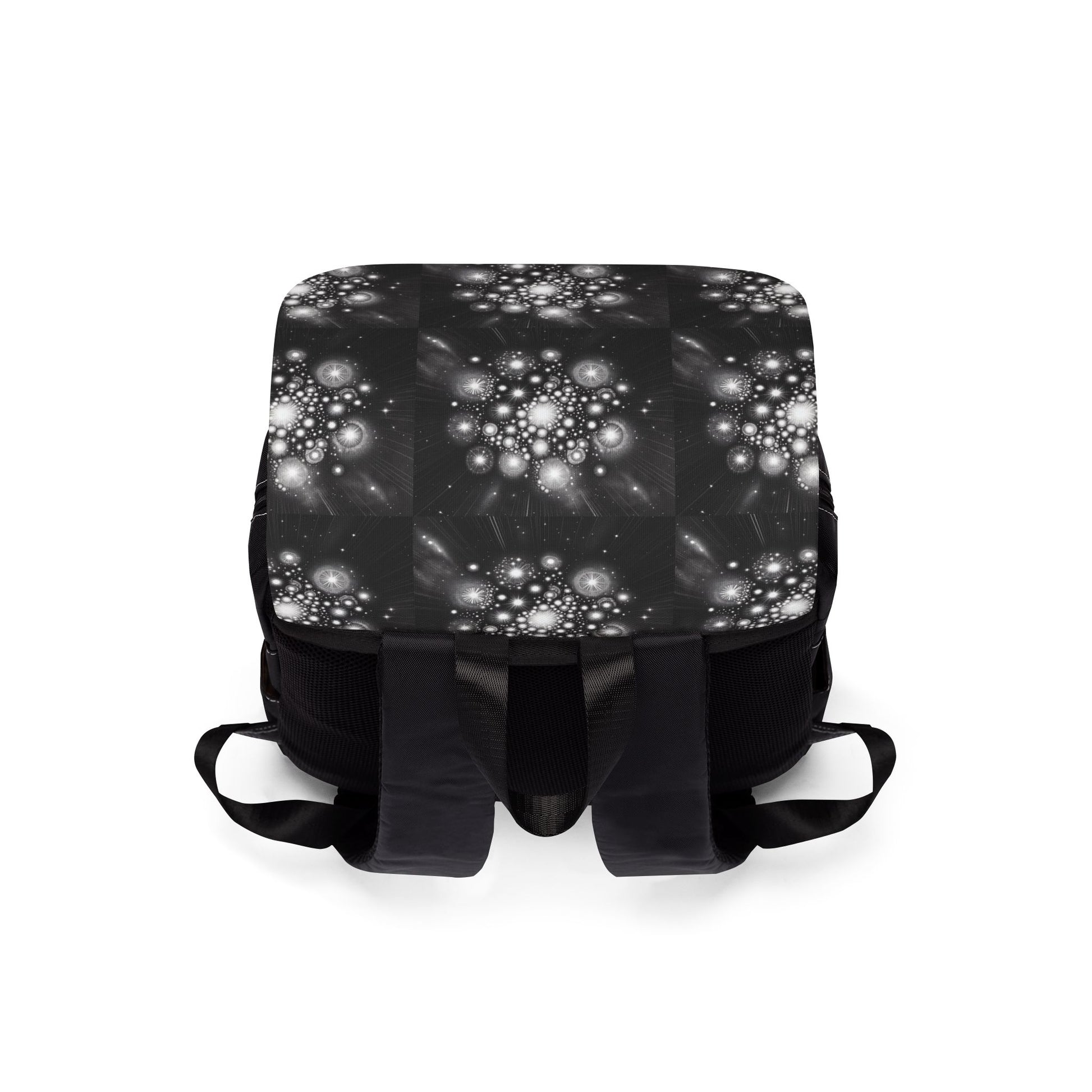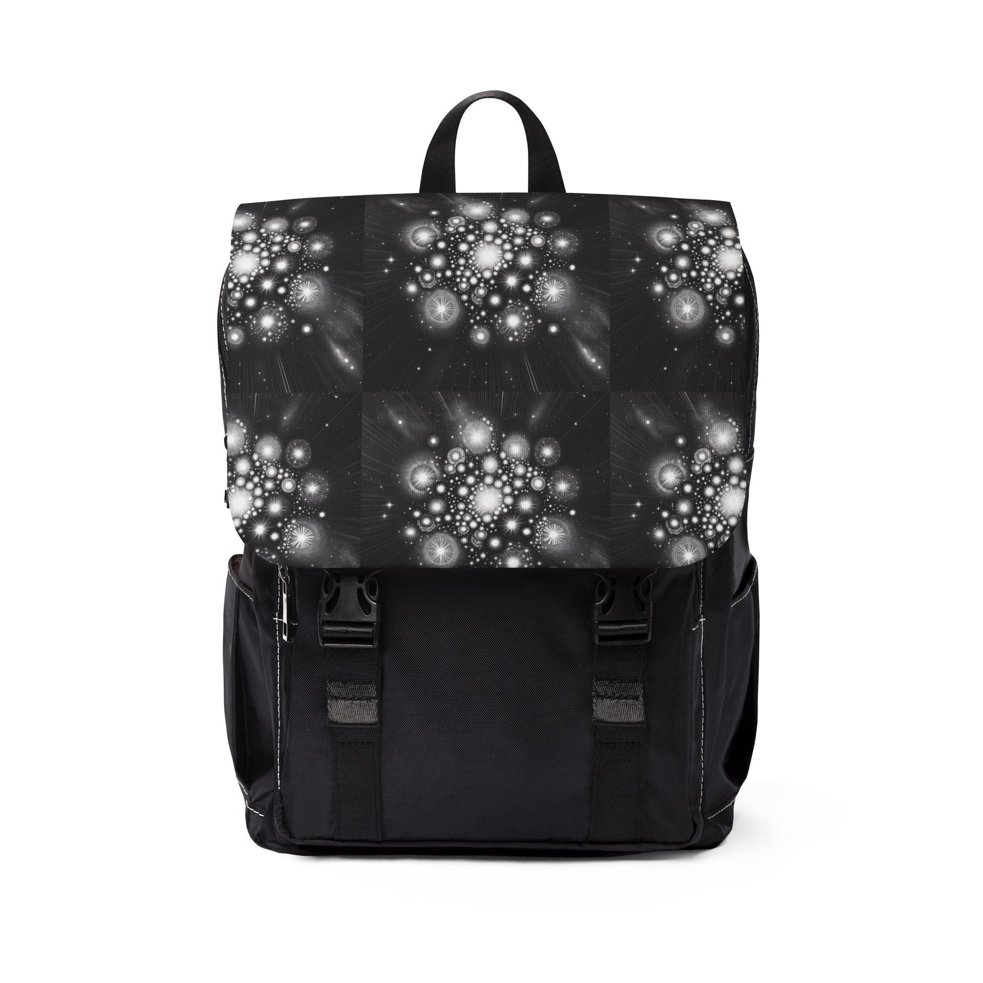 A stylish unisex casual shoulder backpack featuring a star cluster design. Made of premium lightweight tear resistant Oxford fabric, this backpack is super comfortable with padded back and adjustable shoulder straps. It has multiple compartments for easy organization. Perfect for those who love star gazing and astronomy. Ideal for students, travelers, and nature enthusiasts. Great for back to school, camping trips, and outdoor adventures.