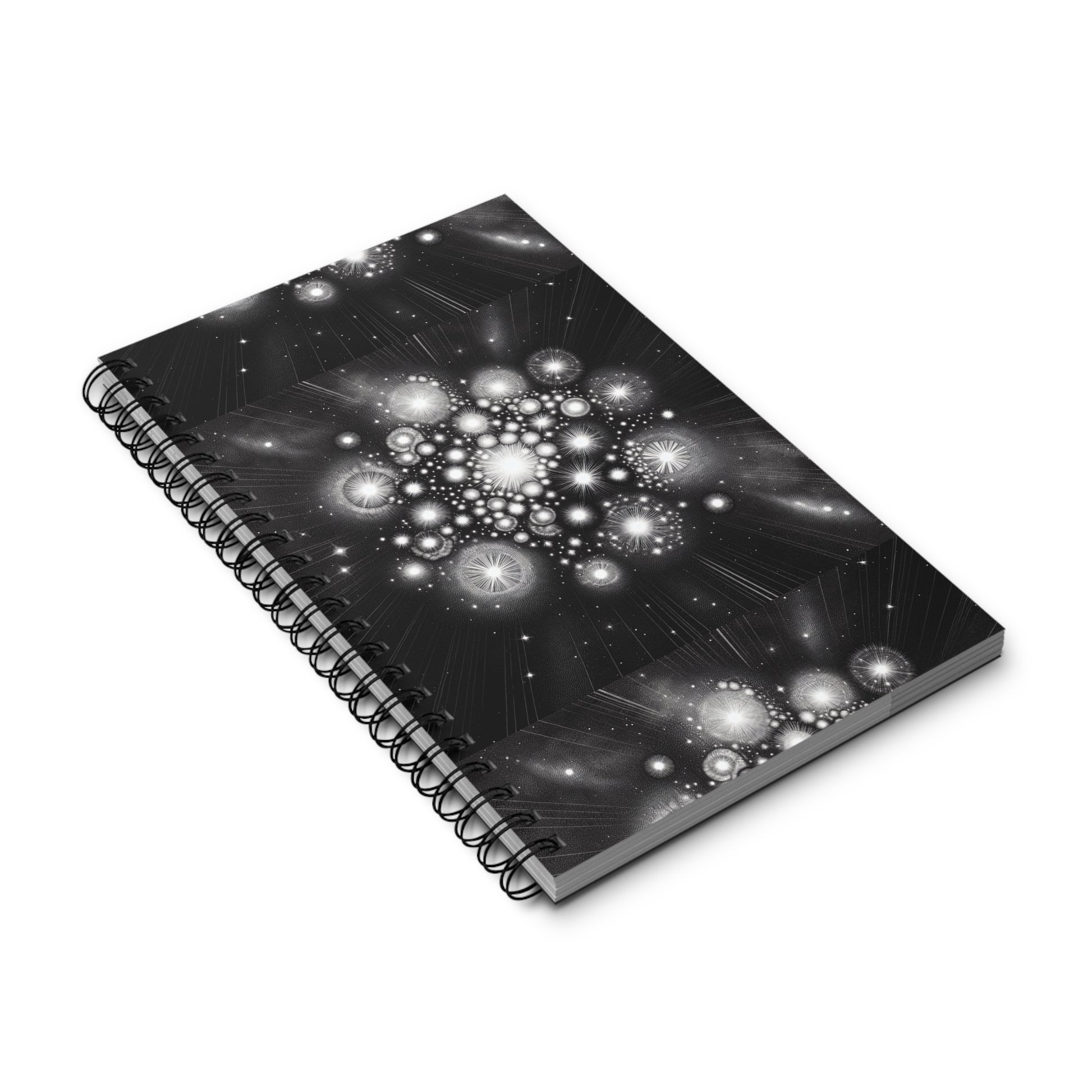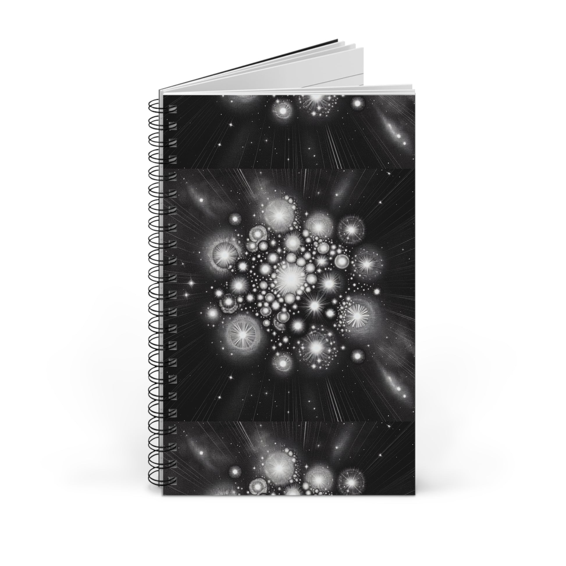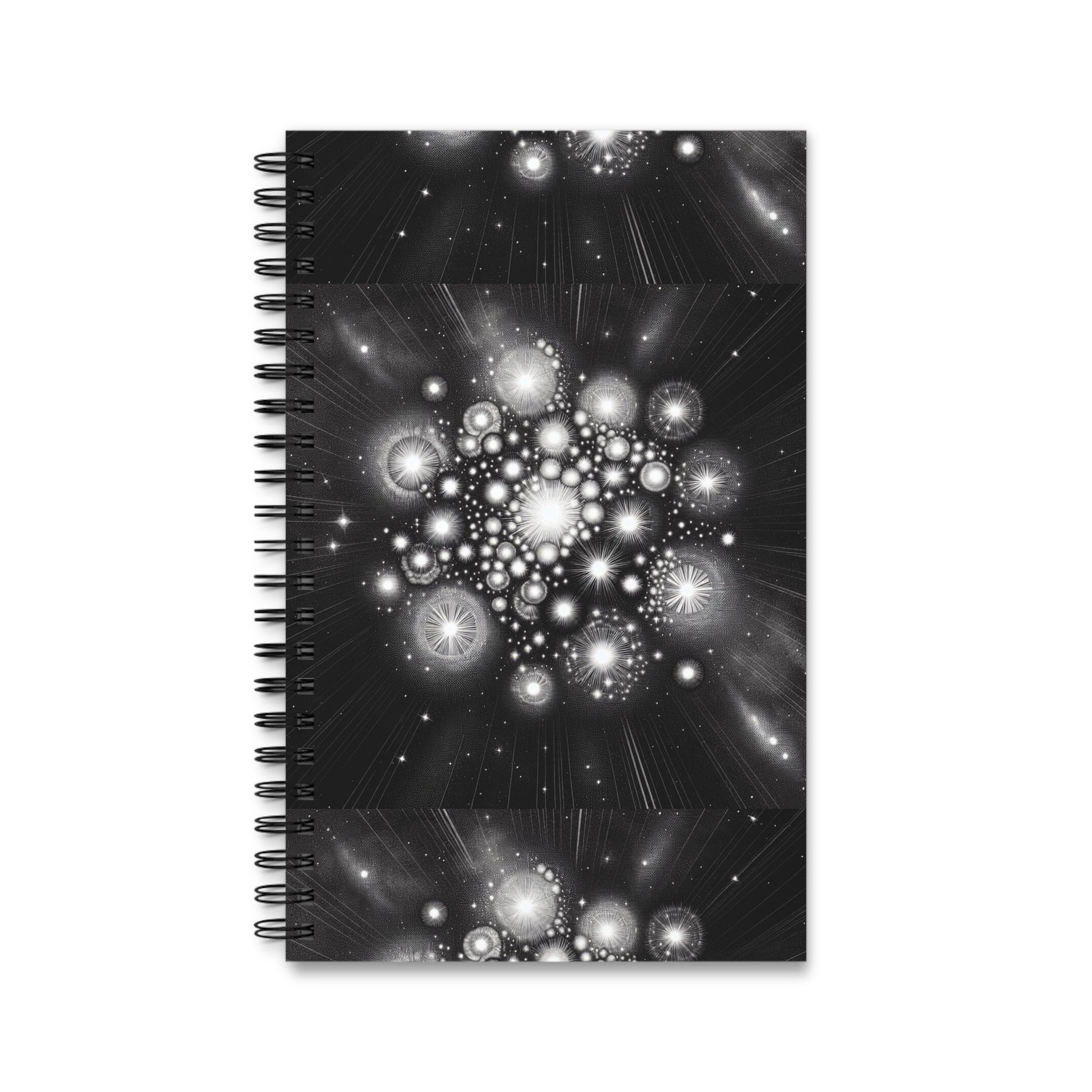 A spiral journal featuring a star cluster design, perfect for stargazers and dreamers. This journal is great for keeping track of thoughts and ideas, and can be a wonderful gift for writers and artists. Ideal for those who love astronomy and astrology.