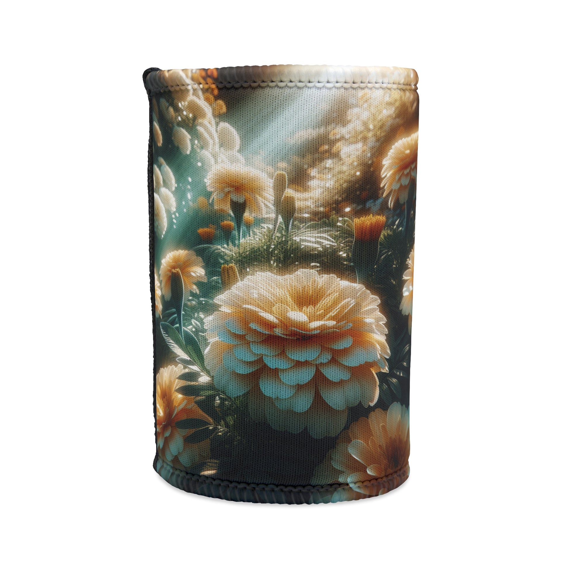 Stubby Cooler - Vanilla Marigolds Design, Floral Drink Holder, Beer Can Sleeve, Beverage Insulator, Summer Party Gift