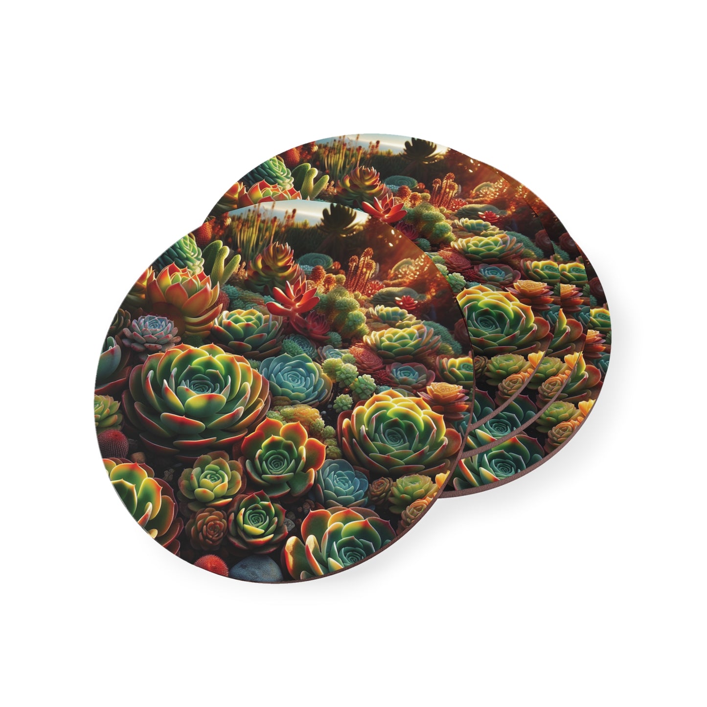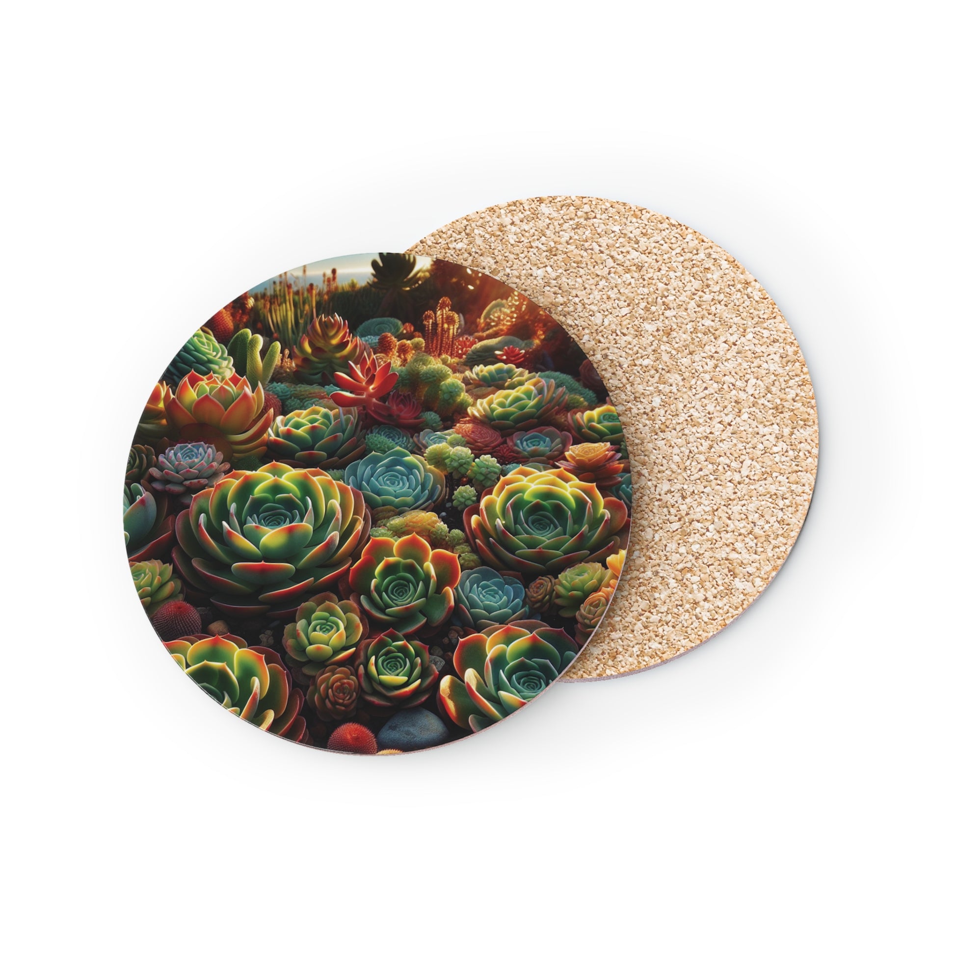 A set of vibrant succulent cluster coasters, perfect for adding a touch of nature to your home decor. These coasters provide a colorful and cheerful vibe, ideal for plant lovers and those who appreciate botanical designs. Suitable for use during housewarming parties, garden gatherings, and nature-inspired celebrations.