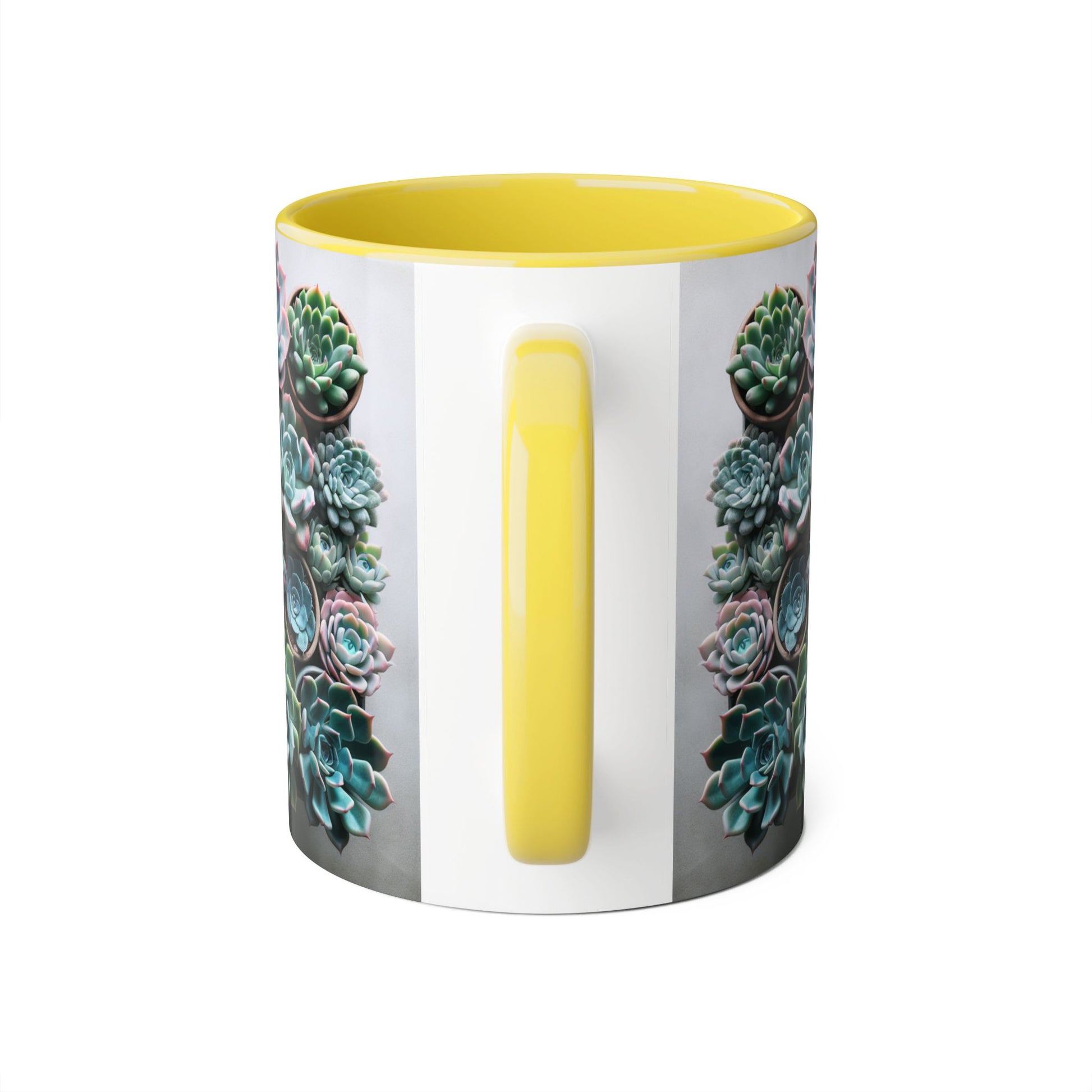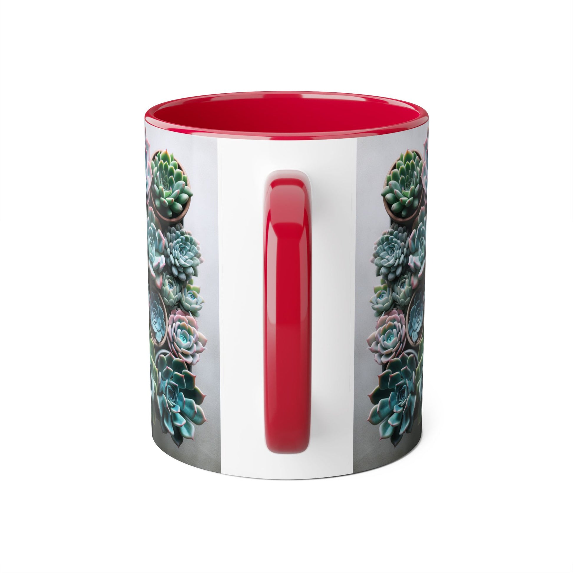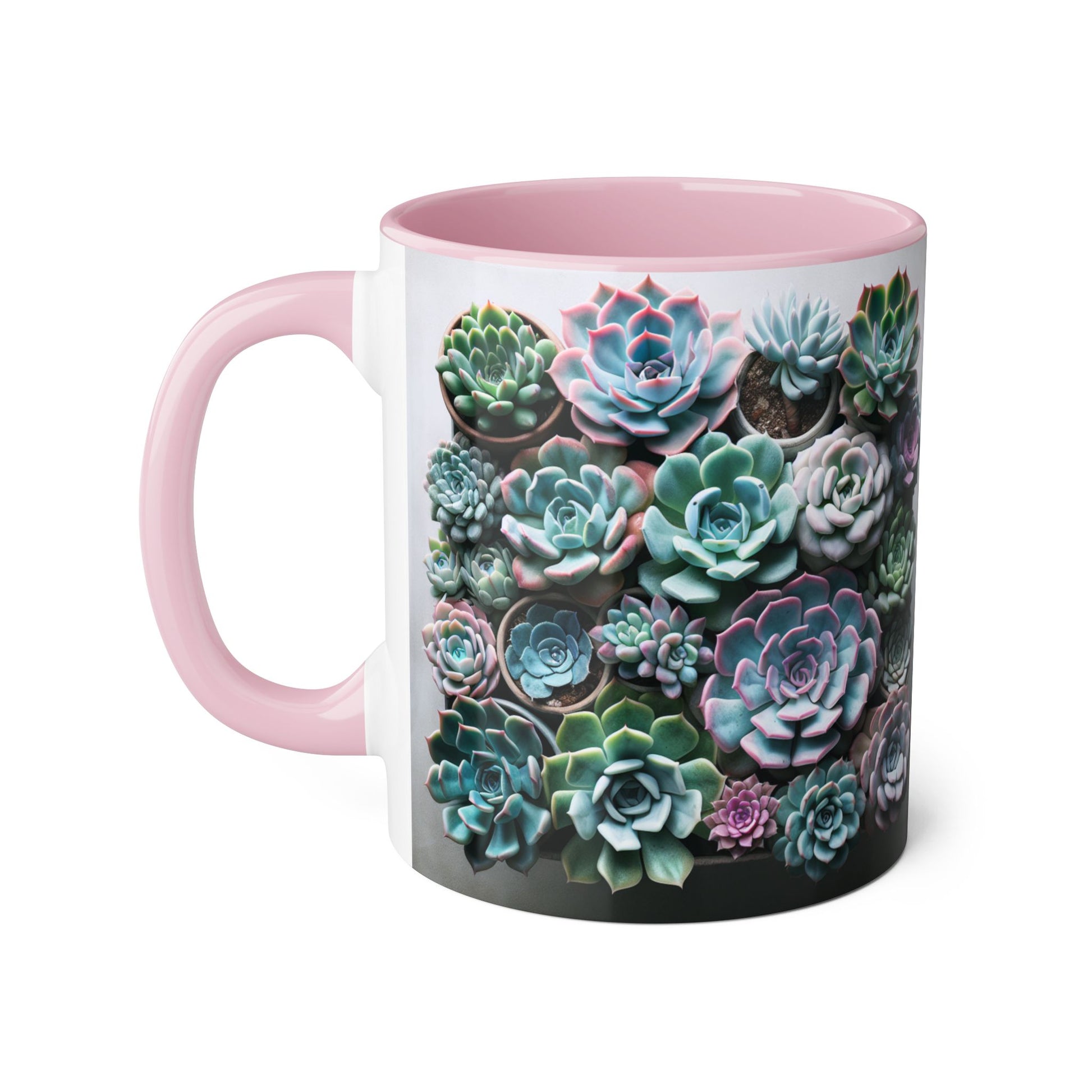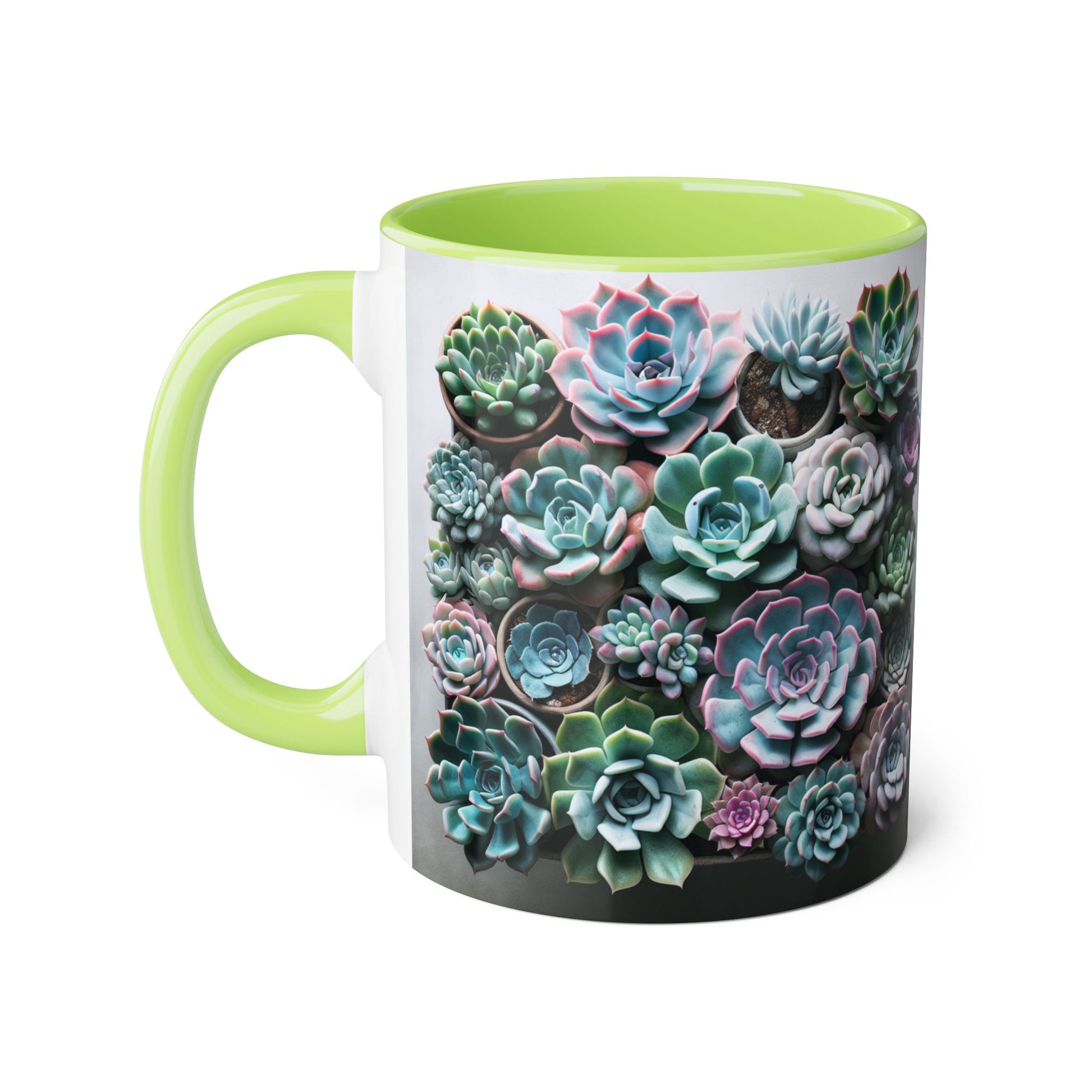 Succulent Garden Accent Mug, 11oz Succulent Coffee Mug, Floral Drinkware, Plant Lover Gift, Unique Home Decor