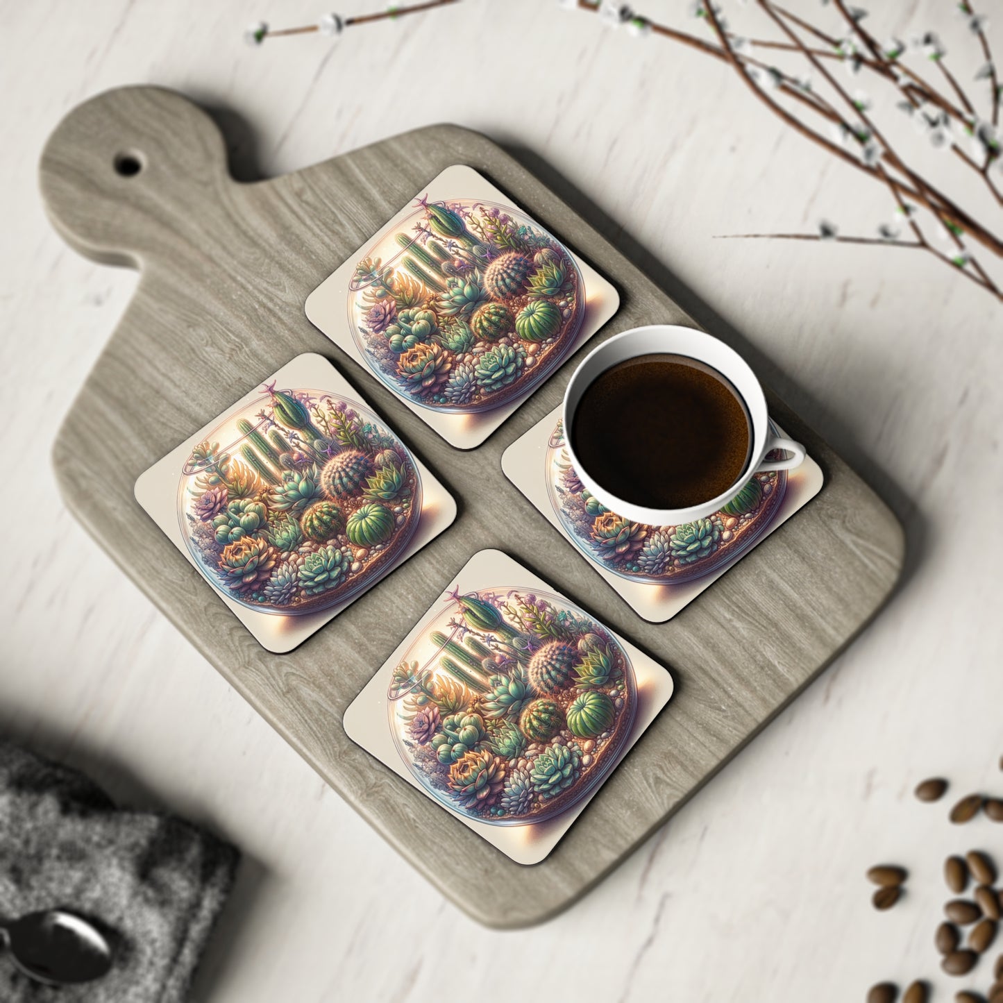 Succulent Terrarium Coasters - Coasters Set, Drink Coasters, Home Decor, Table Coasters