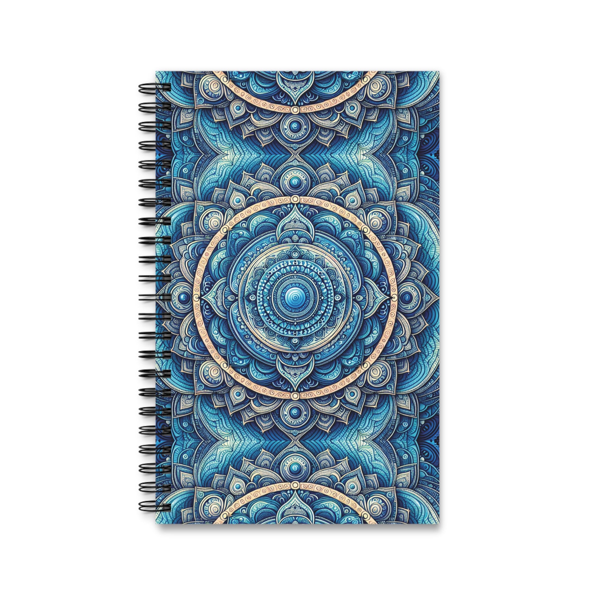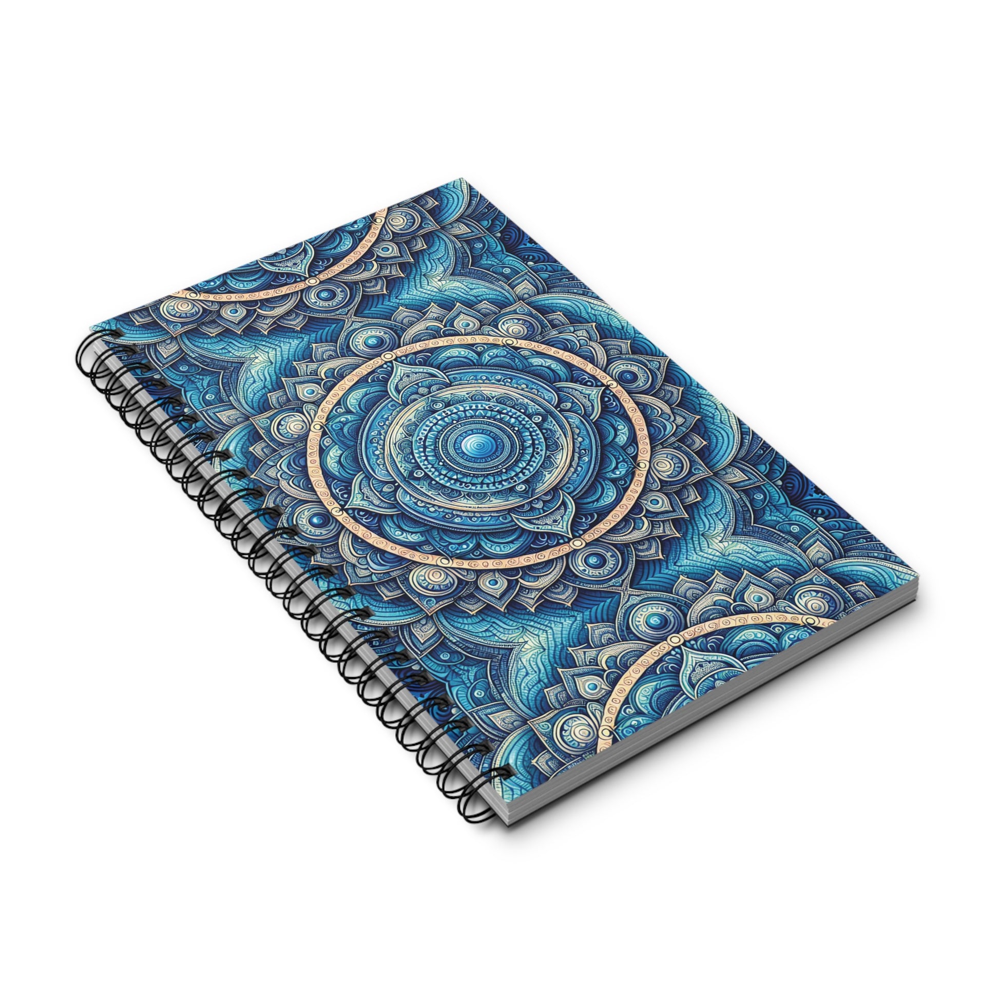 Throat Chakra Spiral Journal, Mandala Design, Blue Notebook for Writing, Meditation Diary, Art Sketchbook, Gift for Students