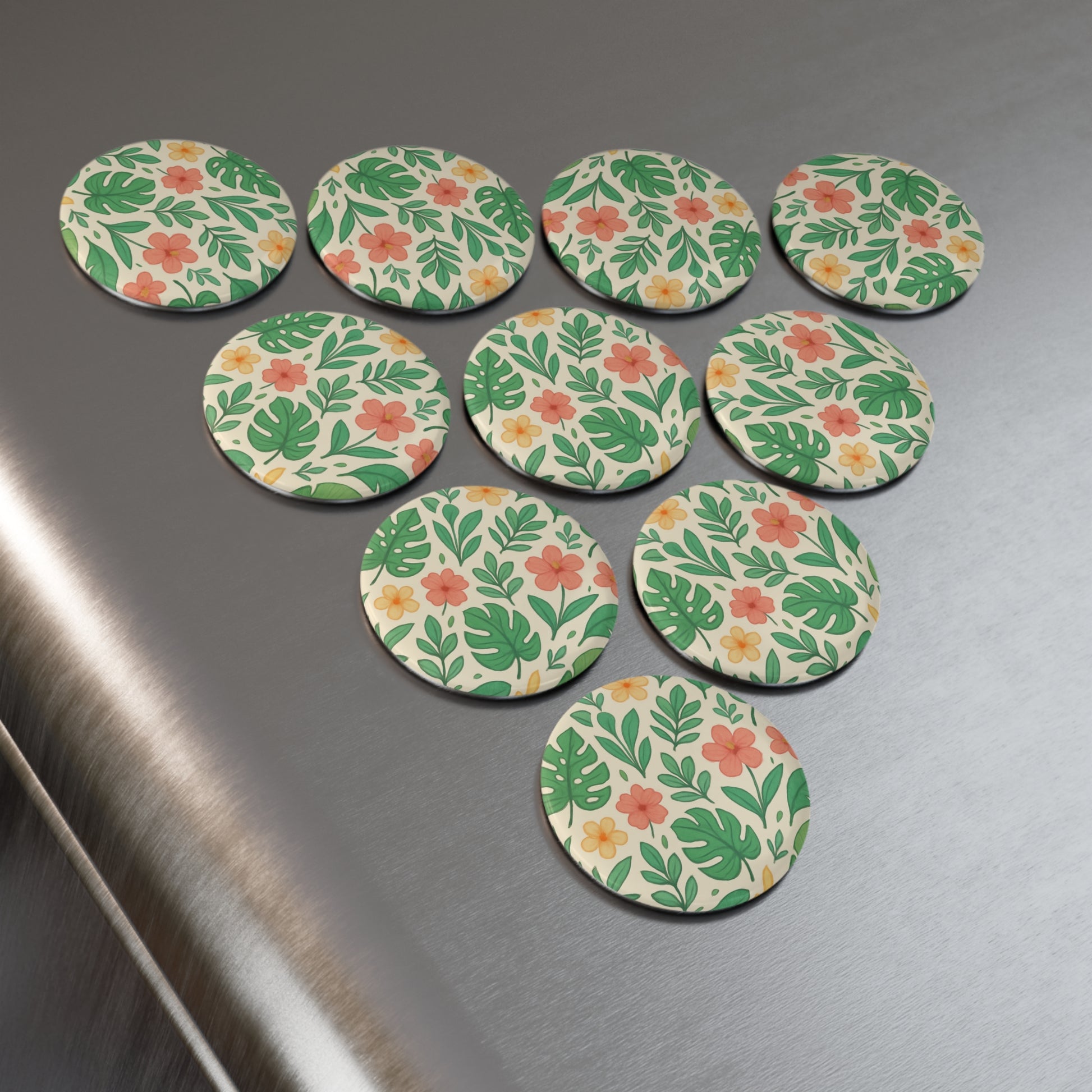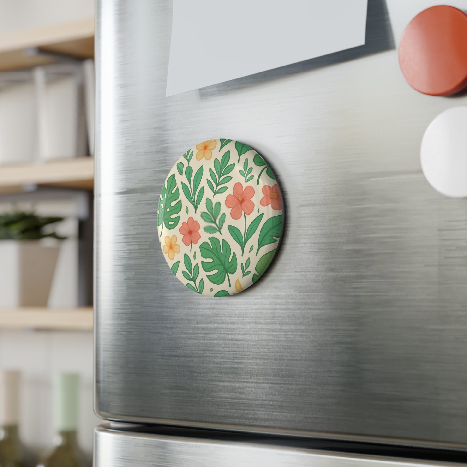 Tropical Floral Button Magnet, Round (1 & 10 pcs), Fridge Decor, Cute Kitchen Accessories, Gift for Her, Floral Print Magnet, Refrigerator