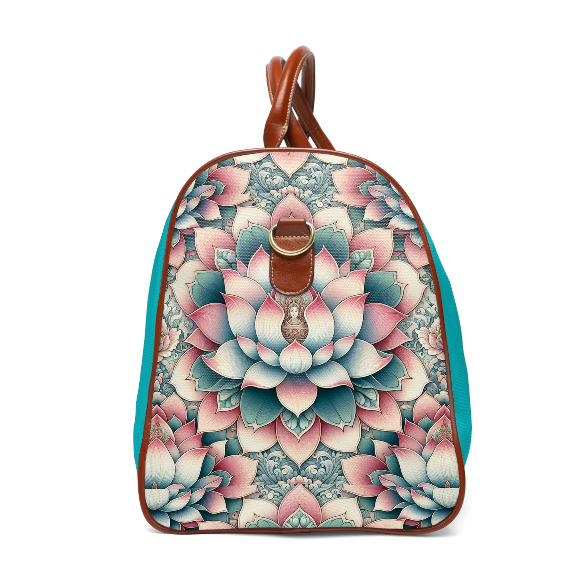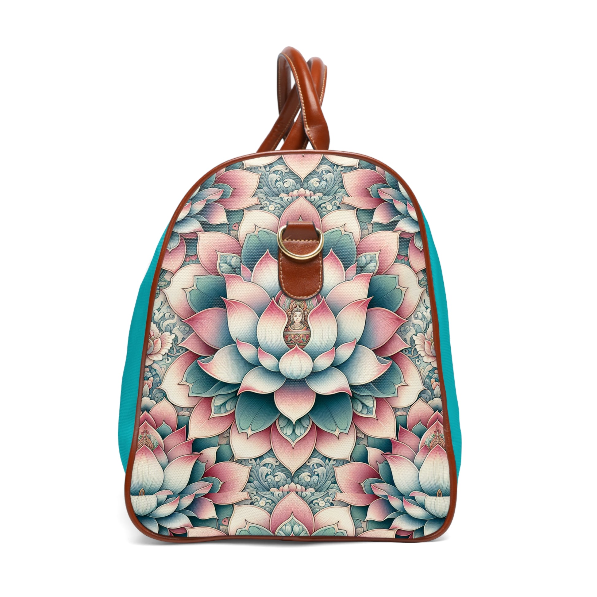 This waterproof travel bag features a beautiful lotus flower design, perfect for nature lovers and travelers. With vibrant colors and high-grade nylon material, this bag is durable, lightweight, and stylish. Ideal for those who love to explore and need a reliable bag for all their adventures. Perfect for holidays, vacations, and weekend getaways.