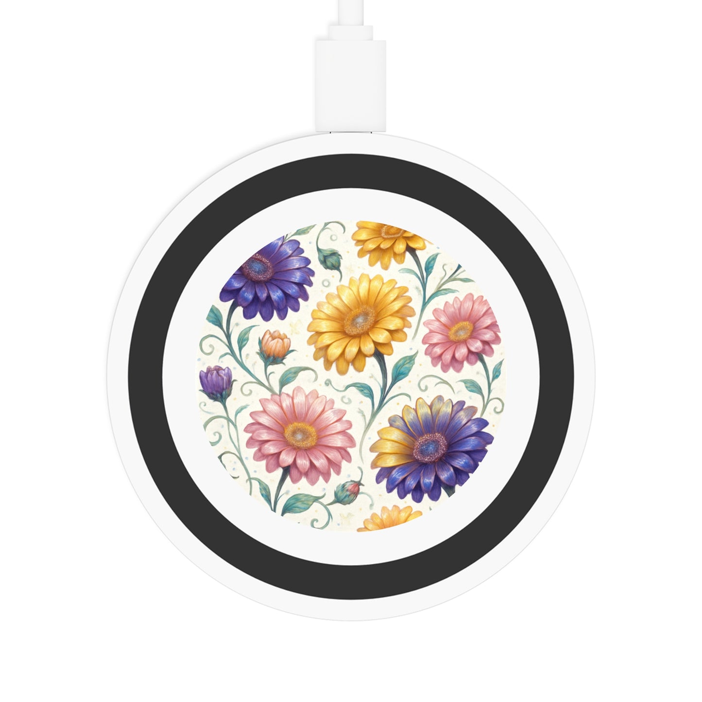 The Charging Pad features a vibrant gerbera bloom design, adding a touch of nature to your workspace. Lightweight and portable, it is perfect for on-the-go charging. Compatible with various smartphone models, it supports 5W wireless charging and comes with a USB cable included. Ideal for tech-savvy individuals looking to add a pop of color to their everyday life.