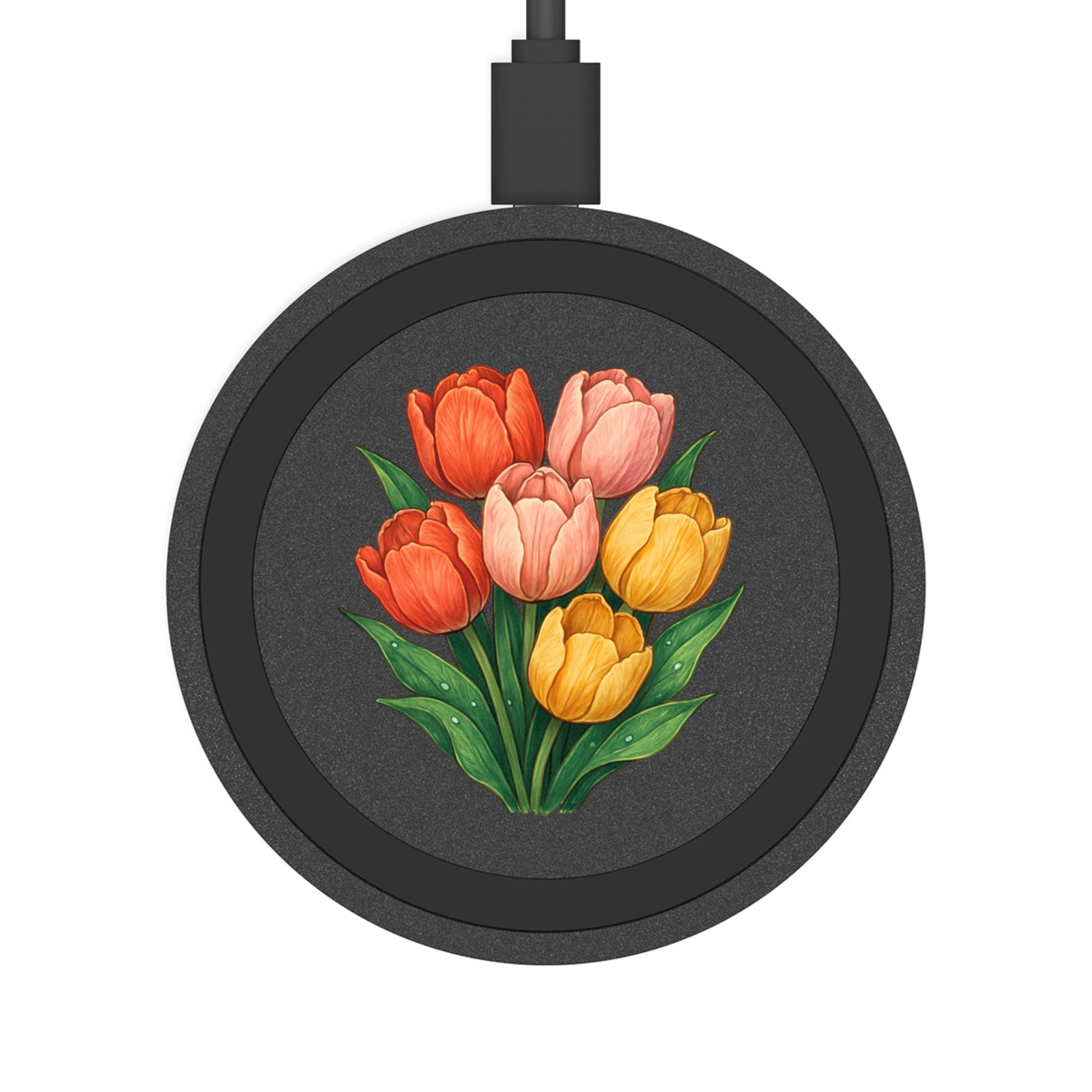 This Charging Pad features a beautiful design of a tulip bundle, adding a touch of nature to your workspace. It is perfect for tech-savvy individuals who appreciate both functionality and aesthetics. Ideal for birthdays, holidays, or any special occasion.