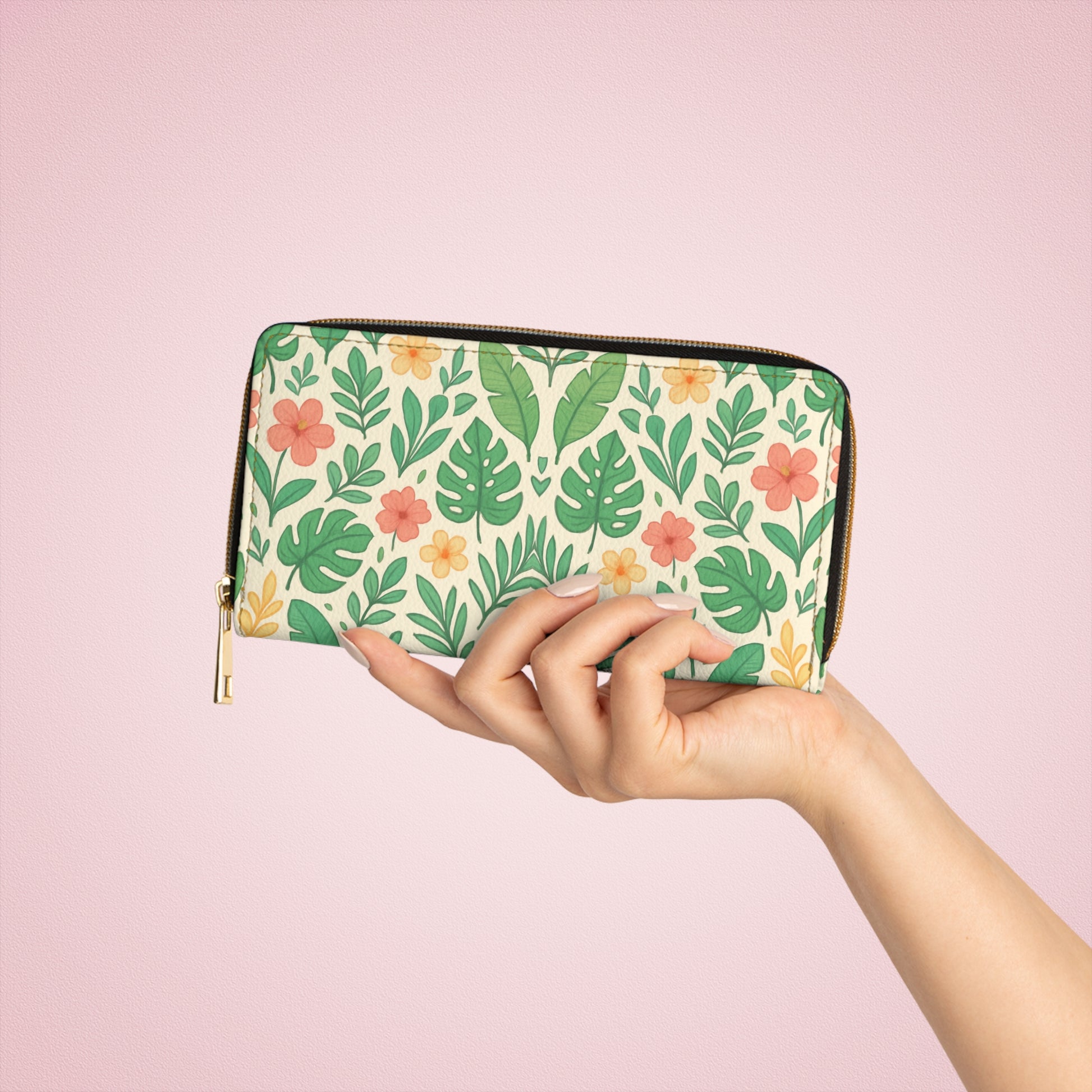 A Zipper Wallet with a vibrant tropical pattern design, perfect for adding a pop of color and fun to your everyday essentials. This wallet is ideal for those who enjoy tropical vibes and want to carry a piece of paradise with them. Great for vacations, summer outings, and tropical-themed parties.